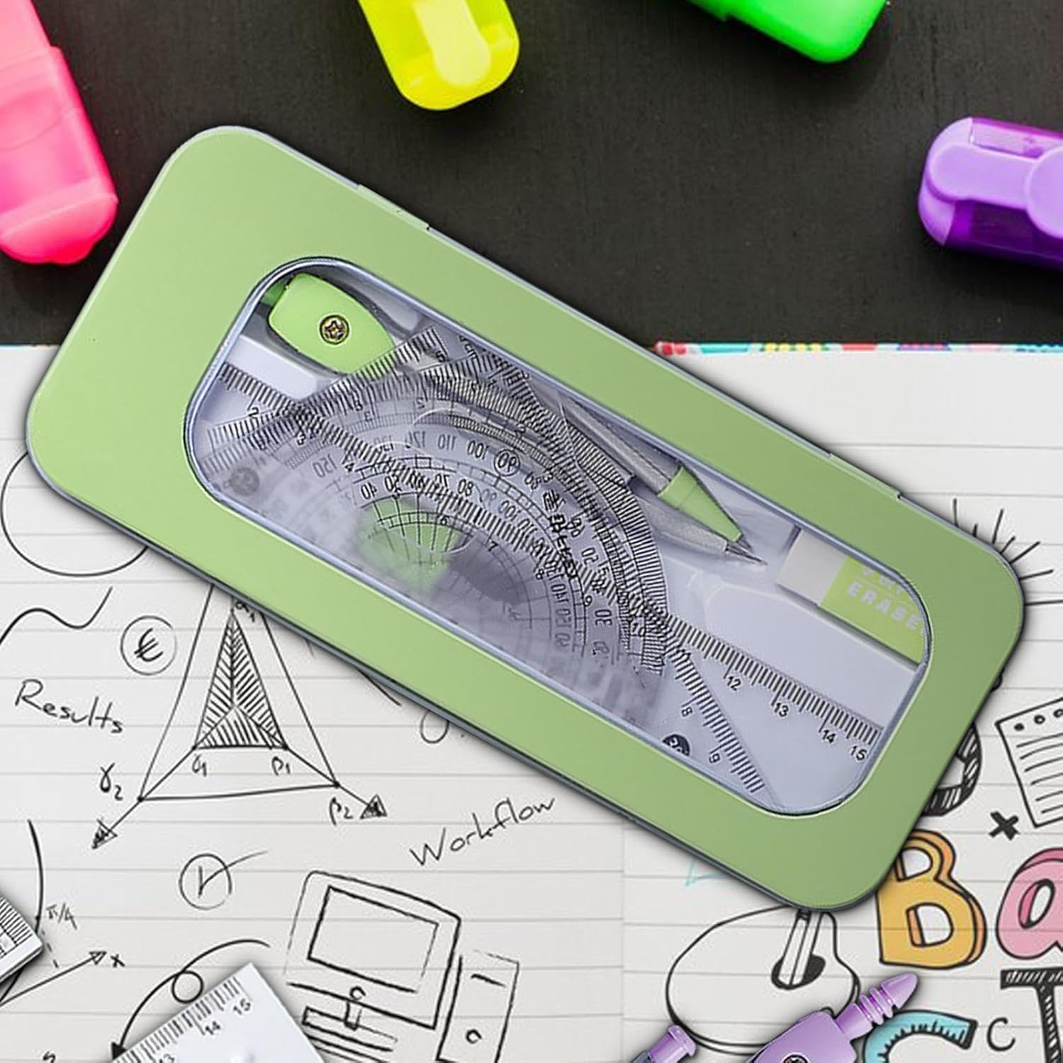 Migliora le abilità di disegno: strumenti di alta qualità, adatti a varie esigenze di disegno, con un design professionale, sono perfetti per gli studenti che mirano a migliorare la loro precisione e creatività Multifunzionale: dotato di una serie di strumenti multifunzionali e altri oggetti indispensabili per il disegno, questo set offre un'esperienza di disegno facile ed efficiente per diversi usi Durata garantita: realizzato con materiali di alta qualità, questo set di geometria vanta una struttura robusta e robusta che garantisce misurazioni affidabili e accurate, rendendolo uno strumento ideale per professionisti e studenti Pratico da trasportare: non perdere di nuovo gli strumenti geometrici. Trasportali e organizzali facilmente con il nostro set geometrico. Perfetto per studenti e professionisti che hanno bisogno di una soluzione di archiviazione compatta e ordinata Necessità di miglioramento: il nostro set di geometria migliora la precisione nei concetti geometrici e nelle misurazioni; una necessità per gli studenti che avanzano nella loro comprensione della matematica