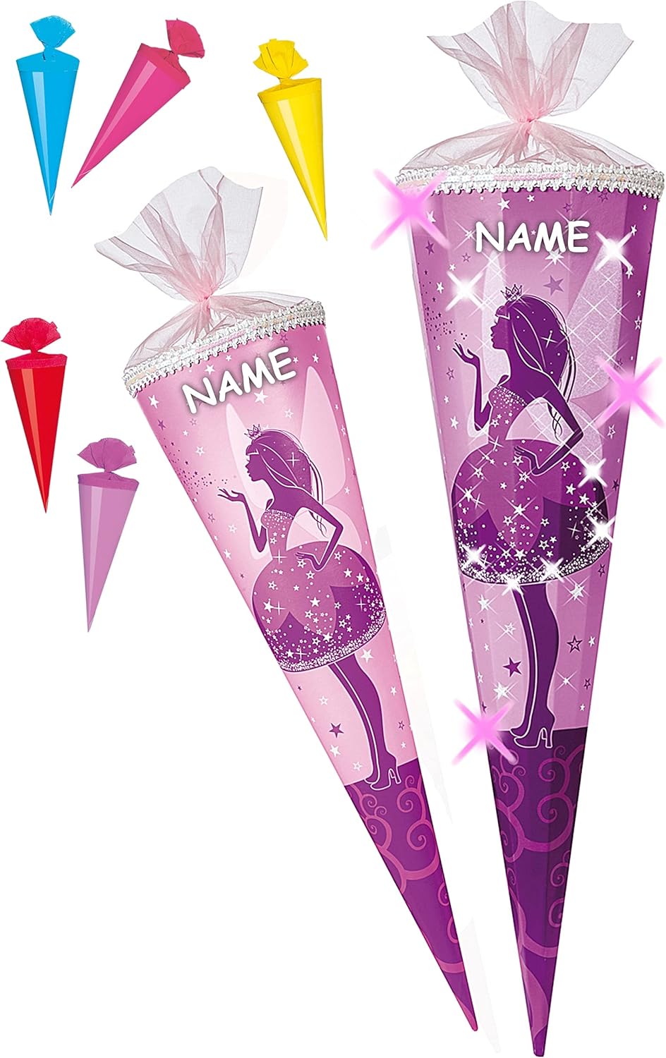 fantastico set _____ con bellissimo effetto mica 3D e stampa glitter!! __ stabile e di alta qualità - cono per la scuola __ 35 cm di lunghezza (misurato solo il cartone) ___ il bordo superiore ha un'elegante finitura in tulle ___ Forma: ROTONDO ___ Motivo: "La regina degli elfi - farfalla delle fate" + 5 coni scolastici extra in un colorato mix di colori da appendere o decorare .... (ciascuno alto 12 cm - solo il cartone misurato) CATTURA L'OCCHIO: ______ il tuo cono scolastico personalizzato ___ incluso: individualmente con il tuo NOME DESIDERATO - il nome verrà abbinato ___ la richiesta del nome verrà effettuata - AUTOMATICAMENTE entro 4 ore - NON inviare un messaggio in anticipo ___ incluso un grande effetto 3D in un colore coordinato _ fiocco - questo renderà il tuo cono scolastico ancora più bello per attirare l'attenzione ______ la consegna dei bellissimi modelli di fiocchi sarà mista (puoi vedere esempi nelle immagini) made in Germany! __ Materiale: cartone rivestito e di alta qualità - SUPER stabile! - idrorepellente! __ fantastici colori di stampa!_____ OPZIONALE è disponibile una punta in plastica abbinata, trasparente e solida da attaccare (questo rende la punta del cono scolastico molto stabile e stabile) ---- (questo articolo deve essere ordinato EXTRA al cono scolastico) e come extra: IL LOOP individuale con il nome DESIDERATO - aggiungi semplicemente l'articolo "nome desiderato" come extra nel carrello, il nome verrà poi applicato al fiocco