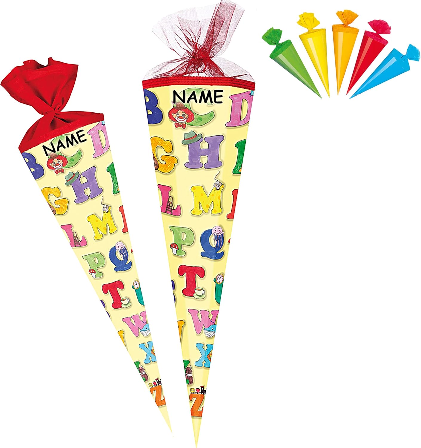 fantastico set _____ con bellissimo effetto 3D - stampa GLITTER e mica!! ____ stabile e di alta qualità - cono scolastico - lungo 22 cm (misurato solo il cartone) ___ il bordo superiore ha una finitura in tulle ___ Forma: ROTONDO ___ Motivo: "Alfabeto - Lettere ABC" + 5 coni scolastici extra in un colorato mix di colori da appendere o decorare _ Fiocco - con il tuo NOME DESIDERATO - il nome sarà fatto su misura! Il nome è attaccato all'arco E al cono della scuola! ___ viene richiesto il nome - AUTOMATICAMENTE entro 4 ore - NON inviare un messaggio in anticipo ___ i modelli di fiocco vengono consegnati misti / cercheremo un bellissimo fiocco effetto 3D abbinato per il tuo cono scolastico (puoi vedere esempi nelle foto) prodotto in Germania! __ Materiale: cartone rivestito e di alta qualità - SUPER stabile! - idrorepellente! __ fantastici colori di stampa!_____ OPZIONALE è disponibile una punta in plastica abbinata, trasparente e solida da applicare (questo rende la punta del cono scolastico molto stabile e salda) ---- (questo articolo deve essere ordinato EXTRA al cono scolastico) da abbinare ai coni scolastici/sacchetti regalo ___ ci sono anche piccoli sacchetti da 10 cm come decorazione da appendere, targhette con il nome, decorazioni da tavola, coni scolastici con steli per composizioni floreali, motivi sparsi, ghirlande ecc. Articoli per feste