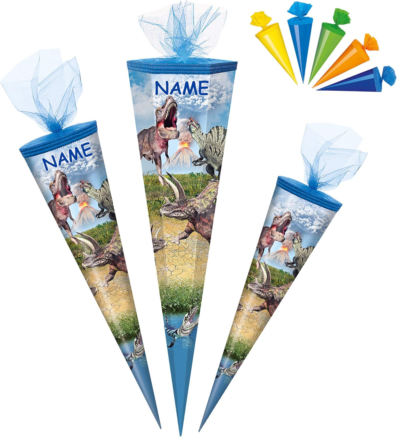 fantastico set _____ con bellissimo effetto 3D - stampa GLITTER e mica!! ____ stabile e di alta qualità - cono scolastico - lungo 50 cm (misurato solo il cartone) ____ il bordo superiore ha una finitura in tulle - forma: ROTONDO ___ motivo: "Dinotopia - Dinosauro - Tyrannosaurus Rex" + 5 coni scolastici extra in un colorato mix di colori da appendere o decorare.... (ciascuno alto 12 cm - misurato solo il cartone) l'OCCHIO: ______ incl. grande effetto 3D in colori coordinati _ Fiocco - questo rende il tuo cono scolastico ancora più accattivante ______ i modelli di fiocco vengono consegnati misti / selezioniamo un bellissimo fiocco con effetto 3D abbinato per il tuo cono scolastico (puoi vedere esempi nelle immagini) Scelta della taglia: 50 / 70 / 85 cm _____ made in Germany! __ Materiale: cartone rivestito e di alta qualità - SUPER stabile! - idrorepellente! __ fantastici colori di stampa!_____ OPZIONALE è disponibile una punta in plastica abbinata, trasparente e solida da applicare (questo rende la punta del cono scolastico molto stabile e stabile) ---- (questo articolo deve essere ordinato EXTRA al cono scolastico) e come extra: IL cono scolastico individuale con il vostro NOME DESIDERATO - aggiungete semplicemente l'articolo "nome desiderato" come extra nel carrello, il nome verrà quindi abbinato. Un'altra idea: un fiocco personalizzato con il vostro NOME DESIDERATO - aggiungete semplicemente l'articolo "Fiocco con il nome desiderato" come extra nel vostro carrello, il nome verrà quindi abbinato al fiocco