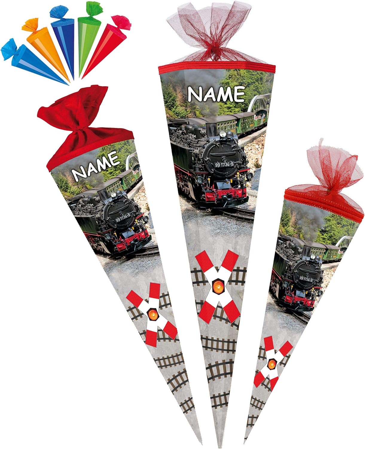 fantastico set _____ con bellissimo effetto 3D - stampa GLITTER e mica!! ____ stabile e di alta qualità - cono per la scuola ___ 35 cm di lunghezza (misurato solo il cartone) ___ forma: ROTONDO ____ il bordo superiore ha un elegante bordo intrecciato e una finitura in tulle ____ motivo: "locomotiva a vapore / locomotiva - ferrovia / treno" + 5 pezzi - coni scolastici extra in un colorato mix di colori da appendere o decorare .... (ciascuno alto 12 cm - misurato solo il cartone) l'OCCHIO: ______ la tua borsa per la scuola individuale ___ incl. colore abbinato grande effetto 3D _ fiocco - con il tuo NOME DESIDERATO - il nome sarà fatto per abbinarsi! ___ viene richiesto il nome - AUTOMATICAMENTE entro 4 ore - NON inviare un messaggio in anticipo ___ i modelli di fiocco vengono consegnati misti / cercheremo un bellissimo fiocco effetto 3D abbinato per il tuo cono scolastico (puoi vedere esempi nelle foto) prodotto in Germania! __ Materiale: cartone rivestito e di alta qualità - SUPER stabile! - idrorepellente! __ fantastici colori di stampa!_____ OPZIONALE è disponibile una punta in plastica abbinata, trasparente e solida da attaccare (questo rende la punta del cono scolastico molto stabile e stabile) ---- (questo articolo deve essere ordinato EXTRA al cono scolastico) e come extra: IL cono scolastico individuale con il vostro NOME DESIDERATO - aggiungete semplicemente l'articolo "nome desiderato" come extra nel carrello, il nome verrà poi applicato al cono scolastico