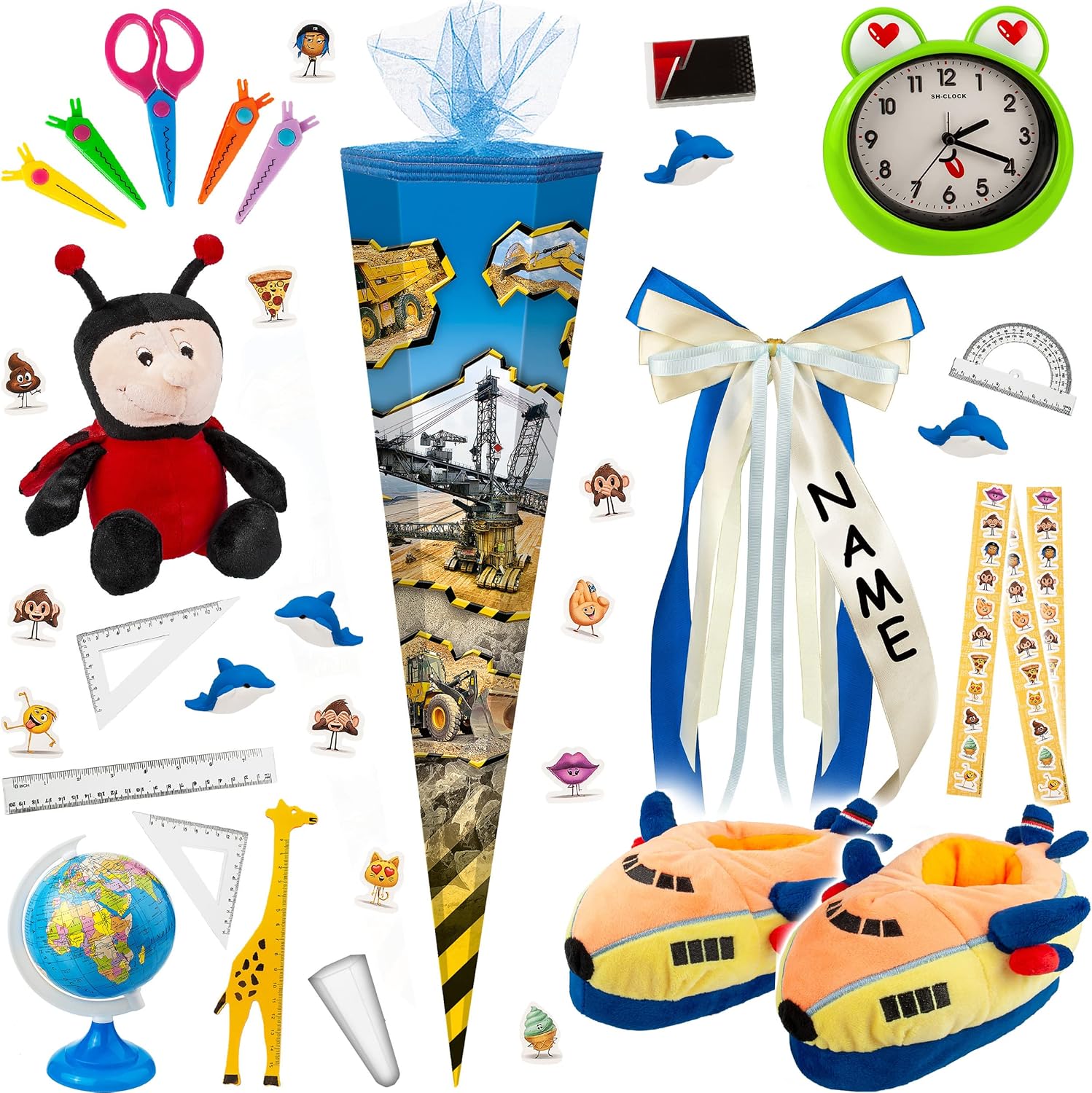 fantastico set _____ con bellissimo effetto 3D - stampa GLITTER e mica!! ____ stabile e di alta qualità - cono scolastico - lungo 85 cm (misurato solo il cartone) - con PUNTA IN LEGNO FISSA e robusta __ il bordo superiore ha una finitura in tulle - forma: 6 - QUADRATO ___ motivo: "Tyransosaurus Rex - Dinosauro" + 5 coni scolastici extra in un colorato mix di colori da appendere o decorare.... (ognuno alto 12 cm - misurato solo il cartone) l'OCCHIO: ______ la tua scuola individuale cono ___ incluso grande effetto 3D in colore coordinato _ fiocco - con il tuo NOME DESIDERATO - il nome sarà fatto per abbinarsi! ___ la richiesta del nome viene effettuata - AUTOMATICAMENTE entro 4 ore - per favore NON inviare un messaggio in anticipo ___ i modelli di fiocco vengono consegnati misti / selezioniamo un bellissimo fiocco con effetto 3D abbinato per il tuo cono scolastico (puoi vedere esempi nelle immagini) ______ e come extra: IL cono scolastico individuale con il tuo NOME DESIDERATO - inserisci semplicemente l'articolo "nome desiderato" nel carrello come extra, il nome verrà poi applicato al cono scolastico Selezione della dimensione: 22 / 35 / 50 / 70 / 85 / 100 cm __ prodotto in Germania! _ 70, 85 e 100 hanno una punta in legno stabile e fissata in modo permanente (originale Roth) __ Materiale: cartone rivestito e di alta qualità - SUPER stabile! - idrorepellente! __ fantastici colori di stampa!___ OPZIONALE è disponibile una punta in plastica abbinata, trasparente e solida da applicare (questo rende la punta del cono scolastico molto stabile e stabile) -- (questo articolo deve essere ordinato EXTRA al cono scolastico) da abbinare ai coni scolastici/sacchetti regalo ___ ci sono anche piccoli sacchetti da 10 cm come decorazione da appendere, targhette per il nome, decorazioni da tavolo, coni scolastici con steli per composizioni floreali, motivi sparsi, ghirlande e articoli per feste