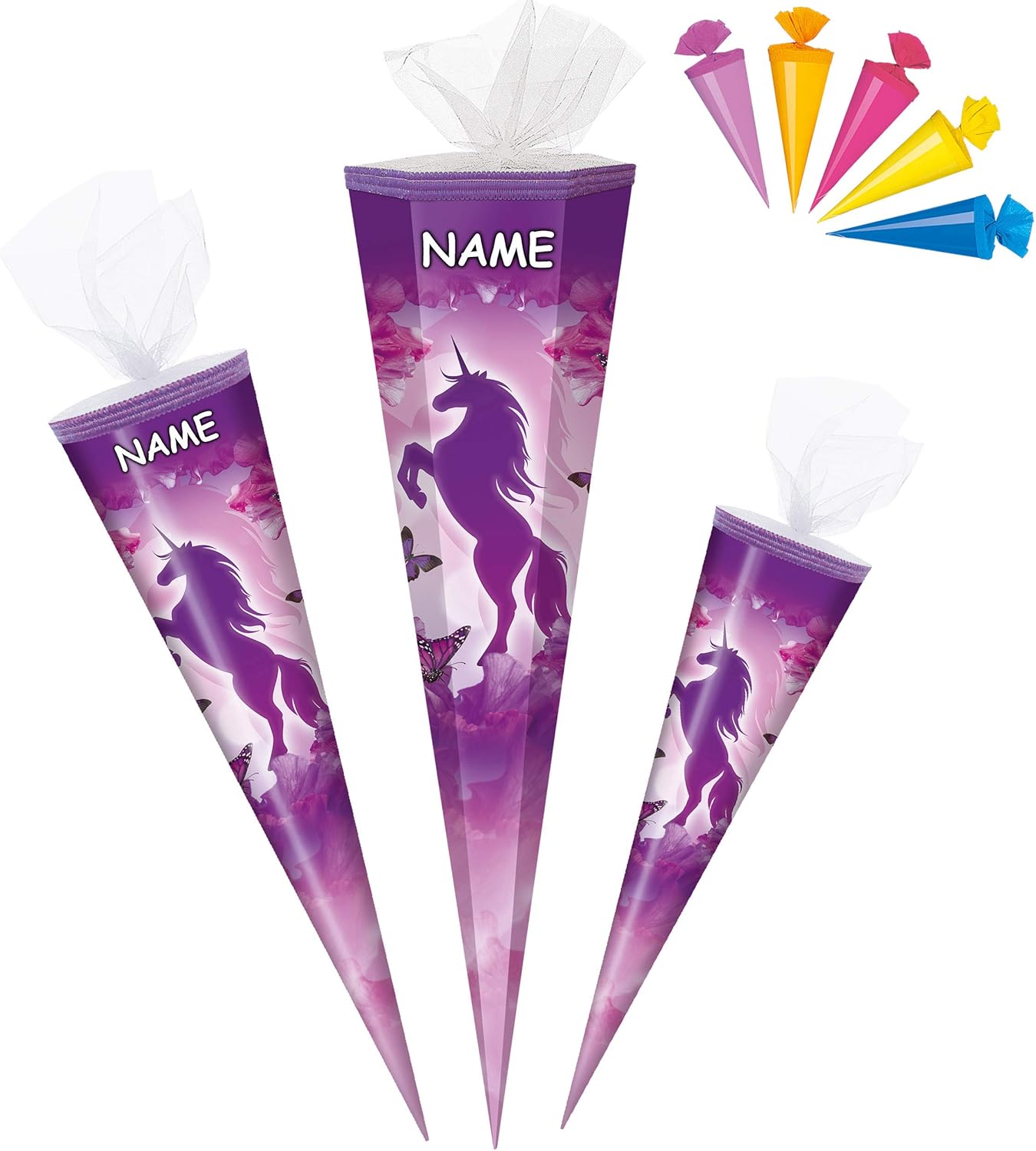fantastico set _____ con bellissimo effetto 3D - stampa GLITTER e mica!! ____ stabile e di alta qualità - cono scolastico ___ 50 cm di lunghezza (misurato solo il cartone) ___ forma: ROTONDO ____ il bordo superiore ha un elegante bordo intrecciato e una finitura in tulle ____ motivo: "unicorno e farfalla - viola e viola" + 5 pezzi - coni scolastici extra in un colorato mix di colori da appendere o decorare.... (ciascuno alto 12 cm - misurato solo il cartone) l'OCCHIO: ______ il tuo cono scolastico personalizzato ___ incl. grande effetto 3D _ fiocco in colore coordinato - con il tuo NOME DESIDERATO + nome extra sul cono della scuola! Il nome è attaccato all'arco E al cono della scuola! ___ viene richiesto il nome - AUTOMATICAMENTE entro 4 ore - NON inviare un messaggio in anticipo ___ i modelli di fiocco vengono consegnati misti / cercheremo un bellissimo fiocco effetto 3D abbinato per il tuo cono scolastico (puoi vedere esempi nelle foto) prodotto in Germania! __ Materiale: cartone rivestito e di alta qualità - SUPER stabile! - idrorepellente! __ fantastici colori di stampa!_____ OPZIONALE è disponibile una punta in plastica abbinata, trasparente e solida da applicare (questo rende la punta del cono scolastico molto stabile e stabile) ---- (questo articolo deve essere ordinato EXTRA al cono scolastico) da abbinare ai coni scolastici/sacchetti regalo ___ ci sono altri piccoli sacchetti da 10 cm come decorazione da appendere, targhette con il nome, decorazioni da tavolo, coni scolastici con steli per composizioni floreali, motivi sparsi, ghirlande e articoli per feste