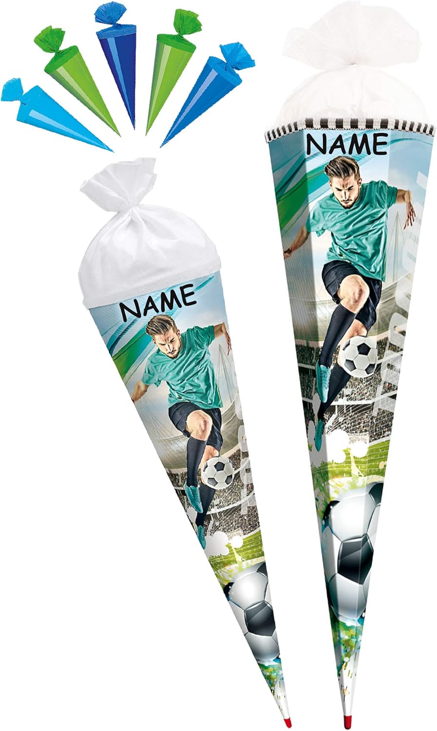 fantastico set _____ con bellissimo effetto 3D - stampa GLITTER e mica!! ____ stabile e di alta qualità - cono scolastico - lungo 70 cm (misurato solo il cartone) - con PUNTA IN LEGNO FISSA e stabile __ il bordo superiore ha una finitura in feltro - forma: ROTONDO ___ motivo: "calcio" + 5 coni scolastici extra in un colorato mix di colori da appendere o decorare.... (ciascuno alto 12 cm - misurato solo il cartone) l'ATTENZIONE: ______ il tuo cono scolastico personalizzato ___ compreso il colore coordinato grande Effetto 3D _ fiocco - con il tuo nome DESIDERATO - il nome verrà fatto corrispondere! ___ la richiesta del nome viene effettuata - AUTOMATICAMENTE entro 4 ore - per favore NON inviare un messaggio in anticipo ___ i modelli di fiocco vengono consegnati misti / selezioniamo un bellissimo fiocco con effetto 3D abbinato per il tuo cono scolastico (puoi vedere esempi nelle immagini) ______ e come extra: IL cono scolastico individuale con il tuo NOME DESIDERATO - inserisci semplicemente l'articolo "nome desiderato" nel carrello come extra, il nome verrà poi applicato al cono scolastico Selezione della dimensione: 22 / 35 / 50 / 70 / 85 cm _____ prodotto in Germania! __ Gli anni '70 e '85 hanno una punta in legno stabile e fissata in modo permanente (originale Roth) __ Materiale: cartone rivestito e di alta qualità - SUPER stabile! - idrorepellente! __ fantastici colori di stampa!_____ OPZIONALE è disponibile una punta in plastica abbinata, trasparente e solida da applicare (questo rende la punta del cono scolastico molto stabile e salda) ---- (questo articolo deve essere ordinato EXTRA al cono scolastico) da abbinare ai coni scolastici/sacchetti regalo ___ ci sono anche piccoli sacchetti da 10 cm come decorazione da appendere, targhette con il nome, decorazioni da tavola, coni scolastici con steli per composizioni floreali, motivi sparsi, ghirlande ecc. Articoli per feste