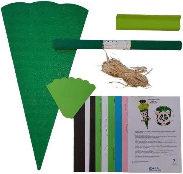 Cono scolastico Panda - dimensione del pezzo grezzo: 68 cm, lunghezza totale ca. 100cm. Il nostro set artigianale contiene tutti i materiali necessari per ricreare il cono scolastico o il cono di zucchero come mostrato. I motivi sono già prestampati e devono solo essere ritagliati. Il primo giorno di scuola è probabilmente uno degli eventi più importanti per un bambino. Realizza un cono scolastico molto personale con tuo figlio utilizzando il nostro pacchetto artigianale e rendi il primo giorno di scuola indimenticabile!