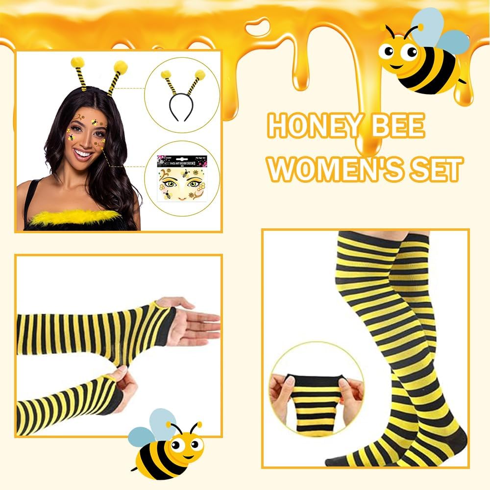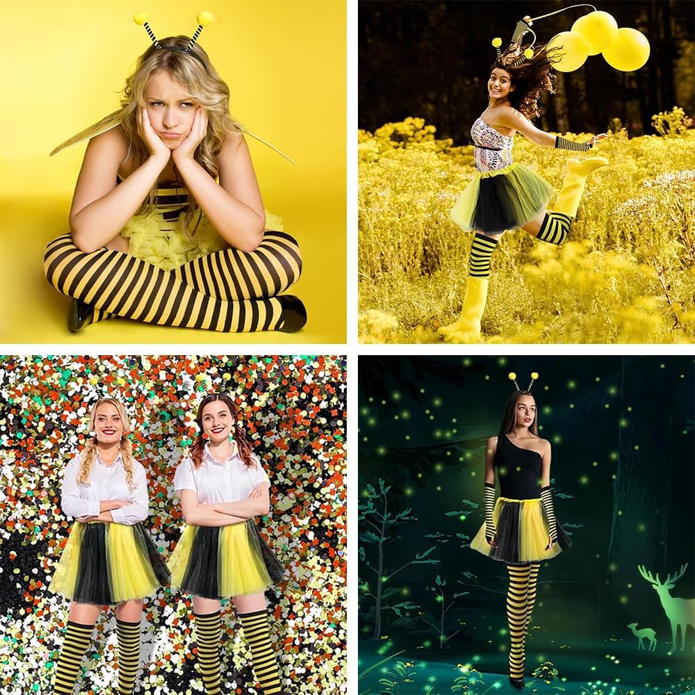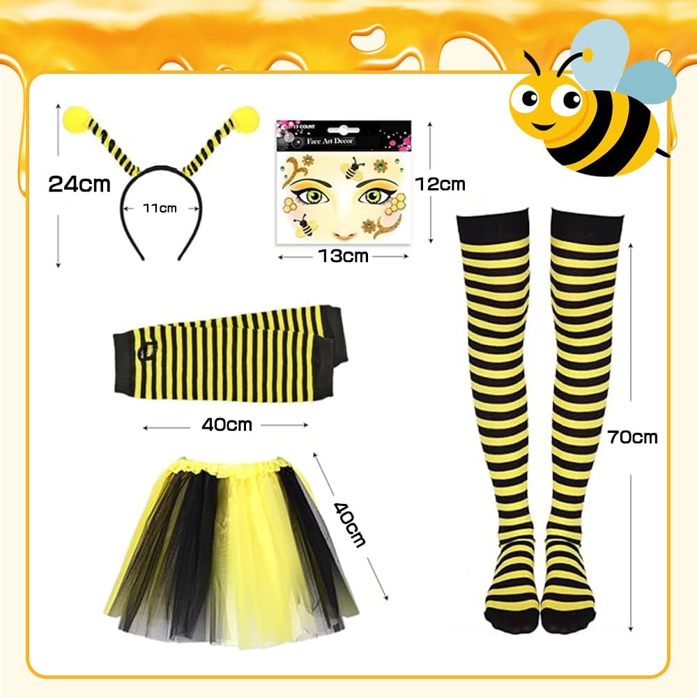 Set costume da coccinella, costume da ape, per adulto, accessorio costume da ape, fascia da coccinella, occhiali da sole, guanti senza dita, calzini sopra il ginocchio,