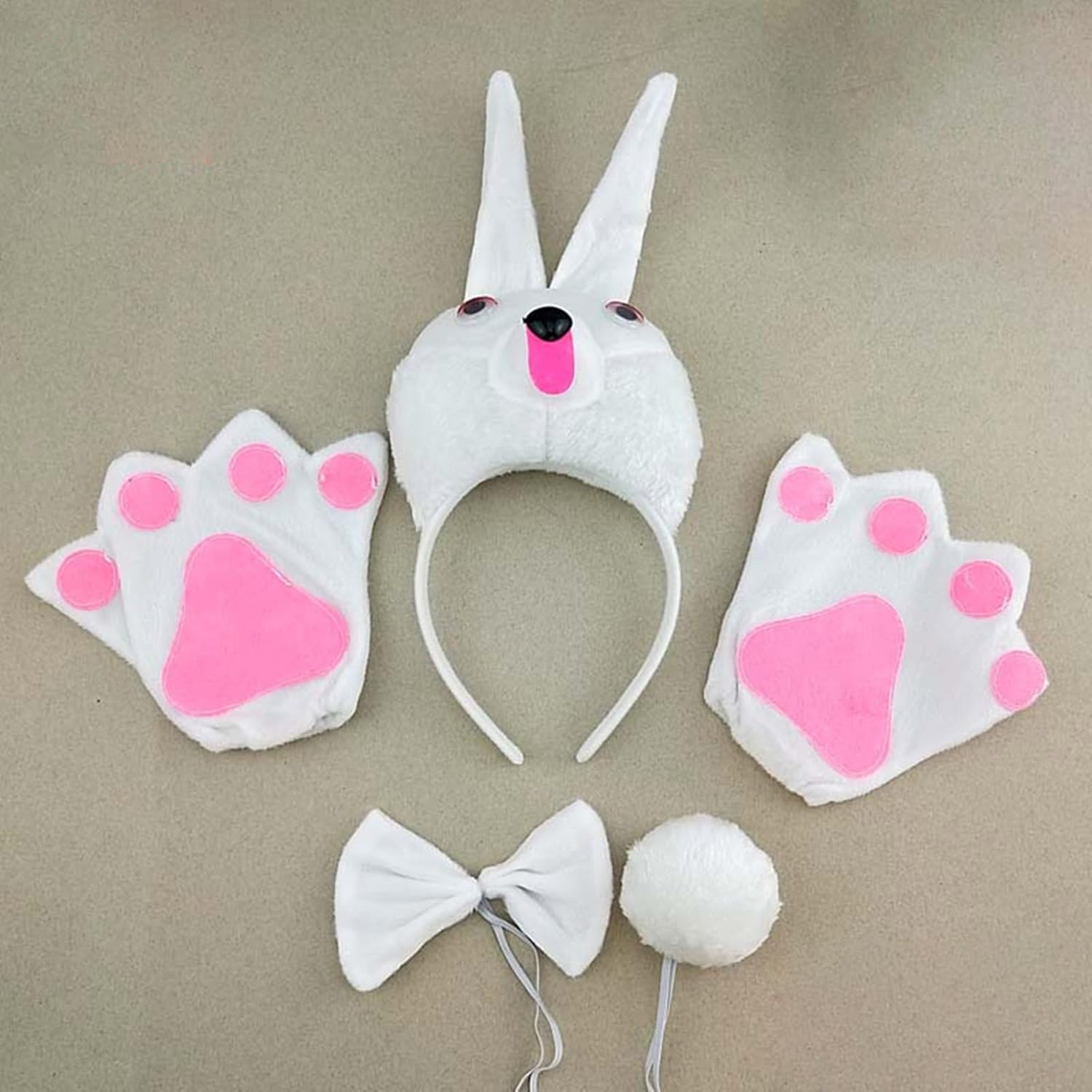 Set costume da coniglietto orecchie da coniglietto fascia papillon coda zampe guanti tutù bambini Halloween Cosplay Party puntelli Halloween Cosplay