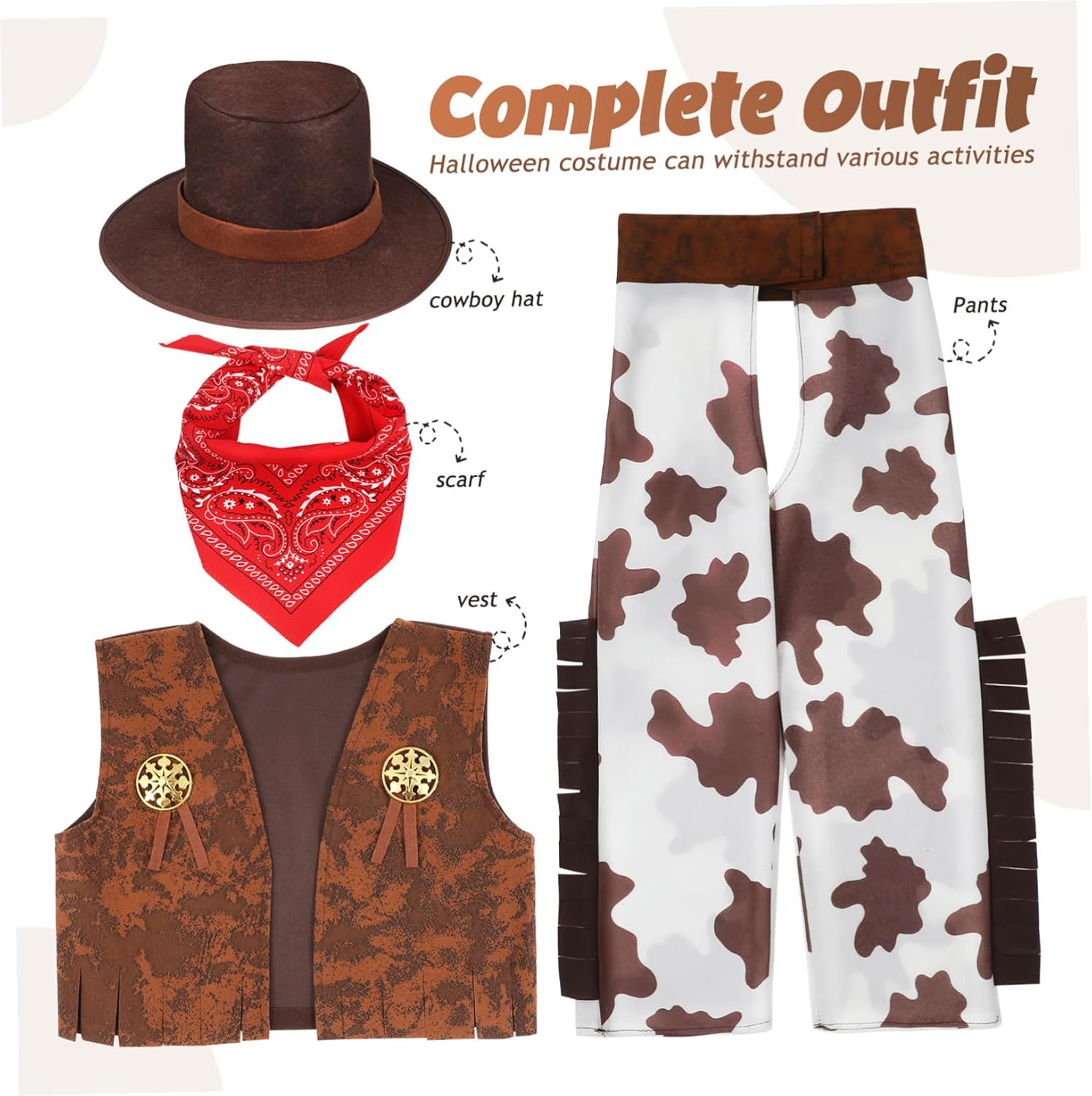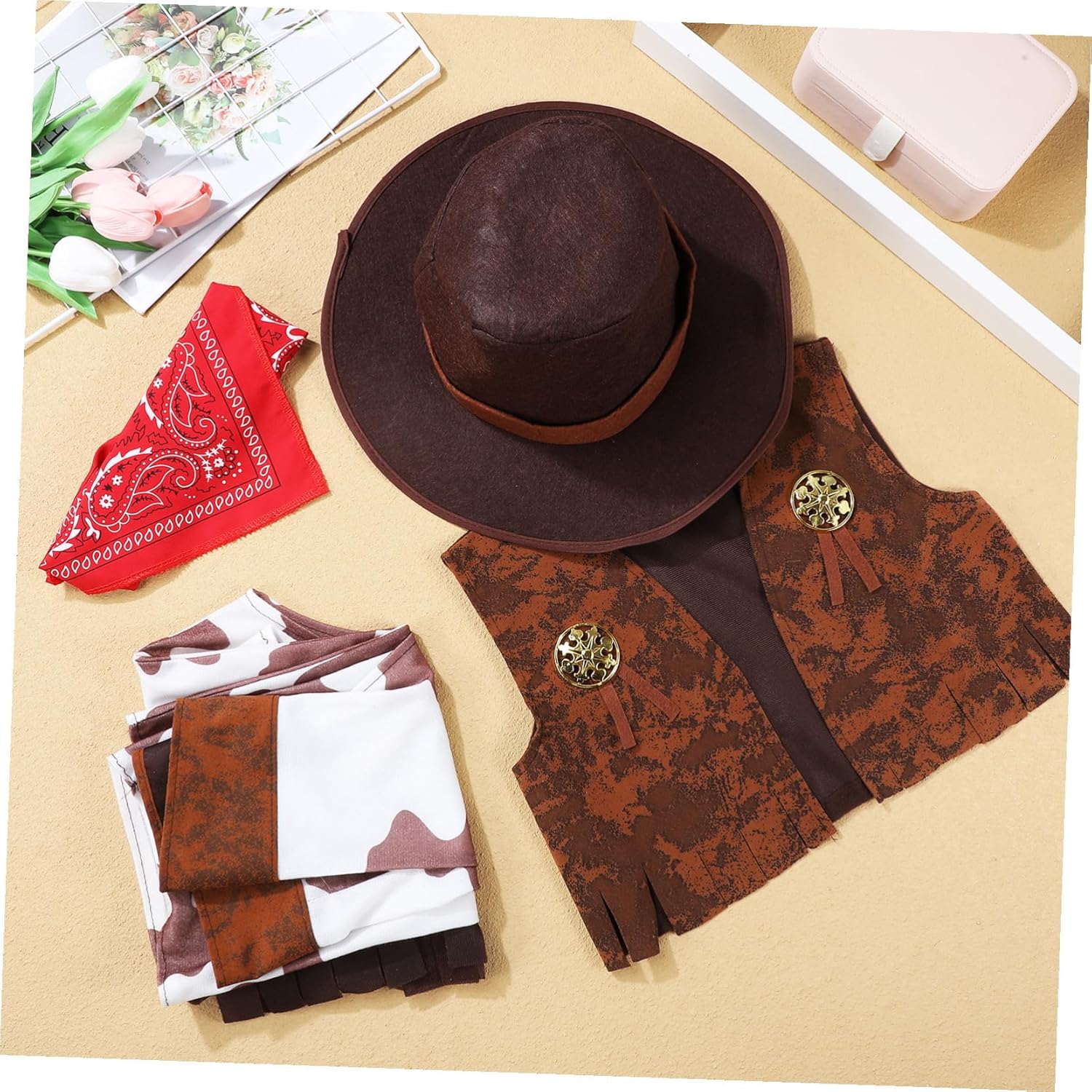 ABBIGLIAMENTO COMPLETO: Il set include un cappello da cowboy, un gilet, pantaloni e altro, fornendo un costume completo adatto a diverse occasioni, costume cosplay per bambini piccoli e vestiti per neonati per ragazzi. Tessuto confortevole: questo vestito da cowboy realizzato con materiali delicati sulla pelle è morbido e confortevole e offre un'ottima esperienza da indossare. vestito da cowgirl per bambini, vestito da gentiluomo per bambini piccoli Materiali sicuri: questo vestito è realizzato con materiali in tessuto sicuri e offre comfort al tuo bambino mentre si gode le sue attività di travestimento. costumi per ragazzi, costume da cowboy per ragazzi Design alla moda: questo set elegante presenta un design unico che farà risaltare il tuo bambino con un look distintivo e alla moda, costume da cowboy per bambini, vestito da gentiluomo per bambini Dettagli accattivanti: il costume da cowboy per bambini ha dettagli raffinati e accessori realistici che lo rendono visivamente accattivante, costume da ranch per bambini, vestito da cowboy per ragazzi