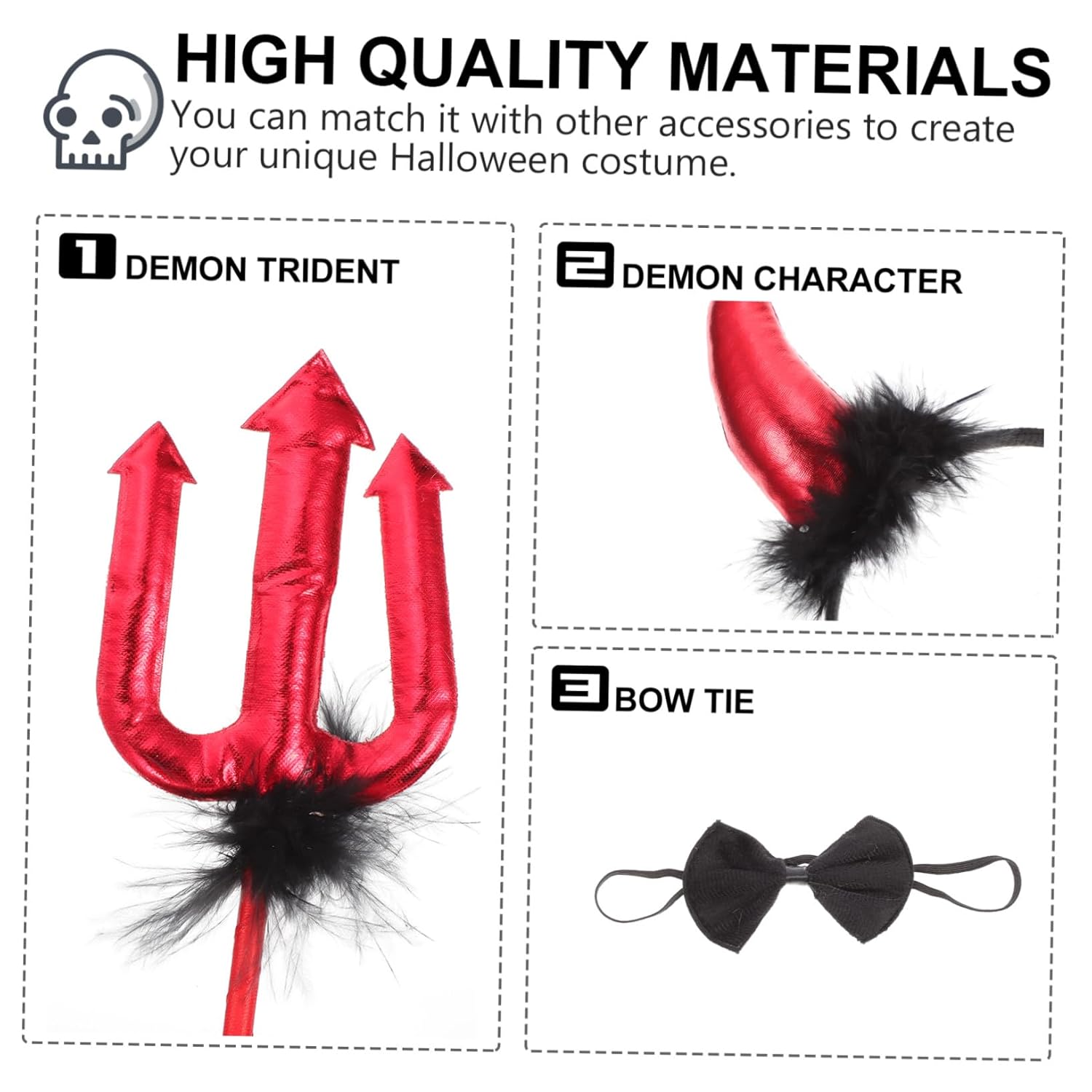 Oggetti di scena per cosplay di Halloween: con la fascia creativa in corno e il design della forchetta del diavolo, attirerai davvero l'attenzione alle feste. Ottimo per feste di cosplay, accessorio da diavolo di Halloween Accessorio di Halloween: la modellazione esagerata lo rende un grande successo per diverse occasioni, persone di età diverse lo adoreranno, costume da diavolo per feste Accessorio: carino per la maggior parte delle persone di età diverse, come donne, uomini, adolescenti per il compleanno, Halloween, Natale e altri festival, costume da diavolo Accessorio per corno di Halloween: è una buona decorazione per creare un'atmosfera divertente e felice per la tua festa, Tridente del diavolo di Halloween Oggetti di scena cosplay coda del diavolo di Halloween: realizzati in tessuto di alta qualità, affidabile e durevole può essere utilizzato per molto tempo. decorazione del farfallino di halloween