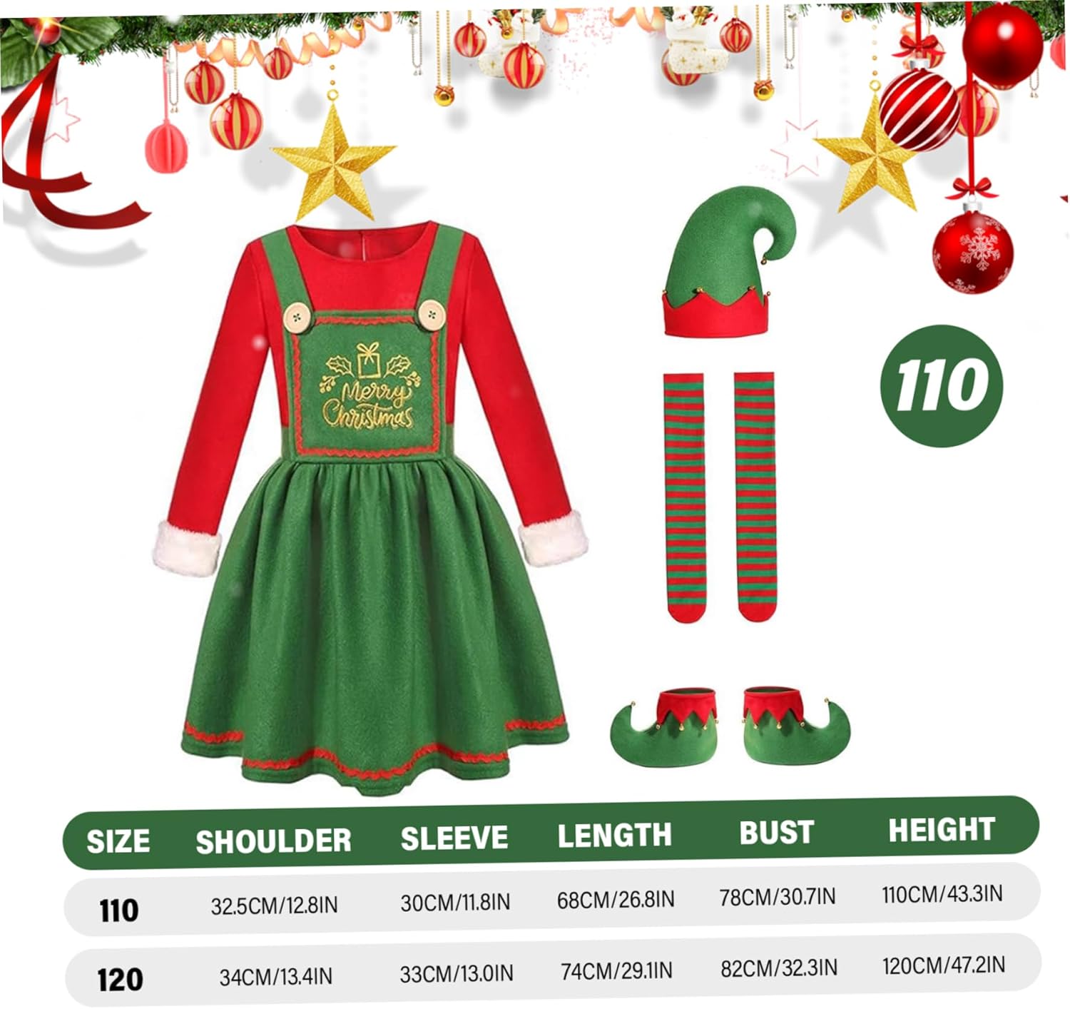 Perfetto per feste e foto: ideale per spettacoli di Natale, feste a tema e foto delle vacanze in famiglia, questo vestito da elfo aggiunge fascino e allegria festosa, creando ricordi stagionali duraturi. Design festivo: con vivaci colori natalizi e tradizionali dettagli da elfo, questo costume crea un'atmosfera gioiosa e magica per le vacanze, rendendo il tuo bambino la stella di ogni celebrazione natalizia. Tessuto confortevole e morbido: realizzato con materiali traspiranti e leggeri, il costume è comodo da indossare per ore per i bambini, consentendo loro di godersi il divertimento in vacanza senza irritazioni o disagi. Completo da elfo: questo set include un vestito, un cappello, calze e scarpe da elfo, offrendo alle ragazze una trasformazione festosa completa per feste di Natale, eventi scolastici o riunioni di famiglia. Grandi regali per i bambini: un regalo di Natale divertente e creativo per i bambini che amano i giochi di travestimento, dando loro la possibilità di interpretare il ruolo dell'aiutante di Babbo Natale e allo stesso tempo aumentare il loro spirito natalizio.