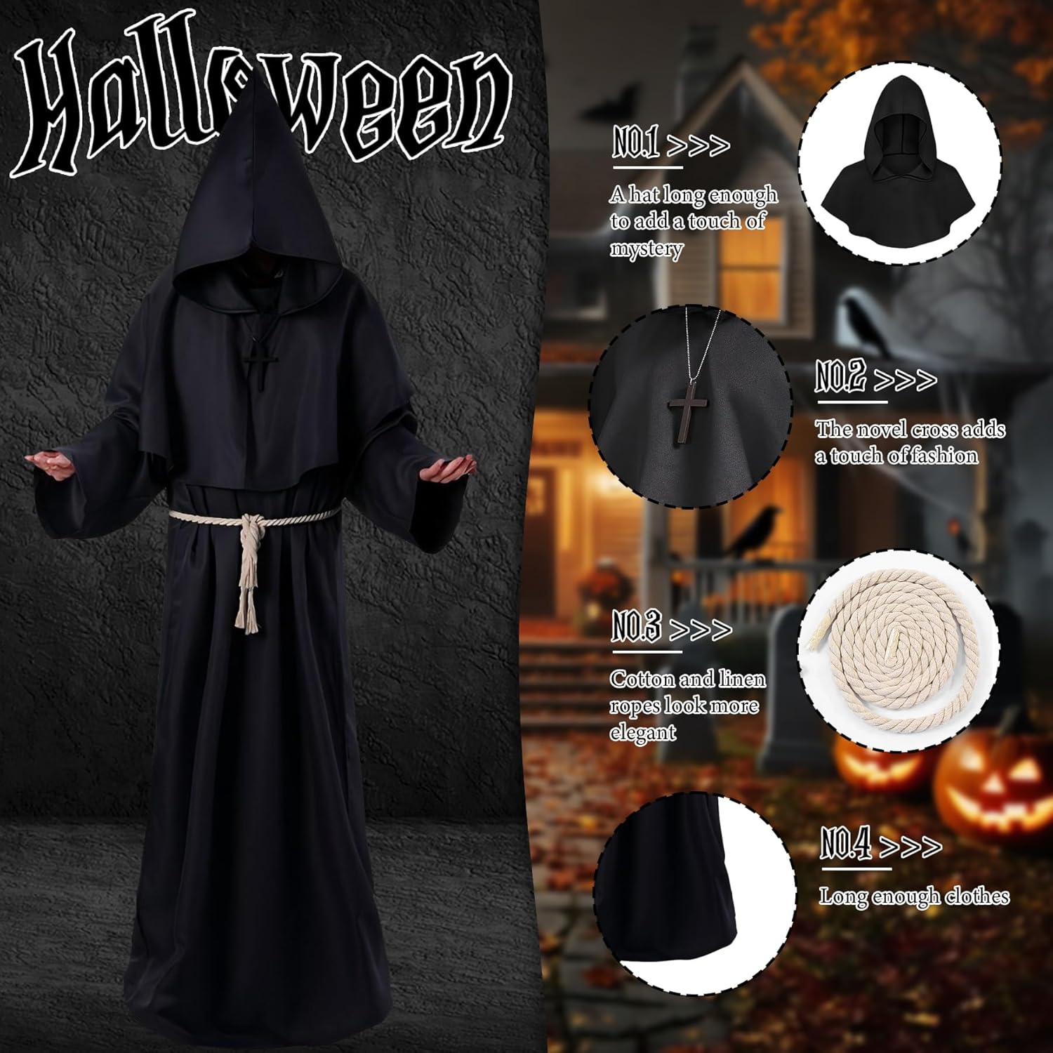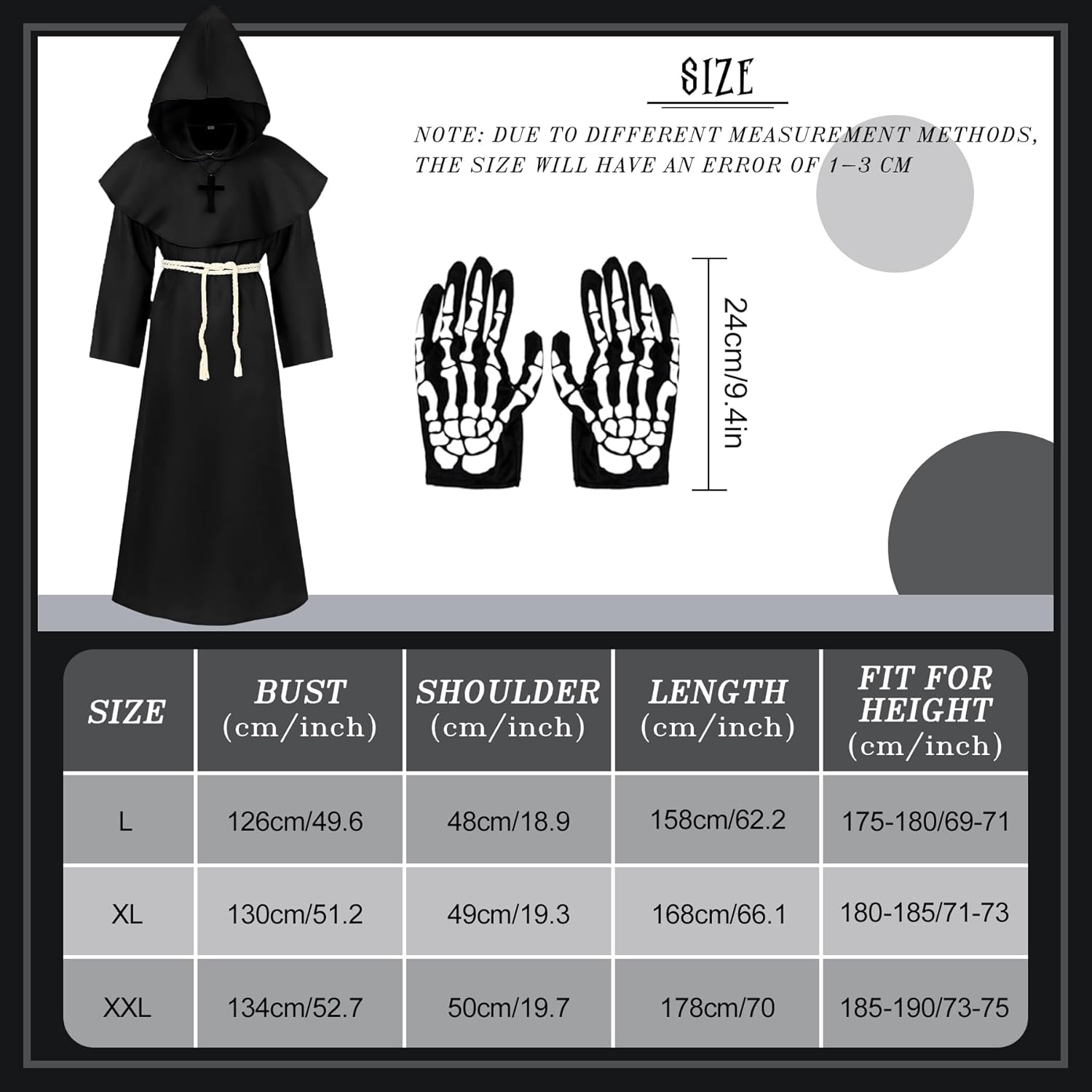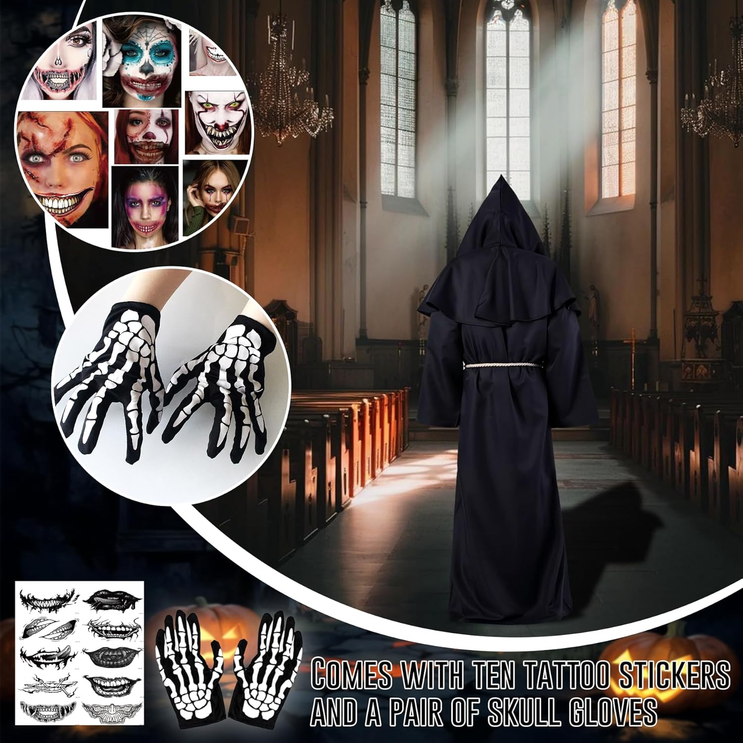 Ich habe mir dieses HUTRADE Halloween Mönch Priester Robe Kostüm Set in Rot (XXL) vor einer Woche für unsere Mittelalter-Fest-Party geholt, weil ich einen dramatischen, historischen Look wollte, der nicht zu kitschig ist – und es war der absolute Highlight! Die Robe ist ein Meisterwerk: Langer, fließender Stoff in tiefem Rot, mit tiefer Kapuze, die das Gesicht mysteriös umrahmt, und dem ikonischen Taillenseil, das die Taille betont und den Mönchsvibe perfekt setzt. Dazu die Kreuz-Kette, die schwer und authentisch hängt, und die Totenkopf-Handschuhen, die die Hände gruselig und detailliert machen – alles fühlt sich hochwertig an, atmungsaktiv und bequem, ohne zu kratzen oder einzuengen. Beim Anprobieren: In XXL passt es locker (für 1,90 m und breite Schultern, elastisch und anpassbar), und die Renaissance-Hooded-Design lässt mich wie aus einem Fantasy-Film wirken – der Stoff raschelt bei jeder Bewegung, und die Accessoires (Kette und Handschuhe) sind robust, ohne dass sie scheppern oder brechen. Auf der Party war ich der Star: Als "roter Priester-Zauberer" hab ich Zaubersprüche gemurmelt und Fotos posiert – alle haben gefragt, woher das kostümische Meisterwerk kommt! Perfekt für Halloween, Cosplay oder Mittelalter-Märkte, und es hält Tanzen und Feiern stundenlang aus. Qualität top, verarbeitet mit Liebe zum Detail und waschbar, der Preis ein echtes Kostüm-Schnäppchen für so viel Atmosphäre! Keine Macken, nur pure Immersion. Wenn du ein hooded Mönchskostüm suchst, das rot, mittelalterlich und gruselig ist – das ist der Zauber! Ich würde es sofort wieder kaufen und empfehle es jedem Rollenspiel-Fan. Danke, HUTRADE, für den priesterlichen Volltreffer! ????️????