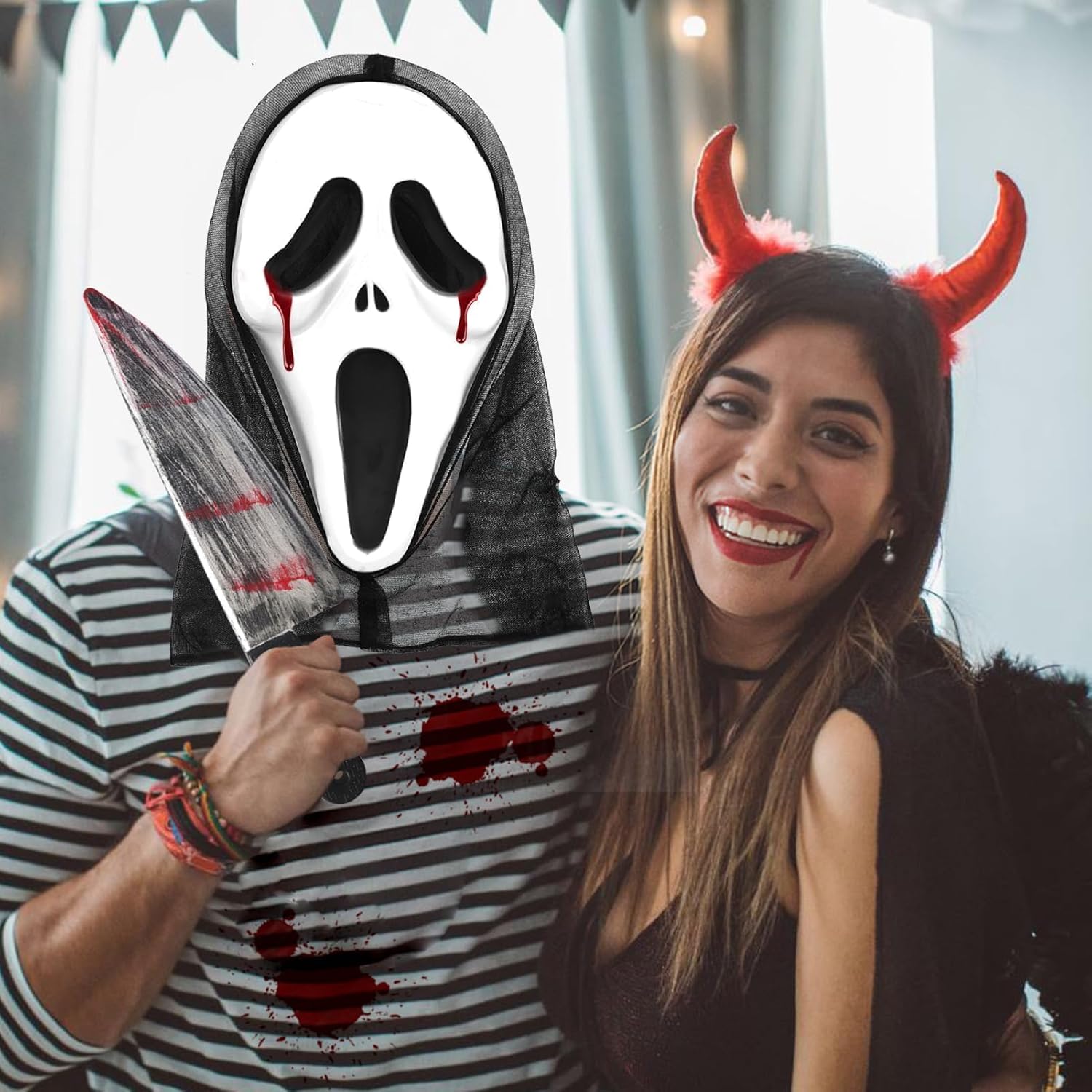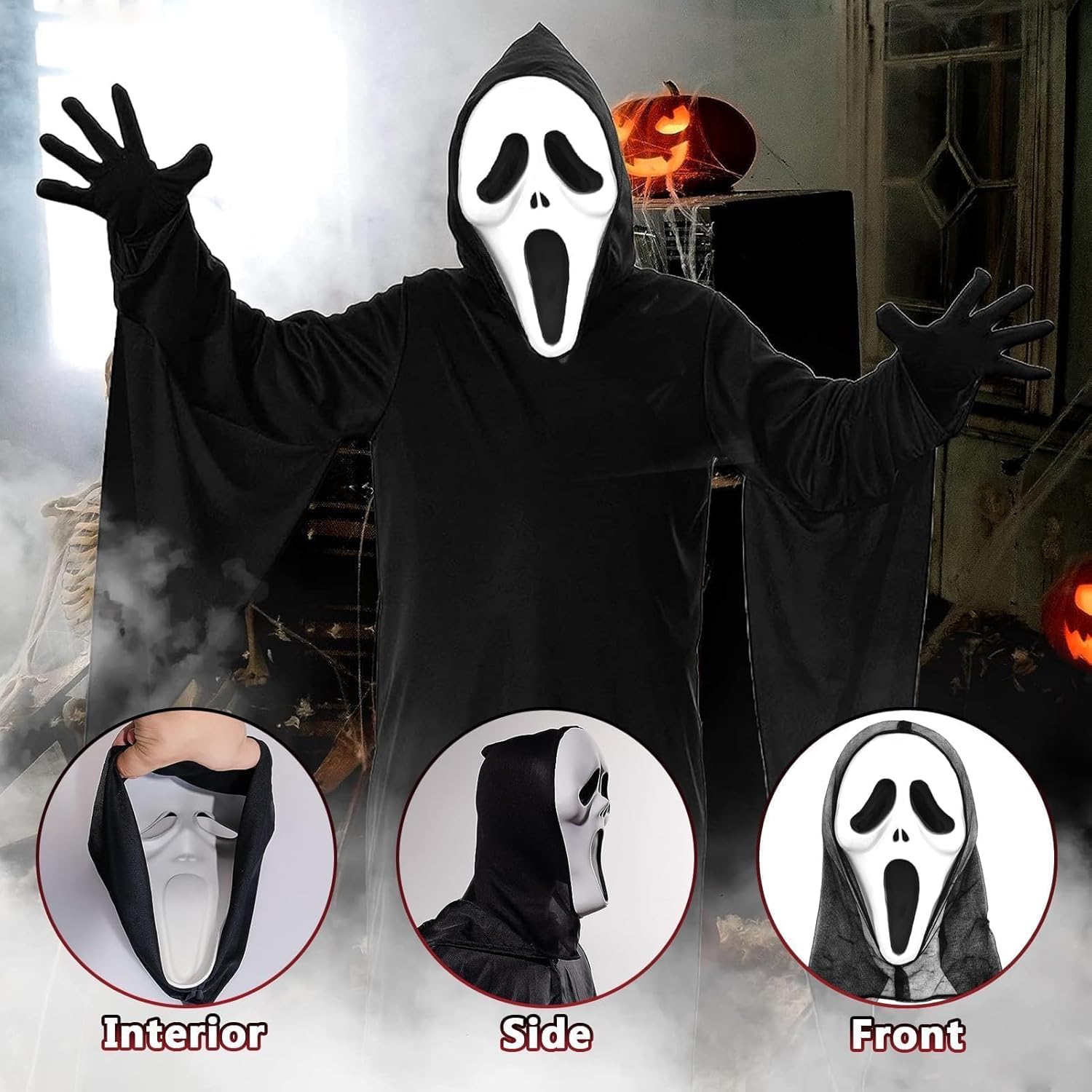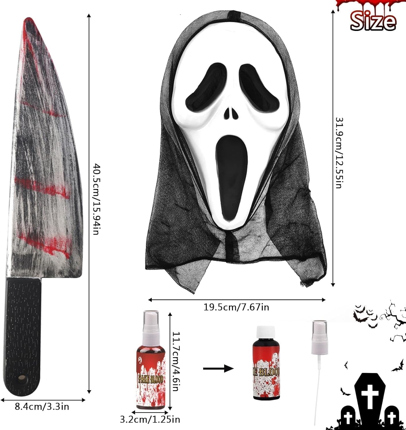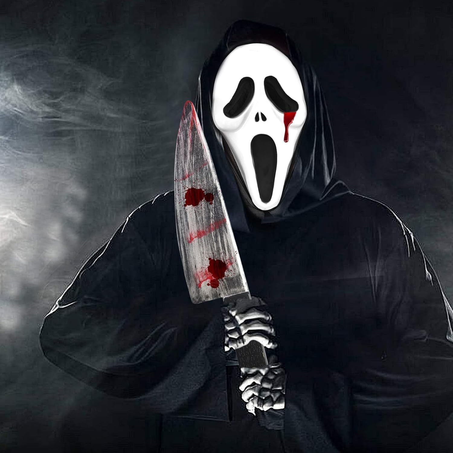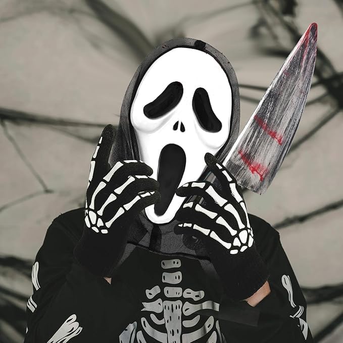 Descrizione prodotto Set costumi Halloween Ghostface, Maschera Ghostface, Maschera da urlo, Coltello insanguinato, Sangue finto, Maschera di Halloween per adulti, Maschera da film horror, Sangue di vampiro, Coltello da urlo, per Carnevale, Halloween Avviso di sicurezza NO