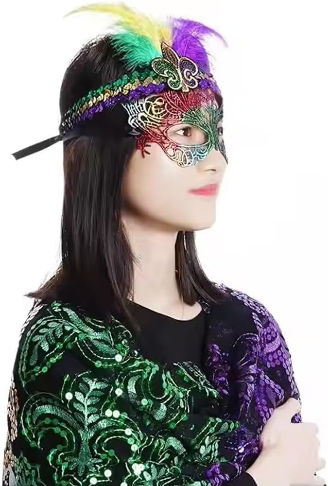 Adatto per balli studenteschi, feste in maschera, martedì grasso, feste di Halloween, compleanni, feste di carnevale in maschera e molte altre feste. Taglia unica, facile indossare, non è necessario preoccuparsi della taglia, si consiglia di lavare a mano questo scialle con frange del Mardi Gras. Il set Mardi Gras adotta elementi in maschera che cattureranno l'attenzione delle persone durante festa e ti faranno distinguere facilmente dalla massa. Il pacchetto include: 1 pezzo di sciarpa scialle Mardi Gras, 1 pezzo di fascia Marti Gras, 1 pezzo di maschera. Sciarpa Mardi Gras è progettata con paillettes di colore viola, oro e verde che si scontrano reciprocamente e sembrano attraenti.