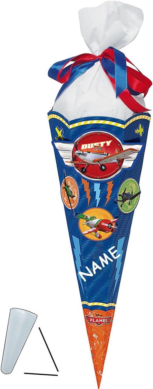 Crea il tuo cono scolastico! ___ Dimensioni del cartone circa 67 cm - ma è rifinito come un normale cono scolastico con una lunghezza di 85 cm - Motivo: aerei, aeroplani Contenuto del set: pacchetto completo! Corpo base in cartone ondulato 3D, molti pezzi singoli con efficaci applicazioni 3D in cartone robusto, stencil, carta crespa, istruzioni per il bricolage, tutto ciò di cui hai bisogno è colla artigianale o una pistola per colla a caldo - OPZIONALE è disponibile una punta in plastica abbinata, trasparente e solida per il fissaggio (questo rende la punta del cono scolastico molto stabile e ferma) ---- (questo articolo deve essere ordinato EXTRA al cono scolastico) IL cono scolastico individuale con il NOME DESIDERATO - aggiungi semplicemente l'articolo "Nome desiderato" nel carrello come extra, il nome verrà quindi adattato