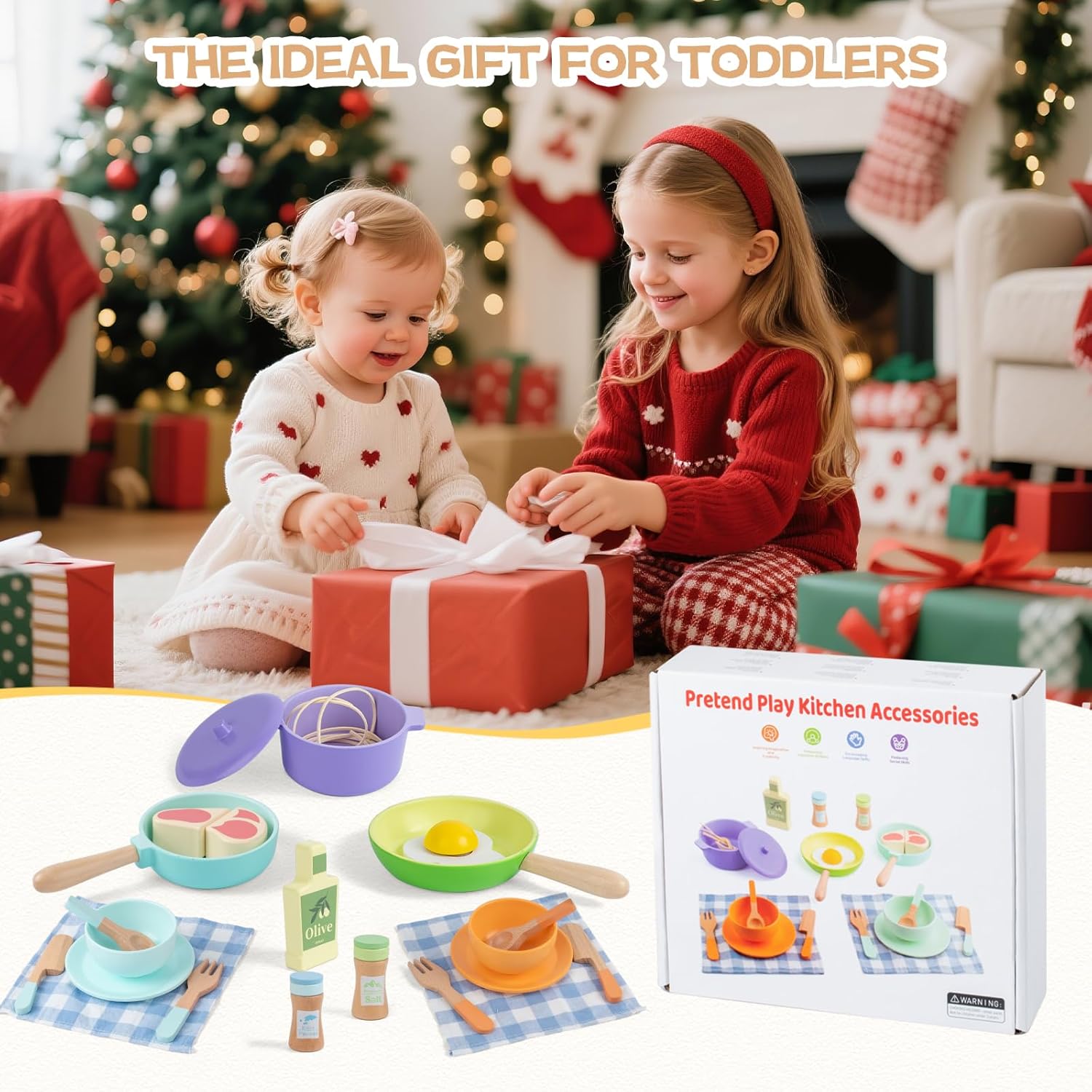 21 pezzi di accessori cucina bambini legno per bambini: Il set cucina montessori comprende pentole, padelle, ciotole, piatti, pepiere, saliere, oliere, padelle, forchette, coltelli, cucchiai, tovagliette e cibo. Questo set cucina bambini è perfetto per più bambini che possono giocare insieme e godere di un'esperienza di cucina realistica e di divertimento in cucina. Materiali in legno sicuri: Gli accessori da cucina giocattolo sono realizzati in legno naturale, robusto e durevole. La superficie è realizzata con vernice atossica a base d'acqua, sicura ed ecologica. I bordi delle posate sono lisci e privi di bave per proteggere le mani del bambino e garantire un gioco sicuro. Giocattoli di ruolo: Attraverso il gioco di ruolo, i bambini possono sviluppare abilità sociali e migliorare le capacità cognitive. Gli accessori da cucina giocattolo stimolano la loro immaginazione e creatività mentre giocano, cucinano e tagliano il cibo. Questo set di posate in legno può essere utilizzato al tavolo da pranzo, in salotto, nei picnic al parco e altro ancora. Set di pentole per bambini: I bambini possono imparare le buone maniere a tavola assumendo il ruolo di uno chef o di un cliente. Questo set di piatti per bambini in legno migliora la motricità fine, la coordinazione occhio-mano e le abilità sociali del bambino mentre cucina, taglia e serve. Regalo ideale: Perfetto per giocare con la famiglia e gli amici, questo set da cucina in legno promuove il legame e l'amicizia. Ideale come regalo di compleanno, Natale e Ringraziamento per bambina. Pulire con un panno asciutto ed evitare di immergerlo in acqua.
