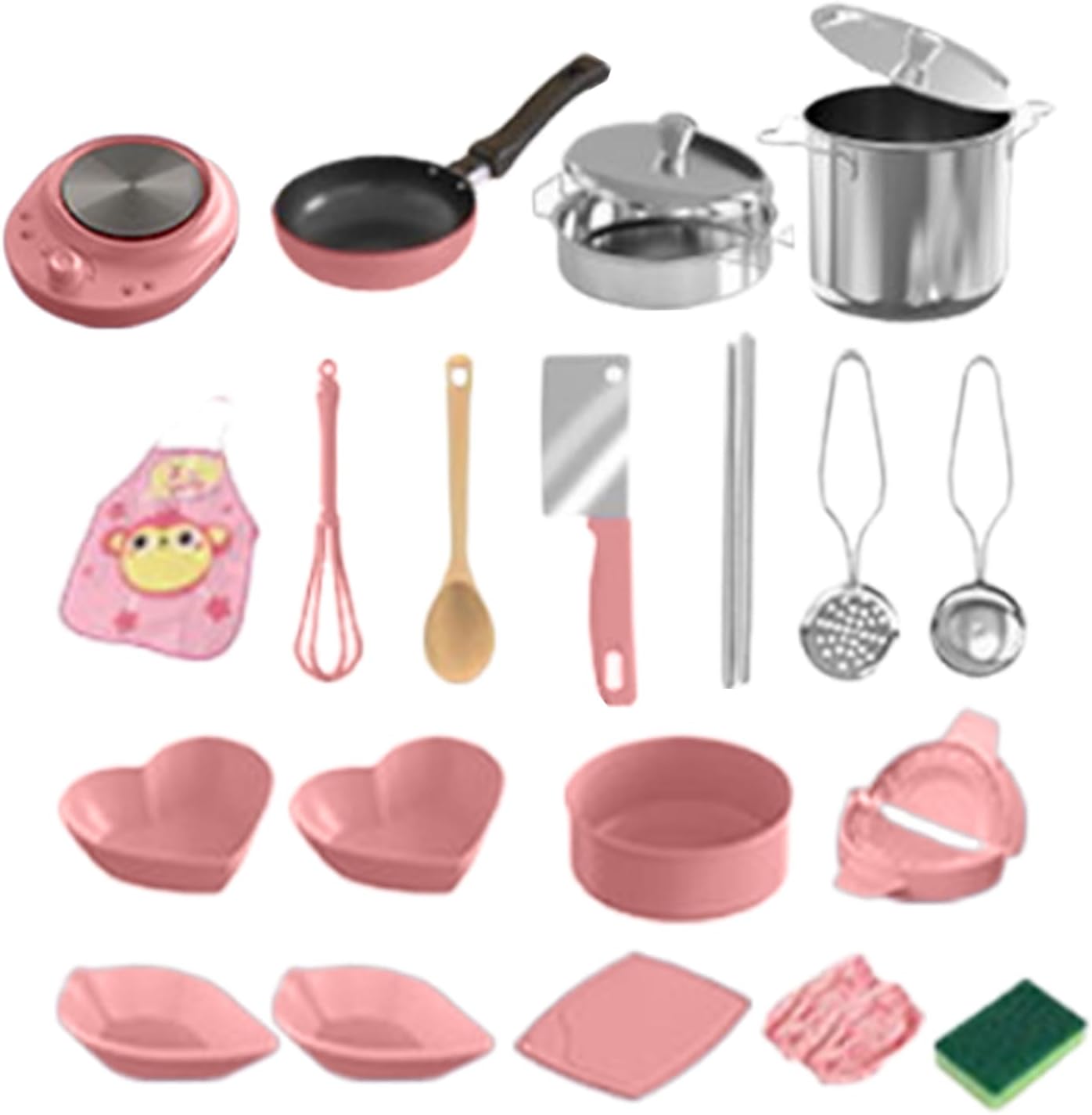 Esperienza Coinvolgente: Offre un'avventura culinaria completa con 22 utensili dettagliati, inclusi pentole e accessori, pensati per ispirare giochi di ruolo creativi garantendo ore di intrattenimento tramite simulazione realistica Dimensioni Space-Saving: Design ottimizzato per archiviazione facile in varie stanze, mantiene gli utensili ordinati senza occupare spazio prezioso Costruzione : Set realizzato con acciaio inox alimentare e PP garantisce sicurezza antifiamma durante i giochi di cucina, protegge da danni da caduta e preserva la struttura nonostante l'uso frequente Ispirare Chef Junior: Incoraggia la creatività nella preparazione del cibo, sviluppa competenze culinarie essenziali e accende un interesse duraturo per l'arte gastronomica nei giovani entusiasti Logica e Sicurezza: Promuove la coordinazione occhio-mano mentre aumenta la fiducia nelle attività pratiche, favorendo il pensiero logico e l'autonomia per costruire competenze essenziali quotidiane attraverso il coinvolgente gioco con accessori cucina giocattolo per bambini