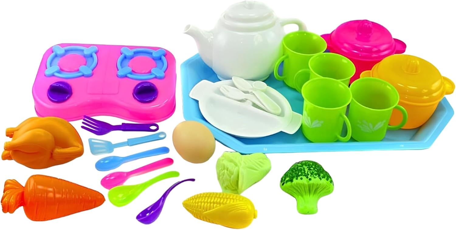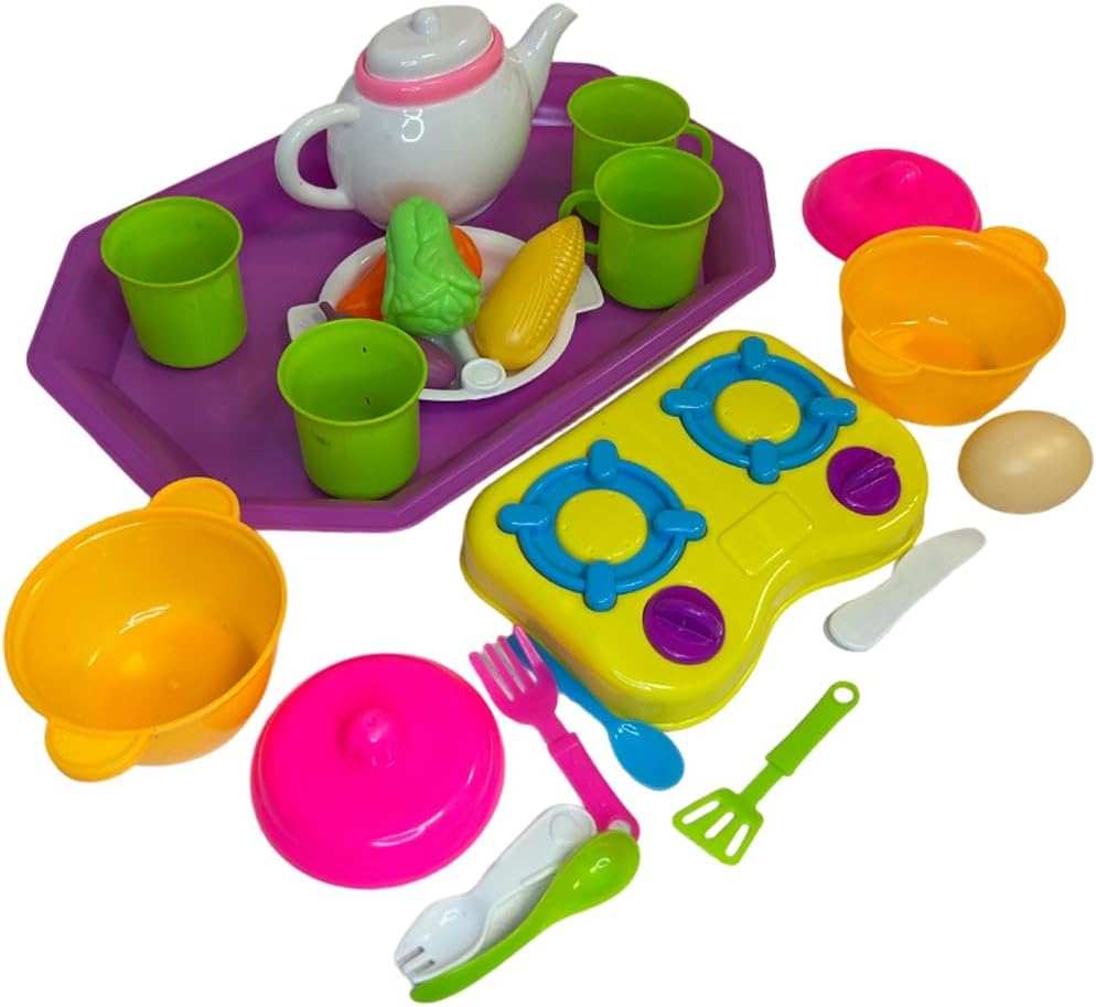 Set Cucina Giocattolo Completo per Bambini: un fantastico kit per piccoli chef che include fornello giocattolo, pentole, padelle, posate, piattini, tazzine, vassoio, pizza e torta. Un set ricco di accessori cucina giocattolo, perfetto per stimolare l’immaginazione e la creatività dei bambini, offrendo un’esperienza di gioco realistica e divertente. Ideale per creare momenti di apprendimento attraverso il gioco. Gioco Educativo per Conoscere la Cucina: progettato per insegnare ai bambini le basi della cucina in modo interattivo. Questo set permette ai più piccoli di imitare gli adulti nelle attività quotidiane, aiutandoli a sviluppare competenze culinarie, manualità e una maggiore autonomia. Un ottimo modo per introdurli al mondo della cucina e alle buone abitudini. Design Colorato e Moderno: il set cucina giocattolo si distingue per il suo design vivace e allegro, con colori assortiti casuali per un tocco di sorpresa. Realizzato con materiali sicuri e durevoli, il design semplice ma accattivante si adatta perfettamente a qualsiasi angolo gioco o cucina da gioco per bambini, trasformando ogni momento in un’esperienza unica. Confezione Pratica e Regalo Perfetto: confezionato in rete per una facile conservazione e trasporto, questo set cucina giocattolo è ideale come regalo per compleanni, Natale o altre occasioni speciali. Un dono perfetto per bambini e bambine che amano imitare gli adulti e sperimentare giochi di ruolo creativi, stimolando la loro fantasia. Accessori Realistici e Varietà di Utensili: il set include una vasta gamma di utensili e accessori, come pentole, padelle, posate, piattini, tazzine e perfino una pizza e una torta giocattolo. Tutti gli oggetti sono progettati per essere maneggevoli e sicuri, rendendo il gioco adatto anche ai più piccoli. Perfetto per giochi di gruppo e momenti di condivisione tra amici o familiari. Stimola l’Immaginazione e la Creatività: imitando le attività degli adulti, i bambini possono sviluppare le loro capacità sociali, migliorare la coordinazione occhio-mano e scoprire il piacere di creare. Questo set cucina giocattolo diventa un bellissimo accessorio per il gioco quotidiano, trasformando i piccoli in chef a 5 stelle pronti a servire deliziosi piatti immaginari!