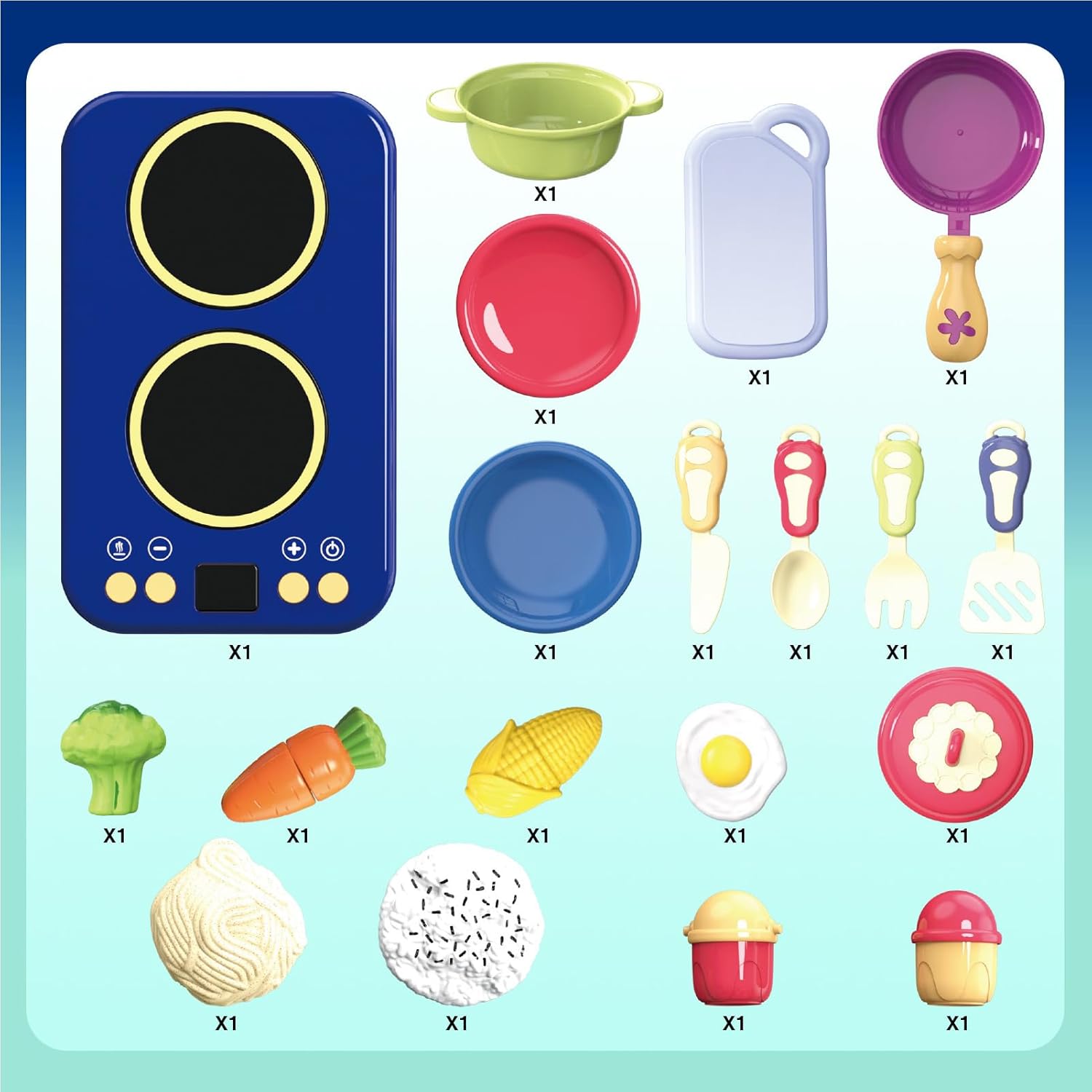 Costruzione robusta e sicura: Design con bordi lisci a prova di bambino e materiale ABS alimentare ecologico, per un ambiente di gioco affidabile e piacevole. Adatto a bambini da 2 a 6 anni, resistente e privo di sostanze nocive. Interazione Variegata: Utensili da cucina diversificati abilitano combinazioni di gioco libere con padelle, favorendo immaginazione e pensiero logico tramite coinvolgenti attività multifunzionali per l'infanzia Apprendimento Giocoso:Favorisce momenti familiari con focus educativo prescolare. Tinte brillanti attraggono l'interesse infantile in scenari multipli inclusi raduni all'aperto, potenziando esperienze didattiche divertenti attraverso l'esplorazione di cucine giocattolo. Esperienza di gioco potenziata: Dai vita ai pasti con un set che include suoni e luci realistici, stimolando la creatività e il divertimento durante il gioco di finzione in cucina per bambini Attività di Gruppo Coinvolgente: Ispira il gioco simbolico attraverso la presa degli ordini e scambi interattivi, sostenendo la coltivazione emotiva insieme al miglioramento delle abilità conversazionali e interpersonali in giochi di cucina collaborativi per più bambini.