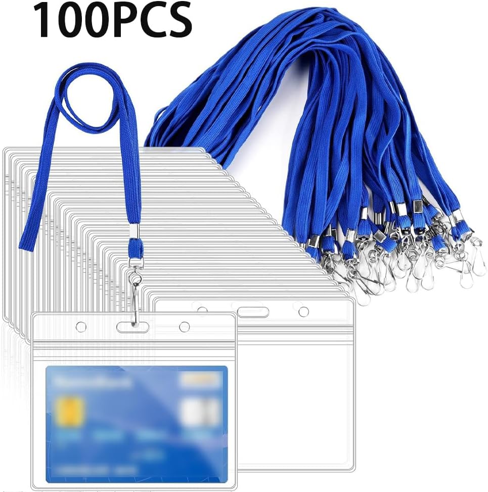 Set da 100 Pezzi (Porta Biglietti da Visita Non Incluso). Laccetto Porta Biglietti Visita, Cordino, Portachiavi, Resistente, Elegante e Versatile, Blu, 1.0