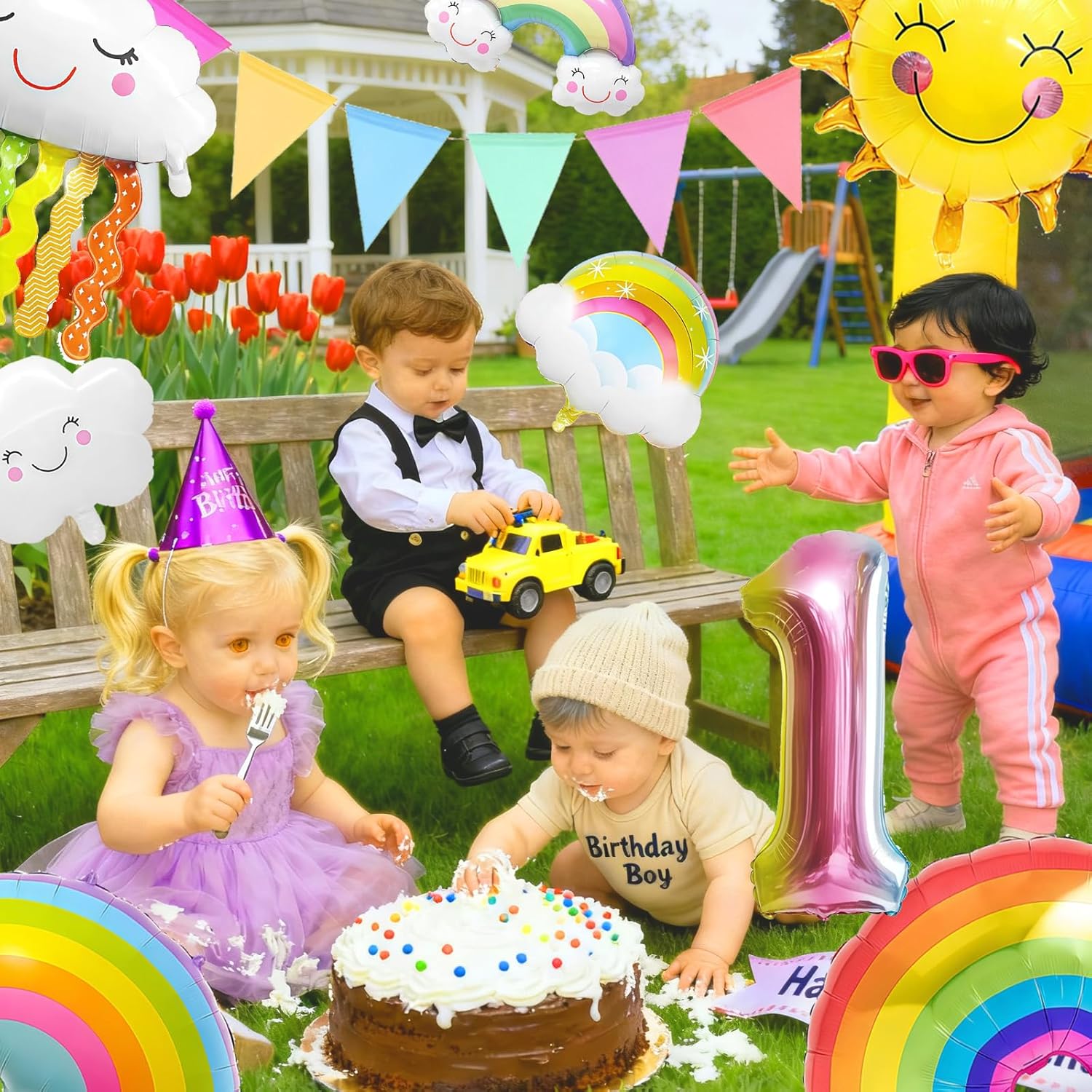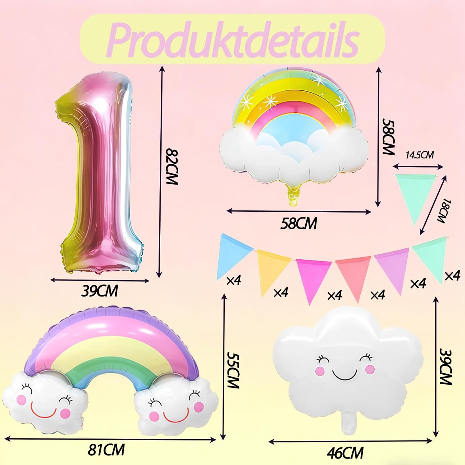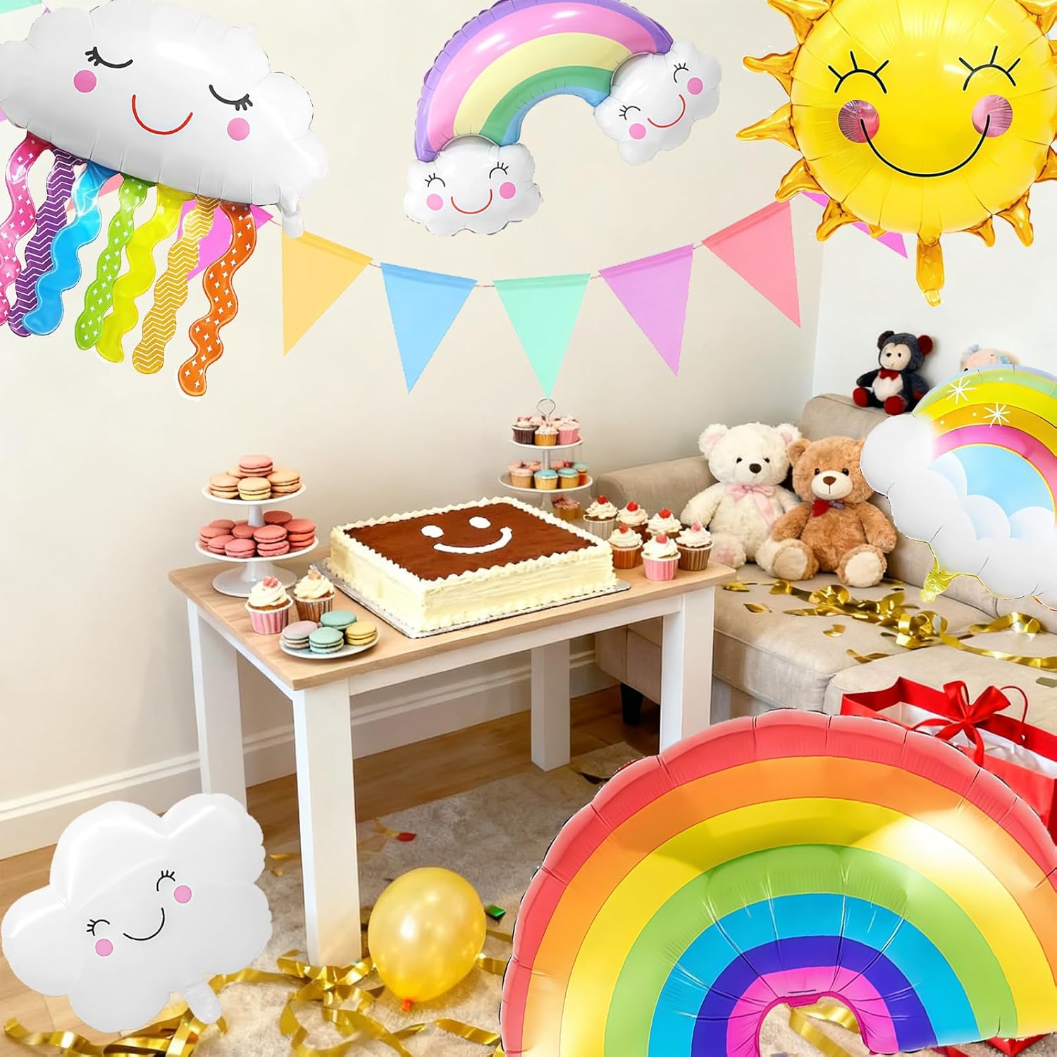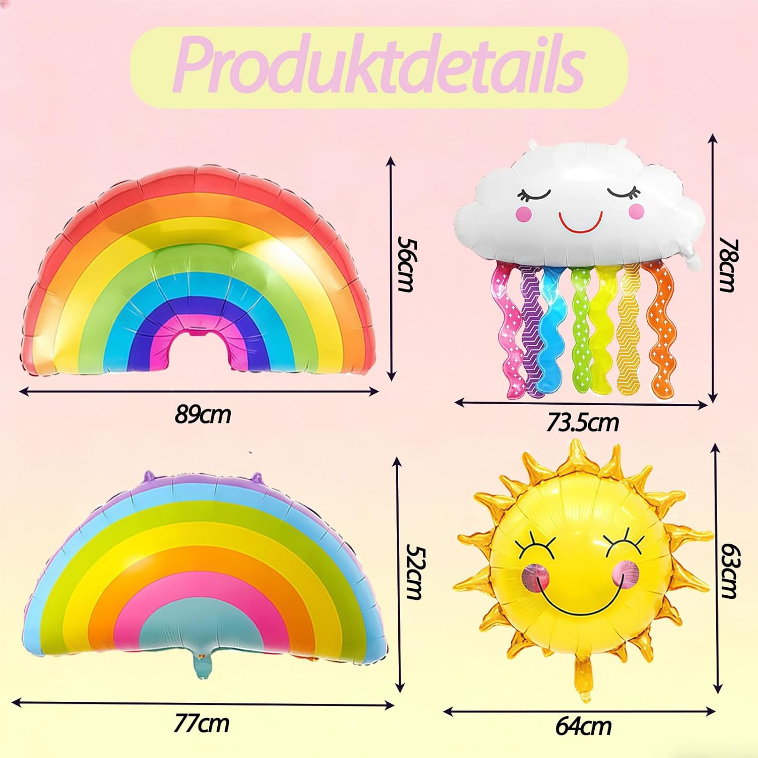 Decorazione perfetta per le feste: contiene palloncini arcobaleno e palloncini foil con nappe, per creare un'atmosfera festosa e rendere felici i bambini Facile da usare: i palloncini sono facili da gonfiare e sgonfiare, ideali per feste di compleanno e altre occasioni Uso versatile: possono essere appesi o posizionati in luoghi diversi per creare un'atmosfera divertente Materiali di alta qualità: realizzati con materiali robusti e durevoli, sicuri e non tossici per i bambini Bellissimo design: design carino e bellissimo a tema arcobaleno, ideale per decorare arcobaleno il compleanno dei bambini e altri eventi.