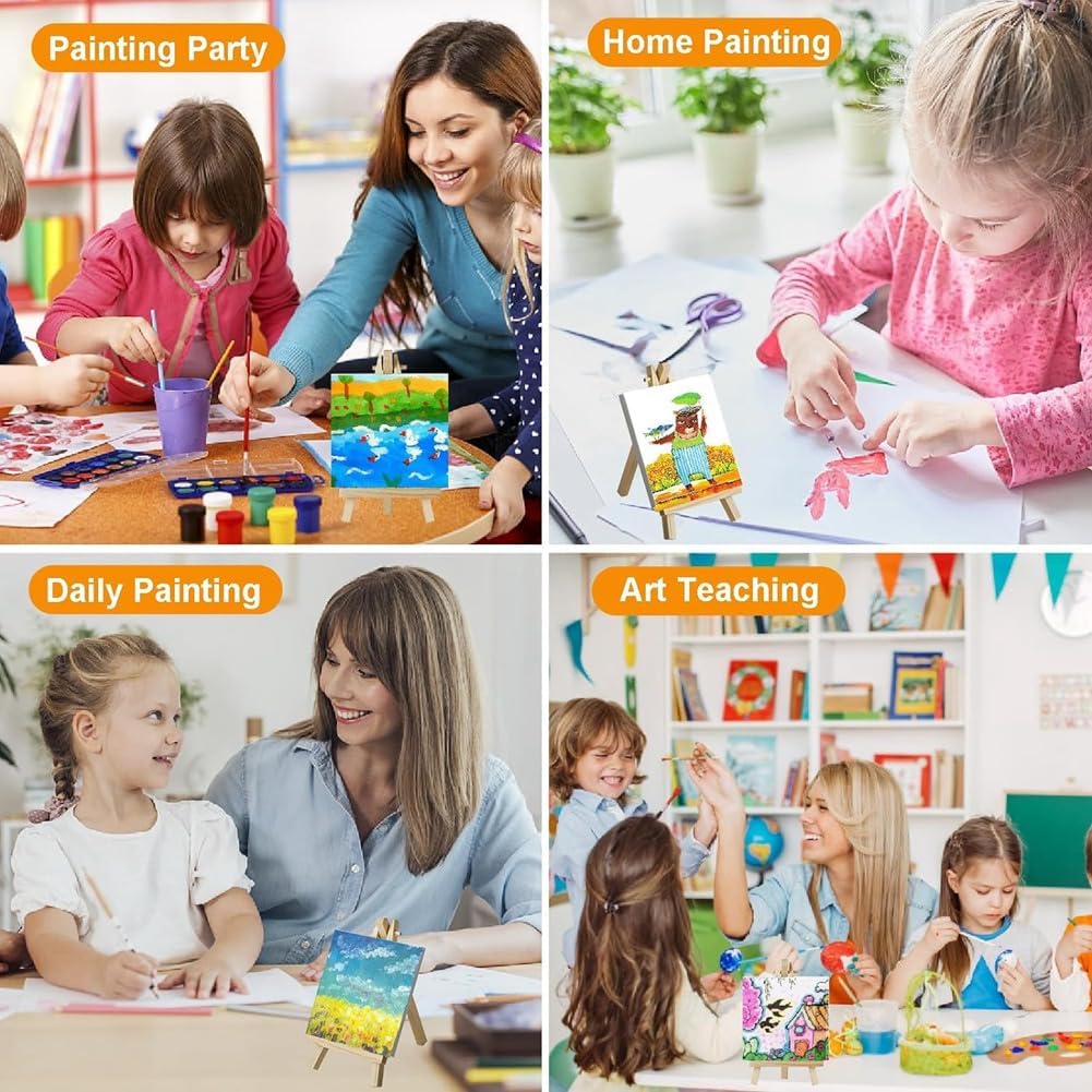 [Set di vernici lavabili per bambini piccolo]: i mini colori acrilici per bambini sono realizzati in acrilico di qualità, che ha le caratteristiche di facile miscelazione, asciugatura rapida, non facile da staccare e facile da pulire, ed è molto adatto ai bambini, rendendolo è una scelta per la pittura a lungo termine dei bambini. [Regalo perfetto per i bambini]: la dimensione mini tela per dipingere è circa 4 x 4 pollici, con una pellicola protettiva superficie che non si danneggia facilmente (strappare la pellicola protettiva prima dipingere). La dimensione mini cavalletto artistico è circa 3,35 x 5,91 pollici, che può essere piegata e leggera. [Materiali per pittura premium]: la nostra piccola tela per dipingere è durevole, e ha una flessibilità e tensione superficiale, offrendoti un'eccellente esperienza di pittura. Il mini cavalletto è realizzato in legno e sicuro, che fornisce un supporto disperdersi i bambini disegnano tela. Il set mini tele pittura può essere utilizzato come regalo e materiale per corsi pittura per bambini e principianti, aiutandoli a esercitarsi nella pittura e a migliorare le proprie capacità pittoriche. [Ampiamente usato]: il nostro set di mini tele e cavalletti per bambini può essere utilizzato per esporre piccoli dipinti, foto, oggetti di , modelli in miniatura, opere d'arte per bambini, biglietti da visita e altro ancora.