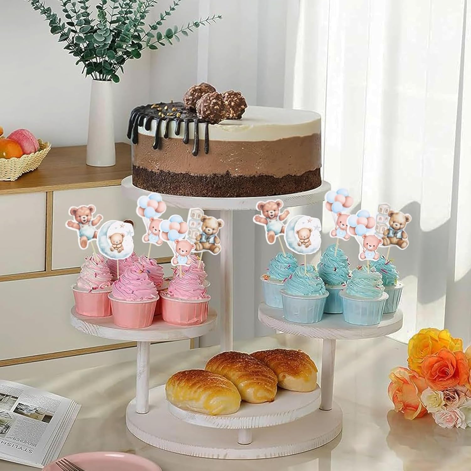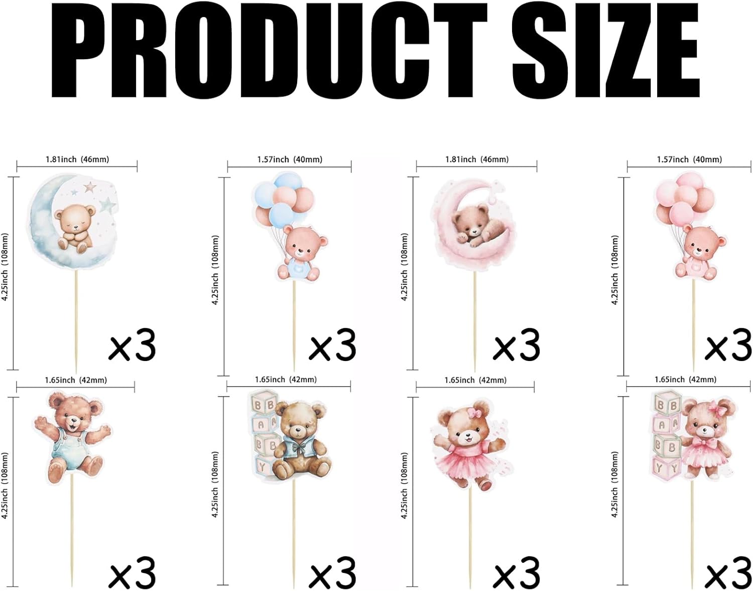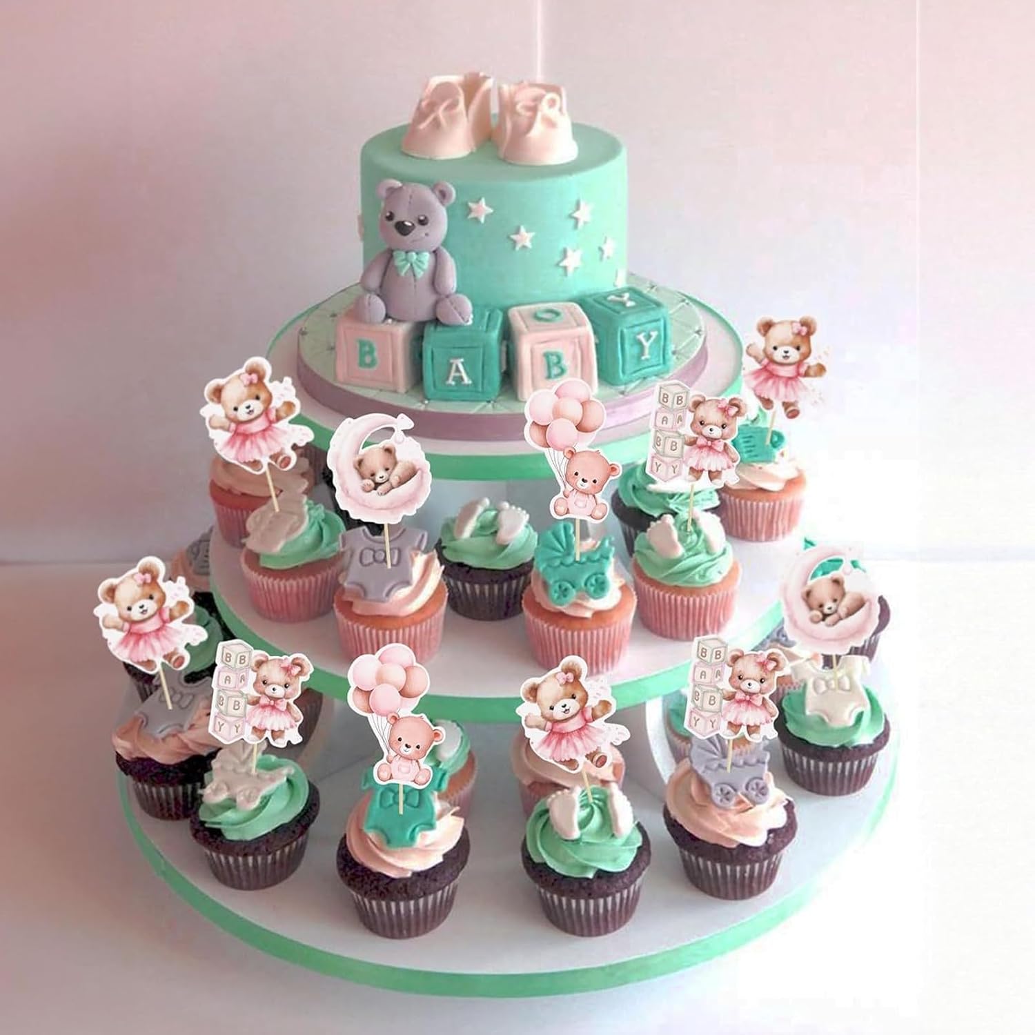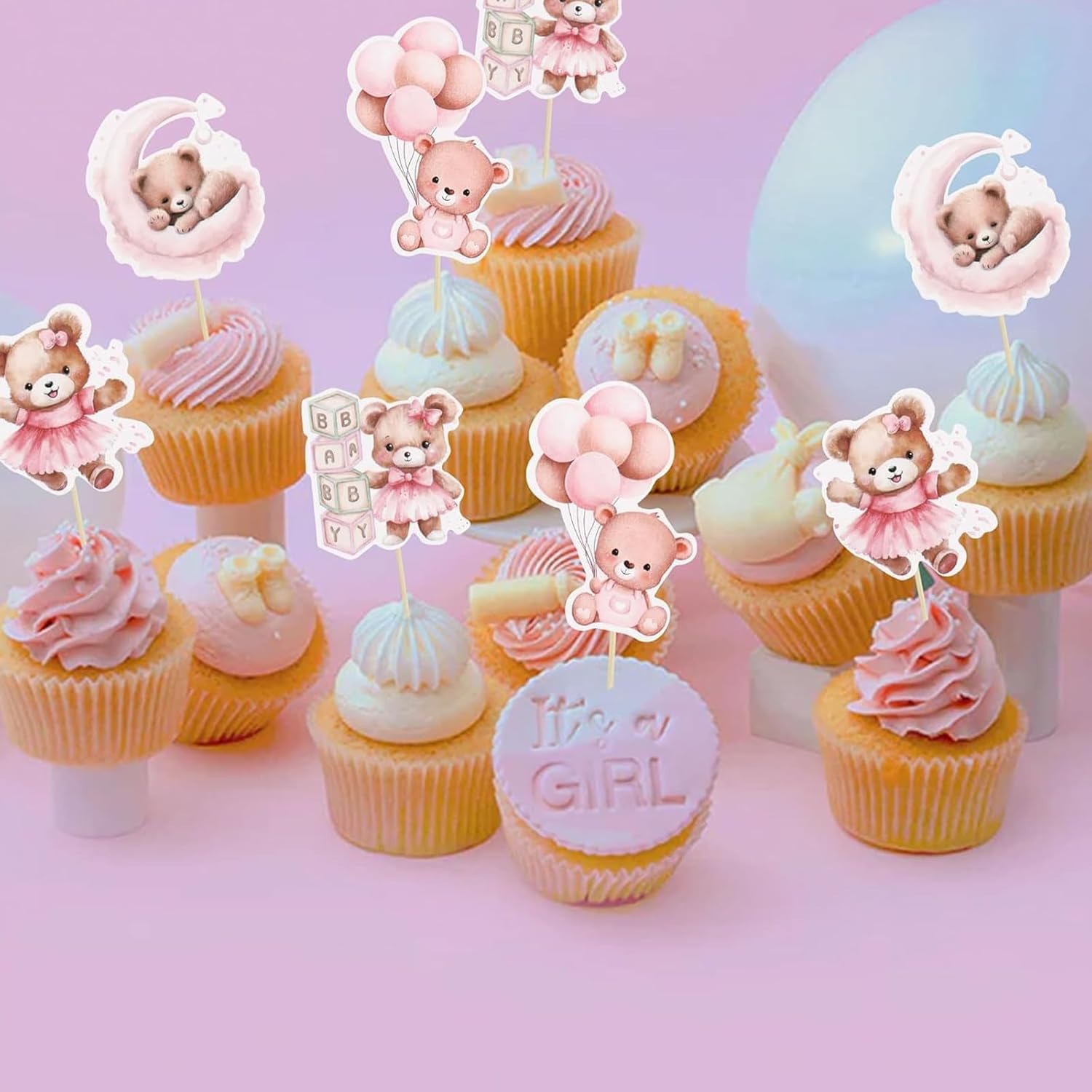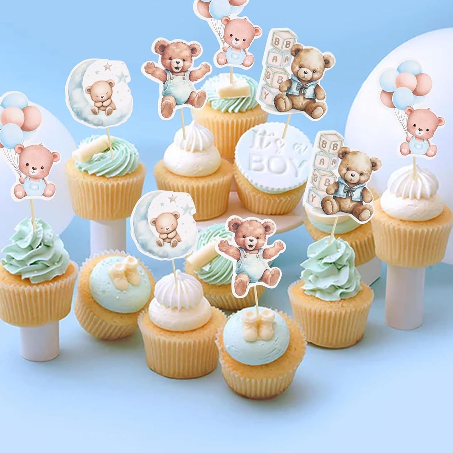 Contenuto della confezione: 24 simpatici topper per cupcake a forma di orso, tra cui 4 disegni unici, 4 di ciascuno, colori blu e rosa, bastoncini di supporto e punti adesivi forti: tutto il necessario per decorazioni perfette per le feste! Trasformazione istantanea delle feste: il nostro kit pronto all'uso rende la decorazione senza sforzo: basta attaccare i coperchi dei cupcake utilizzando i bastoncini di supporto inclusi e i punti biadesivi. Non sono richieste abilità di cottura, in modo da poter creare dolcetti in stile professionale in pochi minuti! Mix & Match Designs: viene fornito con 6 affascinanti modelli di orsi che si abbinano magnificamente. Ideale per creare interesse visivo sui cupcake mantenendo coerente il tema del baby shower o del sesso rivelatore. Cartone di alta qualità: realizzato in cartone spesso per alimenti che mantiene bene la sua forma. Questi robusti topper non appassiscono o si piegano, garantendo che i tuoi dessert siano perfetti durante l'evento. Versatile accessorio essenziale per feste: perfetto per baby shower, compleanni, battesimi e feste a tema orso. Può essere utilizzato anche come asilo nido, sfondo fotografico o decorazione regalo dopo la festa!