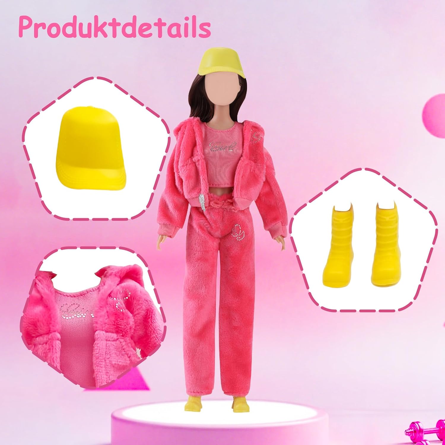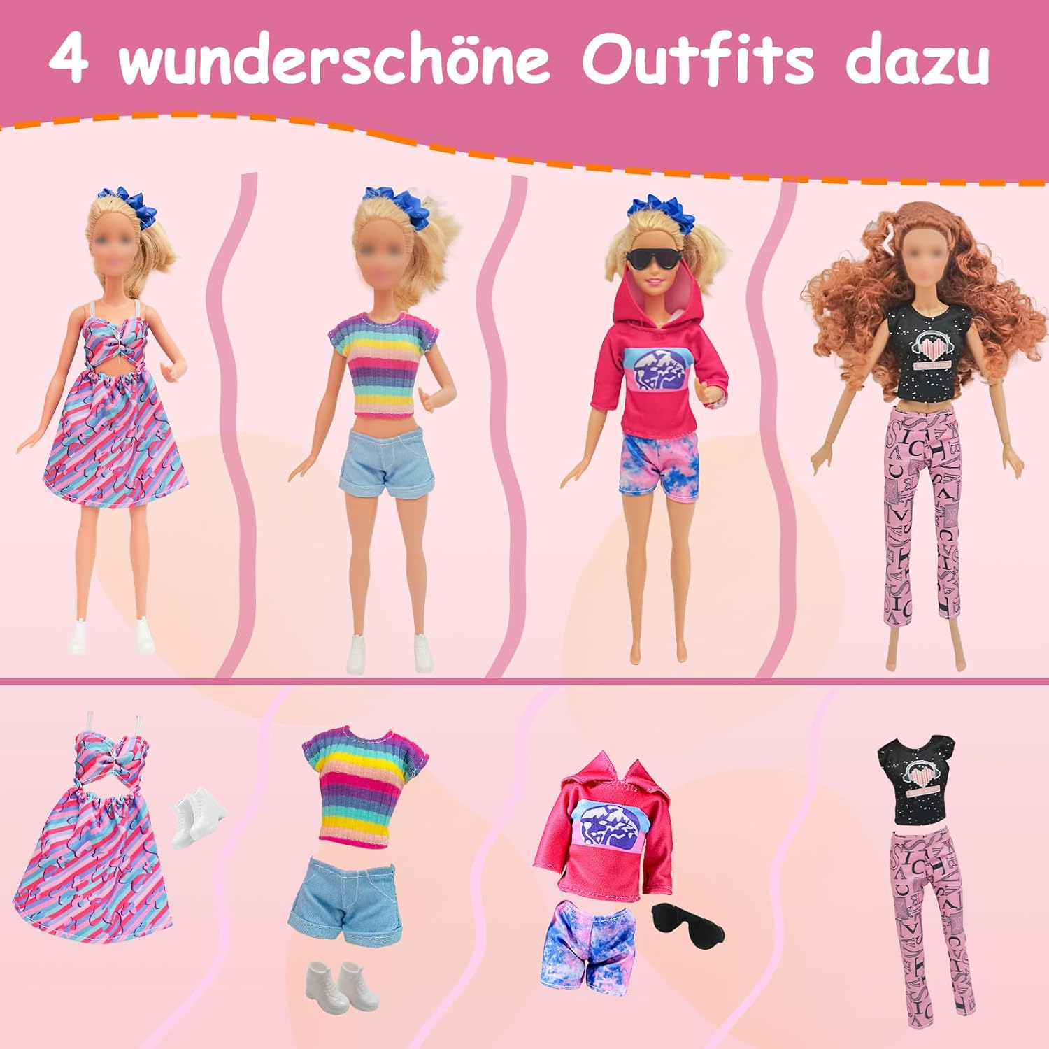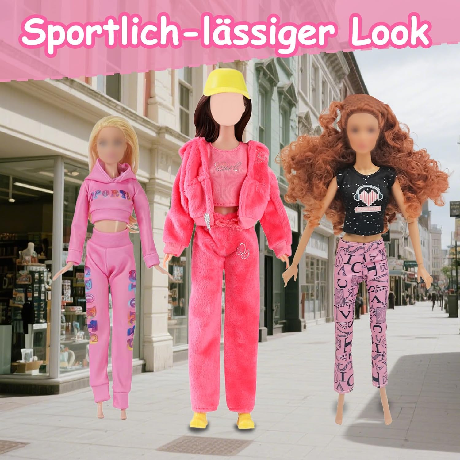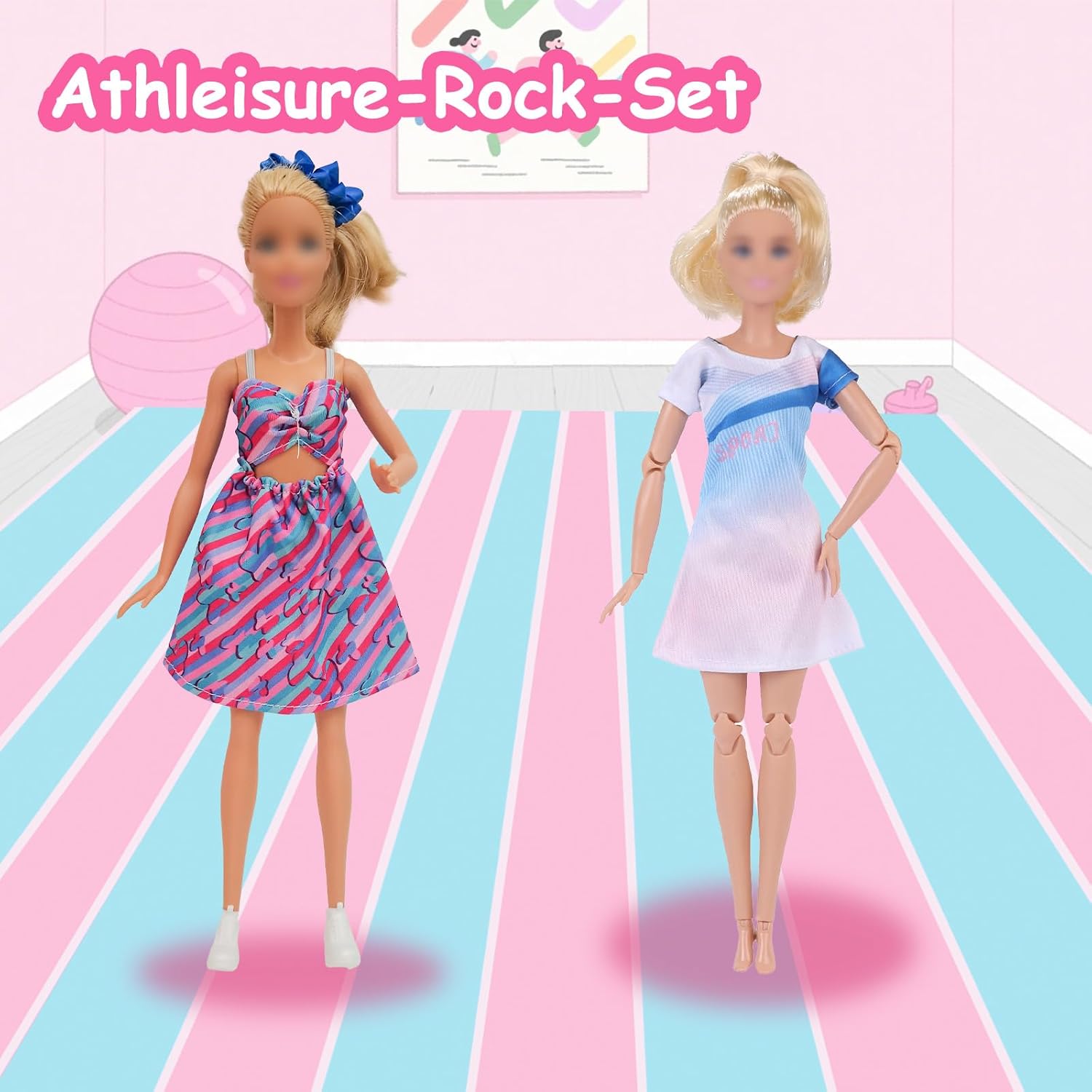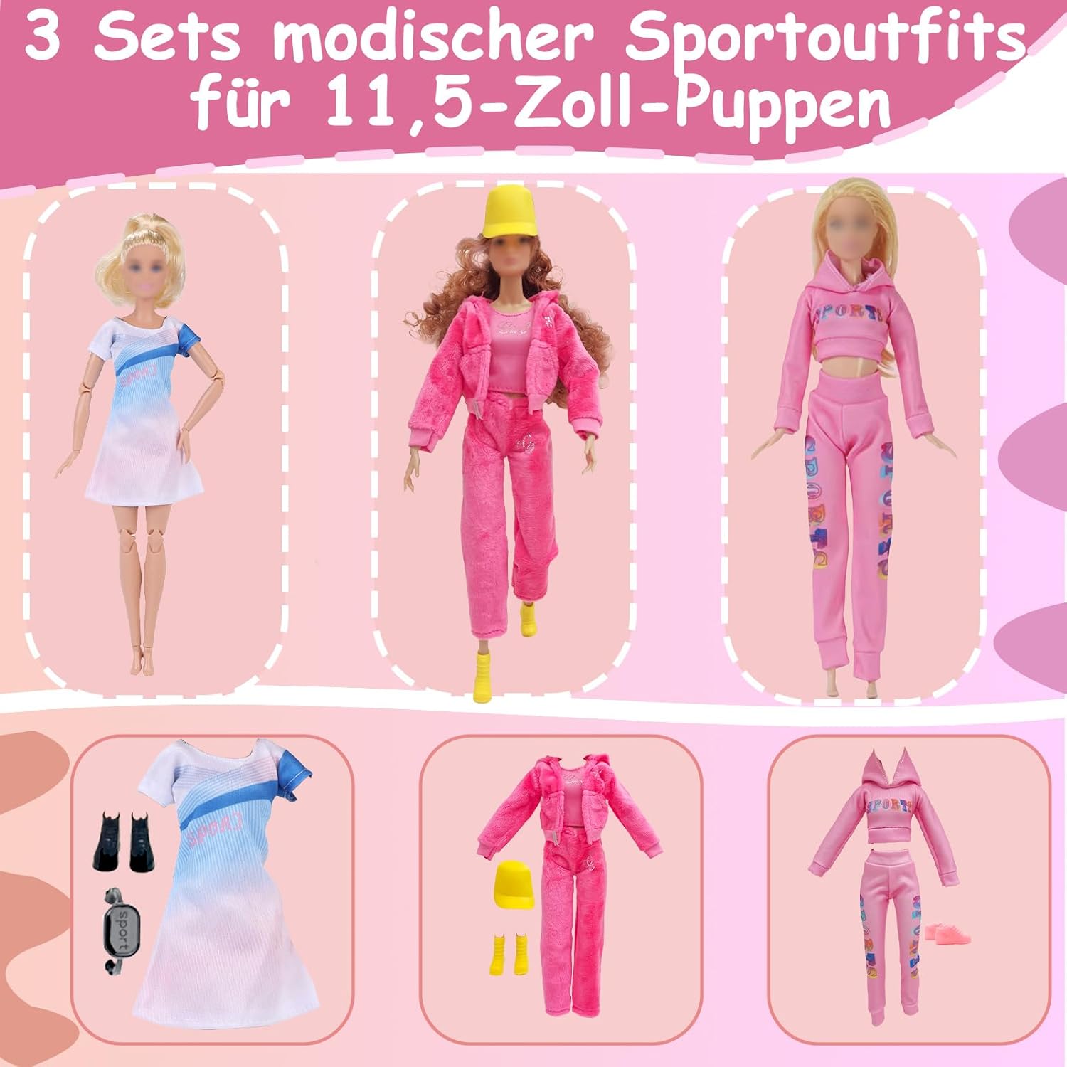 Set di abbigliamento per bambole con abbigliamento sportivo alla moda: tuta da allenamento in 3 pezzi, felpa con cappuccio con pantaloncini, top da yoga con pantaloni 7/8, maglietta a maniche lunghe, canotta con pantaloni lunghi, maglietta arcobaleno con pantaloncini, vestito sportivo blu-bianco, abito sportivo colorato, per giochi di ruolo attivi e avventure alla moda. Vari vestiti: abiti colorati come abito arcobaleno, top a righe con pantaloni lunghi, canotta con minigonna, abito da tennis blu-bianco, ideale per look quotidiani e da festa. Set da 24 pezzi per bambole: include 8 abiti alla moda, combinati con 5 paia di scarpe, 2 occhiali da sole, 1 marsupio e 1 cappello. Ogni pezzo completa perfettamente il look e garantisce possibilità di gioco creative. Gioco creativo: facile da cambiare i vestiti delle bambole, ideale per mescolare e abbinare, incoraggia la creatività, la coordinazione occhio-mano e il gioco di ruolo nei bambini. Idea regalo per bambine: ottimo regalo per Natale, compleanno o scuola - Compatibile con bambole da 11,5 pollici, non adatte a bambini veri.