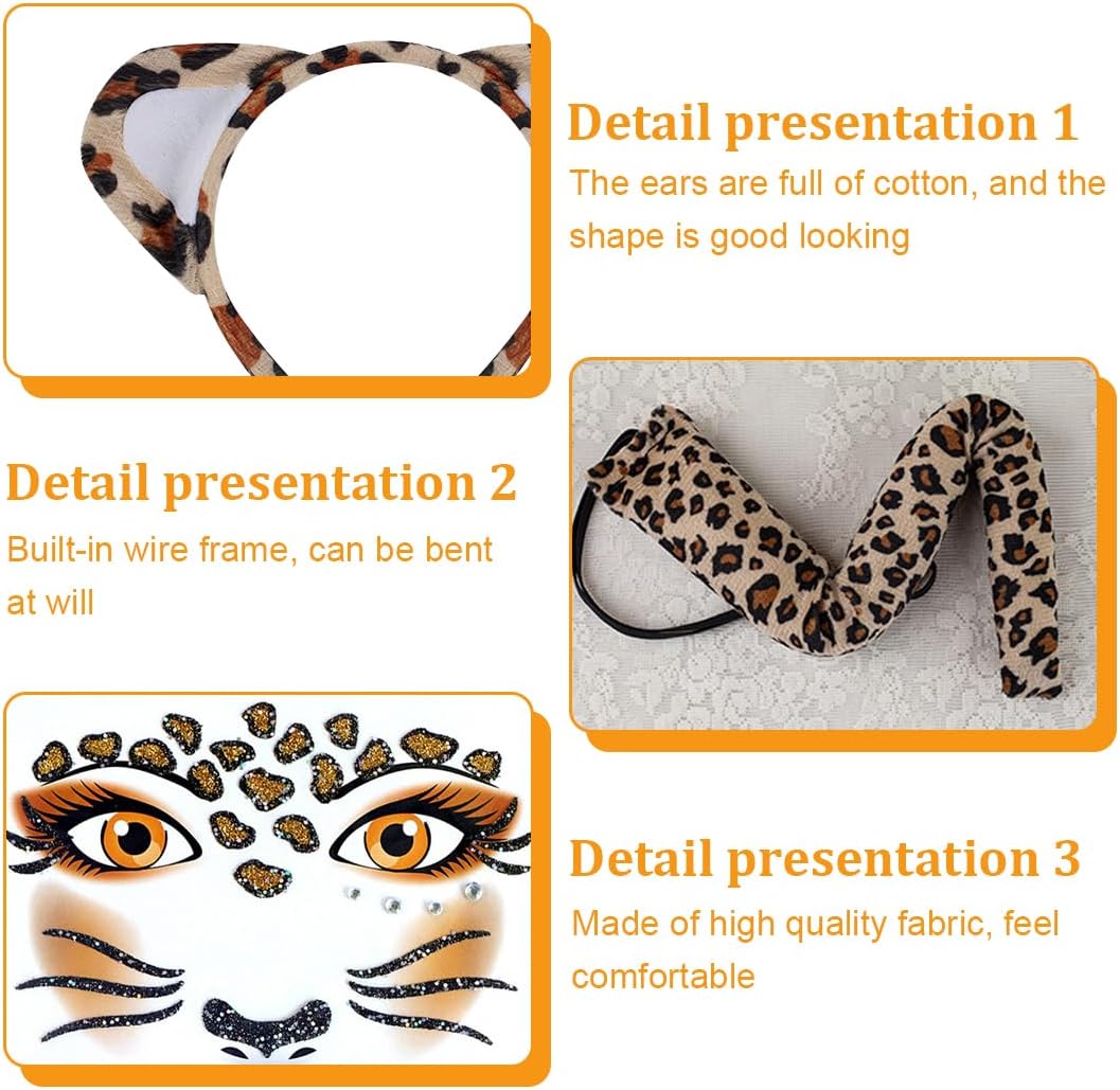 Set di decorazioni con stampa leopardata: questo set include 1 fascia per capelli con stampa leopardata, 1 papillon con stampa leopardata, 1 coda con stampa leopardata e 1 adesivo per il viso con stampa leopardata, questo costume carino soddisferà le tue esigenze di cosplay Comodo da indossare: l'abito con stampa leopardata è realizzato in tessuto di alta qualità, morbido e comodo da indossare, delicato sulla pelle, facile da indossare e da togliere, gli adesivi con stampa leopardata possono essere staccati e incollati delicatamente per completare il simpatico leopardo aspetto della stampa Unico e accattivante: l'abbigliamento con stampa leopardata imita i modelli della vita reale e puoi vestirti da leopardo o gatto MOLTEPLICI OCCASIONI: l'abito con stampa leopardata è perfetto per carnevali, eventi scolastici, addii al nubilato, spettacoli teatrali, San Valentino, Pasqua, festival estivi, feste nella giungla, Natale e altro ancora Se hai domande, contattaci, ti forniremo un servizio al 100%.