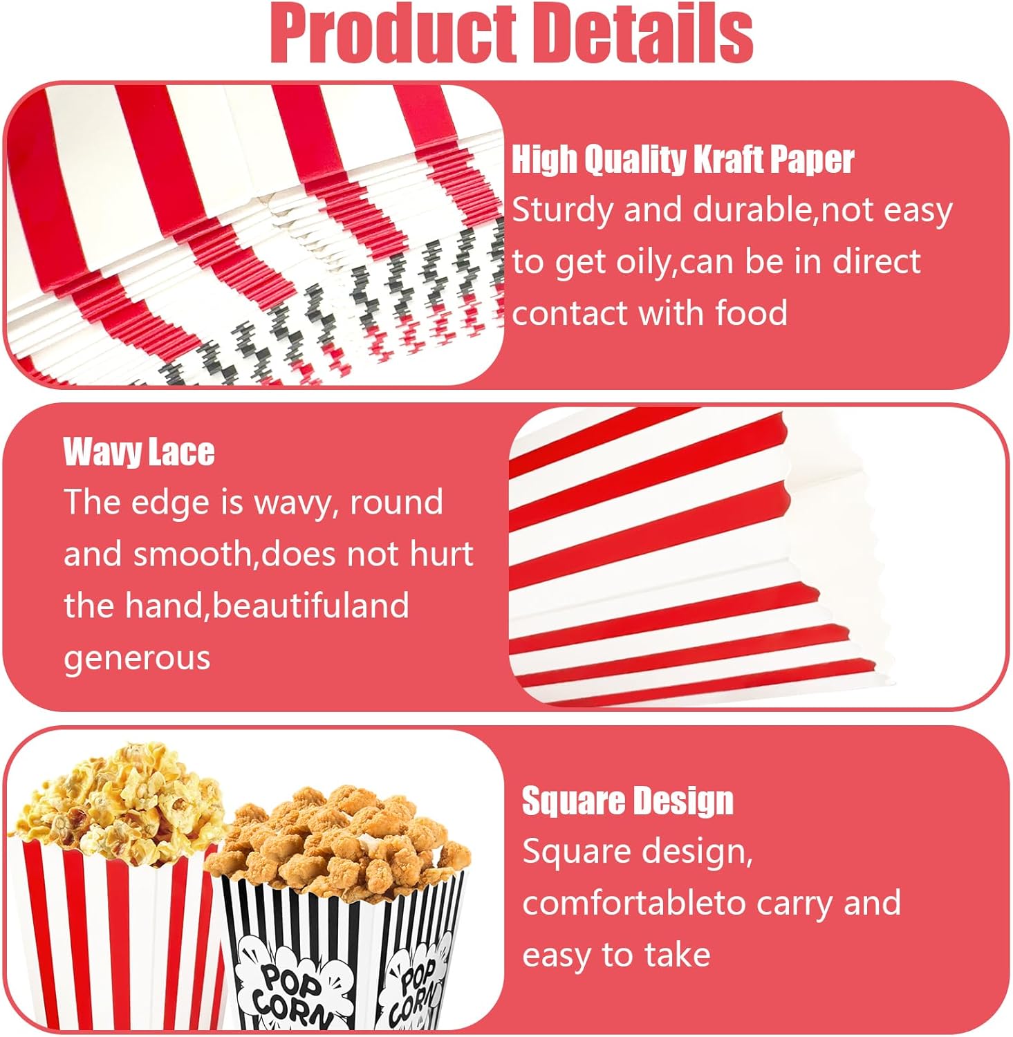 ❖ 【Contenuto del set completo】 I nostri 30 sacchetti di popcorn a strisce offrono un pacchetto completo per le serate di cinema. I sacchetti per popcorn in cartone per alimenti garantiscono un piacere igienico - ideali per set di accessori per popcorn e forniture per il cinema! ❖ 【Capacità ottimale】 Queste scatole cinema per popcorn forniscono sacchetti non solo adatti ai popcorn, ma anche agli snack come patatine/noci. I sacchetti per popcorn a righe (5x11 cm) sono stabili grazie al rivestimento resistente al grasso del sacchetto per popcorn e agli snack: doppia sicurezza contro le perdite! ❖ 【Design retrò multiuso】 Il motivo a strisce rosse e bianche di questi contenitori per snack crea un vero tocco cinematografico! Perfetti come accessorio da picnic o per le feste: i sacchetti per popcorn fungono da elemento decorativo e pratico aiuto per servire. Due funzioni: un accessorio elegante! ❖ 【Immediatamente pronto per l'uso】 Non si attacca né si piega: le borse per il cinema Popcorn Box si aprono in un batter d'occhio. Grazie al rinforzo inferiore integrato (doppio strato di materiale), anche gli snack pesanti rimangono al sicuro. Confezione perfetta per popcorn per eventi spontanei! ❖ 【Uso universale】 Che si tratti di cinema, carnevale o festa in giardino: queste borse per accessori per popcorn padroneggiano tutti gli scenari! I sacchetti per snack per popcorn sono adatti anche per cibi caldi: il rivestimento interno che blocca l'olio offre una doppia protezione contro l'ammollo. Veri tuttofare per un divertimento senza compromessi!