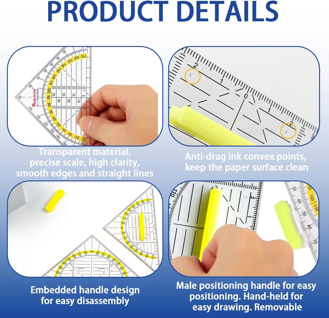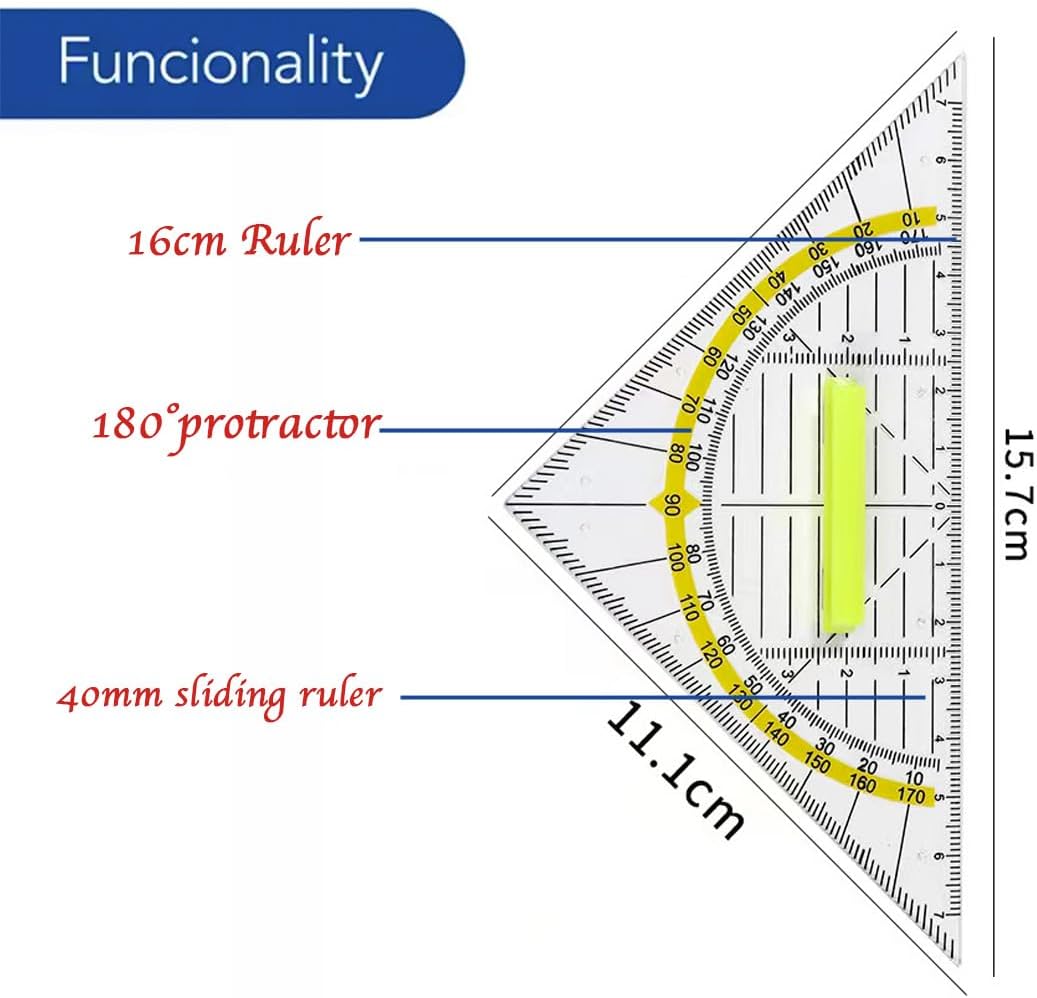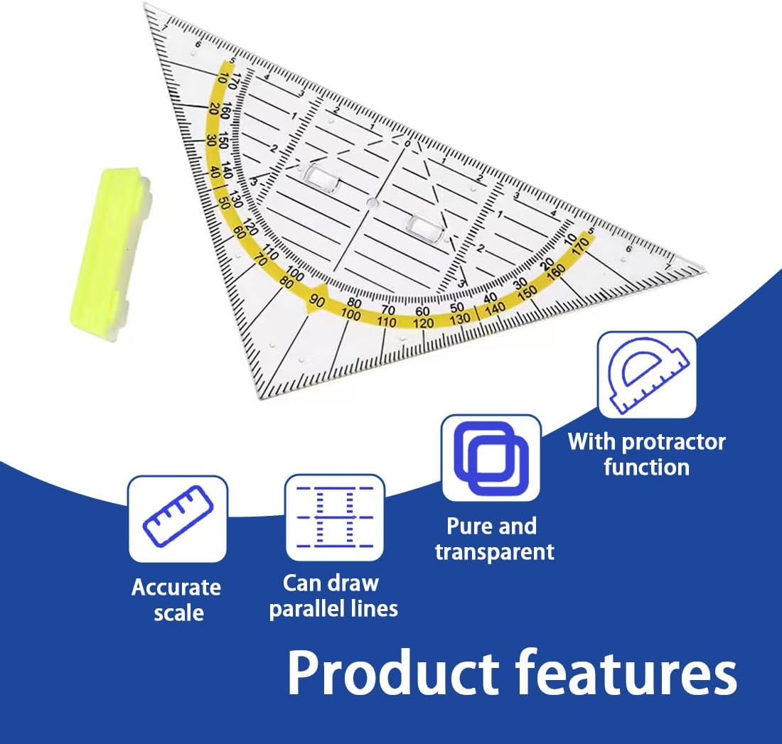 [Confezione di grande valore] - Ogni confezione contiene 6 squadre geometriche, sufficienti per soddisfare le tue esigenze di lavoro a casa o in ufficio. Che tu stia facendo i compiti, preparando una relazione o creando disegni professionali, questo set di strumenti fa al caso tuo. [DESIGN PORTATILE] - Questi triangoli geometrici sono di medie dimensioni, lunghi 16 cm, leggeri e facili da trasportare, perfetti per essere riposti in zaini scolastici, cartelle o sacchetti di carta. È facile da trasportare a scuola, in ufficio o in viaggio. [Design innovativo] - Che tu sia un insegnante, uno studente, un matematico, un ingegnere, un designer o un artista, lo troverai molto utile. [Applicazione multifunzione] - Questa scuola di geometria triangolare combina la misurazione di lunghezza e angolo in un unico strumento, riducendo la necessità di portare con sé più strumenti per disegnare con precisione linee e diagrammi. Molto adatto a vari scenari applicativi come pittura, disegno, modellismo, ecc. [Materiale di alta qualità] - Questa confezione da 6 triangoli geometrici è realizzata in plastica trasparente di alta qualità, resistente e infrangibile. Superficie liscia, scala chiara e misurazione accurata garantiscono l'efficienza del disegno e del lavoro