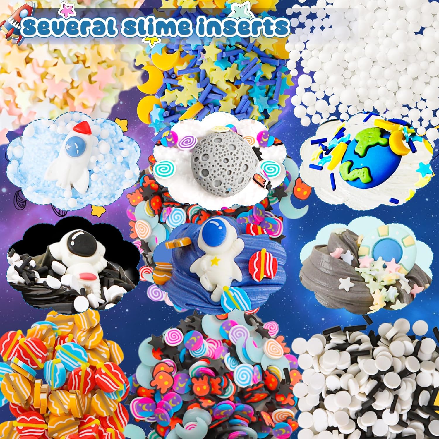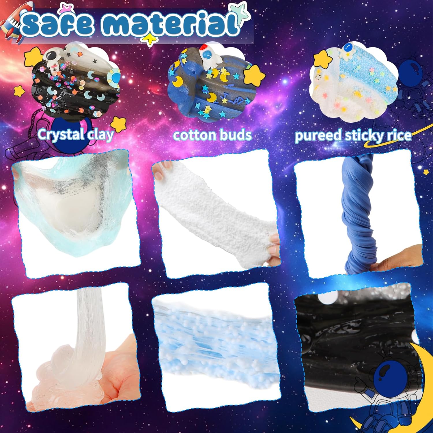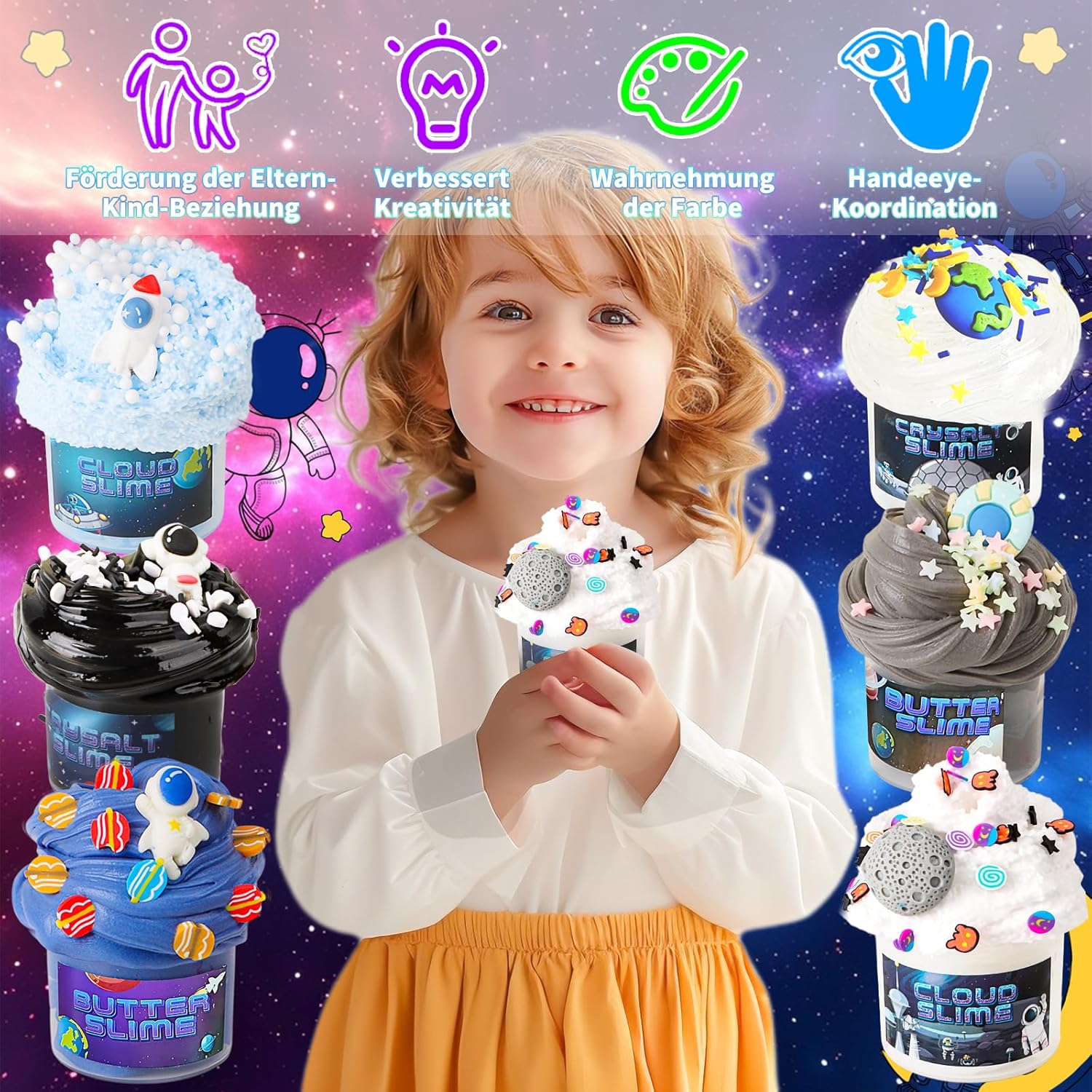 Set di slime Galaxy: il nostro set di slime Galaxy contiene 3 diverse texture di muco, ogni contenitore contiene 70 ml di melma. L'intero set (incluso il ciondolo a forma di astronauta) ha un volume totale di 420 ml. Goditi allo stesso tempo la melma non appiccicosa, la melma superflua e la melma elastica trasparente Set sottile fai da te: il nostro set di burro slime è morbido, non si attacca alle mani e si allunga facilmente. Il set sottile trasparente "Galaxie" contiene bolle d'aria e ha un eccellente effetto antistress grazie ai suoni soddisfacenti che si formano durante lo stretching e la pressione. La nuvola bianca slime e il soffice Slime grigio si allungano lentamente formando un motivo simile a un fiocco di neve che è visivamente molto accattivante Appositamente progettato per i bambini: questo set di Slime appositamente progettato per i bambini ha un motivo galassia, un gradiente di colore dal bianco al nero profondo e contiene 6 divertenti accessori Slime. Sia che tu voglia creare slime al burro croccante, soffici o morbide, questo set contiene tutto il necessario per creare design Slime unici. Inoltre, include vari ciondoli Slime con motivi astronauti che stimolano la tua immaginazione. Inizia e costruisci la tua stazione spaziale galattica! ️【Sicuro e di alta qualità】I nostri set Slime nero, blu e bianco sono realizzati con materiali di alta qualità, sicuri e affidabili, in modo che i bambini possano giocare in modo sicuro e con piacere. Questi set per Slime sono ideali come regalo per i bambini, in modo che i genitori possano stare tranquilli mentre i loro figli esplorano il mondo dello slim Il regalo perfetto: con il suo design con cielo stellato, questo prodotto è la scelta ideale come pensierino per una festa sottile e dona a ogni festa un tocco unico. È perfetto come riempimento per feste di compleanno, come regalino per feste per bambini durante feste o altre celebrazioni tutto l'anno.