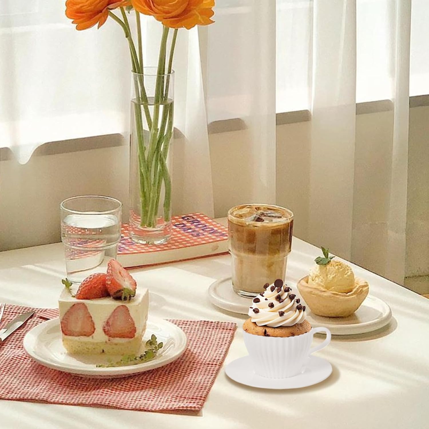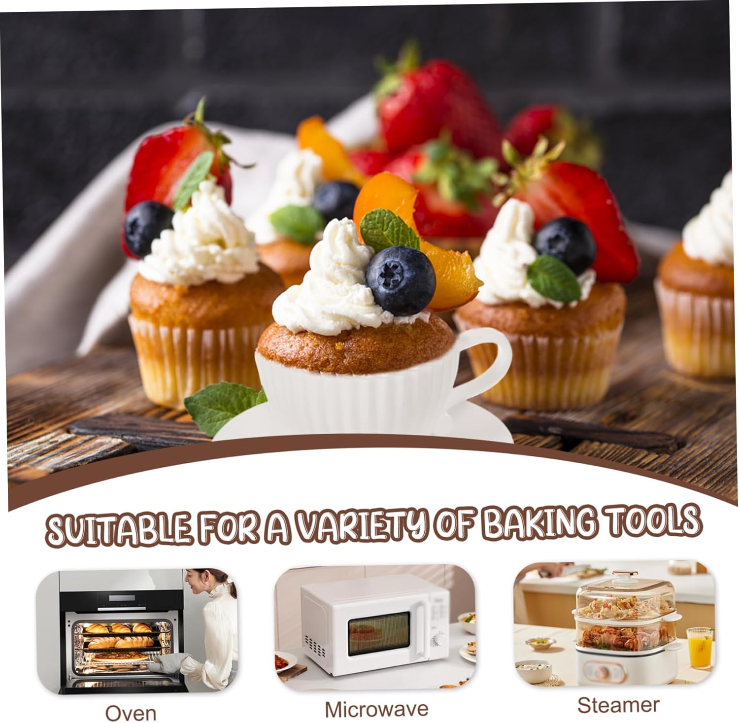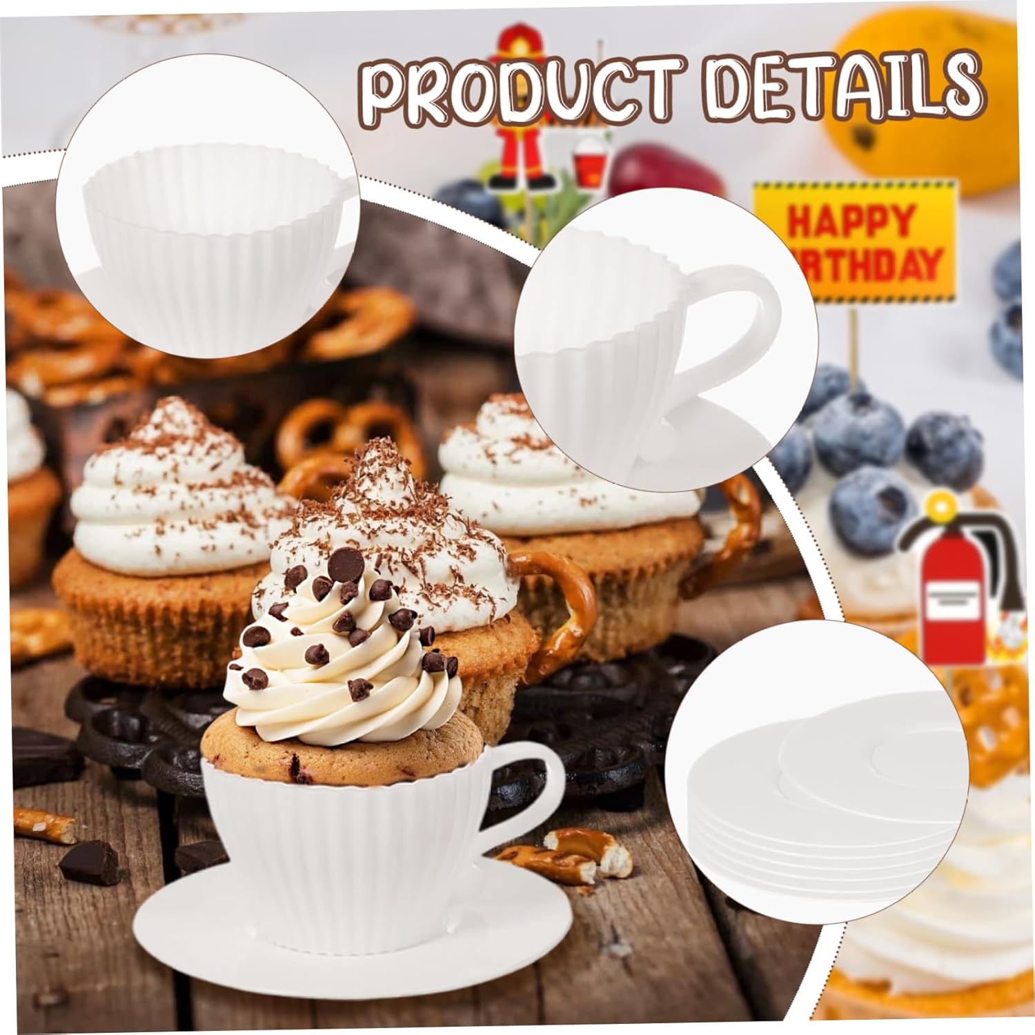 Set completo di tazze da tè: questo set di tazze da forno in silicone comprende 8 tazze a forma di tazza da tè e 8 piattini coordinati..Perfette per aggiungere un tocco elegante alla tua tavola, posiziona semplicemente le tazze piene di tè raffreddate sui piattini per una presentazione affascinante che sicuramente impressionerà i tuoi ospiti. Antiaderenti e facili da pulire: a differenza dei tradizionali pirottini di carta, questi pirottini in silicone sono impermeabili e antiaderenti, facilitando la rimozione dei prodotti da forno senza problemi..La pulizia è un gioco da ragazzi: basta sciacquarli con acqua o metterli in lavastoviglie per una rapida pulizia..Puoi anche aggiungere un po' di grasso o spray da cucina per un rilascio ancora più semplice. Applicazioni versatili per la cottura al forno: questi pirottini multiuso sono ideali per preparare una varietà di dolcetti, tra cui muffin, mousse, pane, budino, torta, brownies, cupcake e altro ancora..Sono perfetti per feste, matrimoni, compleanni, baby shower ed eventi speciali di pasticceria come Halloween, Ringraziamento e Natale. Adatto al forno e al congelatore: realizzati in silicone alimentare privo di BPA, questi stampi per tazze sono sicuri per l'uso in microonde, forni, frigoriferi, congelatori e lavastoviglie..Possono resistere a temperature che vanno da -40°C a 230°C, consentendo un'ampia gamma di opzioni di cottura e conservazione..(Nota: il piattino non è adatto al forno.) Dimensioni standard: ogni tazza misura 2,95x1,77x1,77 pollici, con piattini dal diametro di 4,25 pollici..Realizzate in silicone di qualità, queste tazze robuste e durevoli sono progettate per resistere all'uso regolare pur essendo antiaderenti e resistenti all'olio, garantendo un'opzione ecologica per le tue esigenze di cottura.