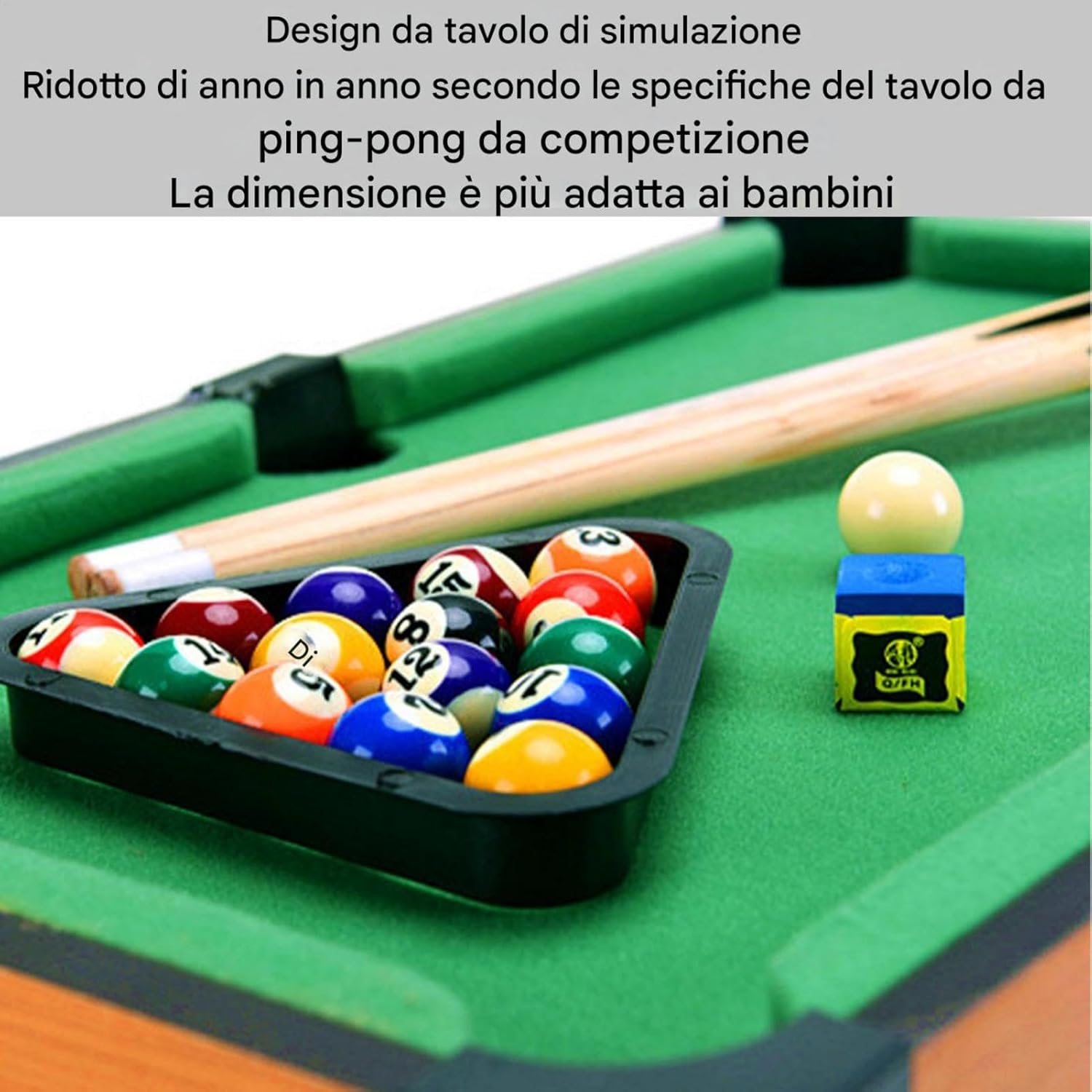 1. Materiali di alta qualità: realizzato in legno di alta qualità, il tavolo da biliardo è stabile e dotato di cuscini di gomma sui bordi, offrendo un'eccellente esperienza di giocattolo a sfera, permettendoti di goderti il divertimento del giocattolo! 2. Set pieno di attrezzature da tavolo da biliardo: il nostro set di tavoli da biliardo è completamente attrezzato, tra cui un tavolo da biliardo, 2 segnali, un set completo di palline di biliardo, un treppiede e un pennello per la pulizia, che sono tutti disponibili per comodità. 3.Prush superfici: le superfici del tavolo da biliardo sono coperte con un panno lussuoso di alta qualità e il design resistente ai graffi garantisce un'esperienza di giocattolo fluidas. Questo tavolo da biliardo è resistente e ha prestazioni eccellenti! La dimensione del tavolo del giocattolo è progettata per i bambini, lunghe 34,5 cm e larghe 23 cm 4.Non Assemblaggio richiesto: il tavolo da biliardo in miniatura può essere utilizzato dopo l'apertura, senza noiosa assemblaggio, e puoi goderti il divertimento dei biliardo. È una scelta regalo perfetta per gli appassionati di biliardo! 5. Fun di famiglia unlimitato: il nostro tavolo da biliardo mobile può essere posizionato ovunque, come nel soggiorno. Questo tavolo da biliardo in miniatura offre un intrattenimento infinito per i giocatori di tutte le età, consentendo a familiari e amici di godere di ore di divertimento competitivo insieme!