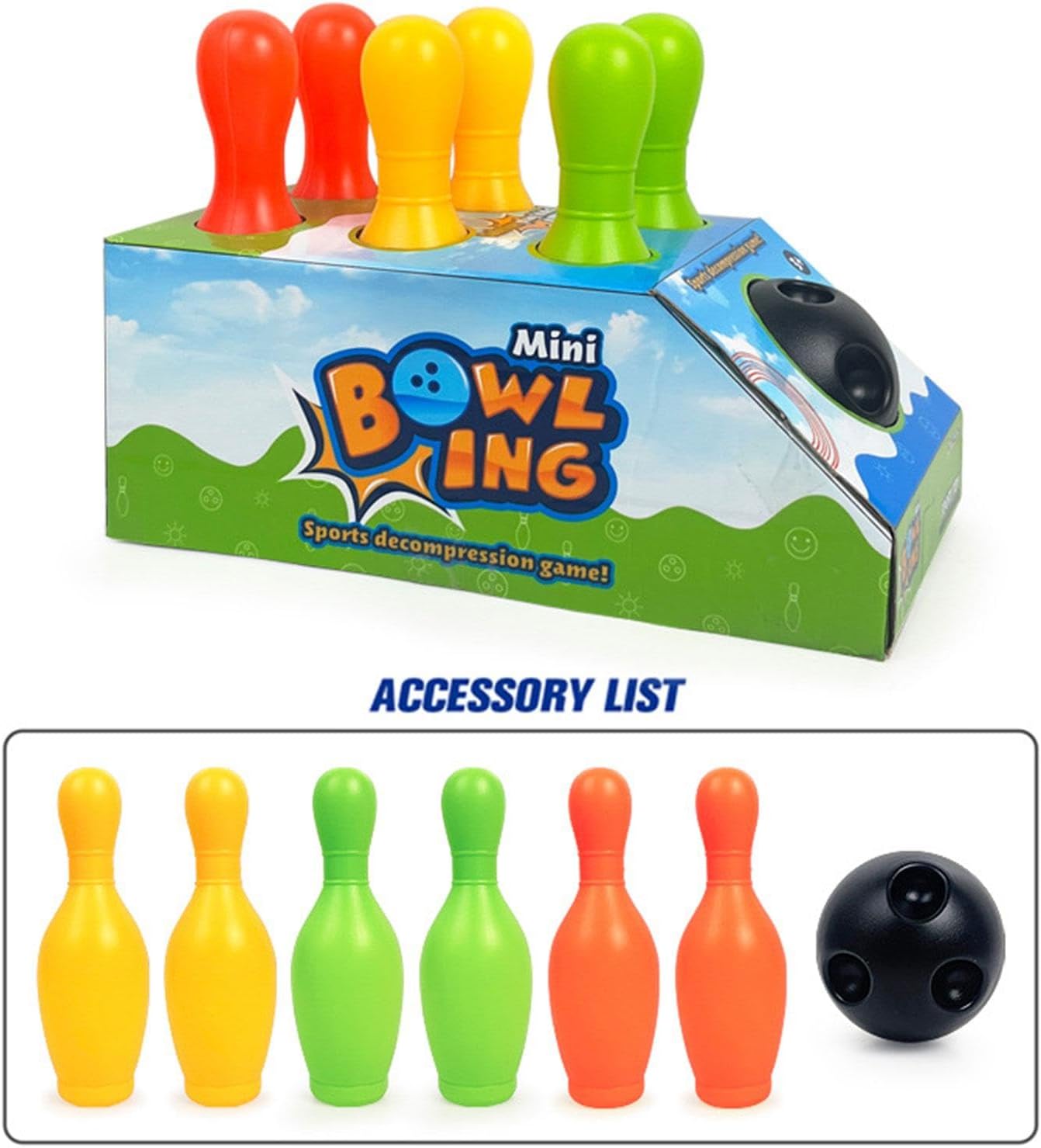 【Regalo】: Set da bowling per bambini con 6 birilli e 1 palla, giocattolo educativo per lo sviluppo precoce, regalo ideale per ragazzi e ragazze per compleanni e vacanze 【Occasione】: Il gioco del bowling per bambini è ottimo per una serata o un incontro, al chiuso e all'aperto 【Educativo】: il kit da bowling per bambini può migliorare la concentrazione, la coordinazione occhio-mano e la consapevolezza sensoriale. 【Materiale】: Questo set da bowling per bambini è realizzato in materiale PP, che lo rende abbastanza robusto da poter essere posizionato su qualsiasi superficie e resistere ai colpi. 【Gioco interattivo per famiglie】: questo giocattolo sportivo da bowling per bambini è un gioco interattivo per famiglie che favorisce l'interazione tra genitori e figli