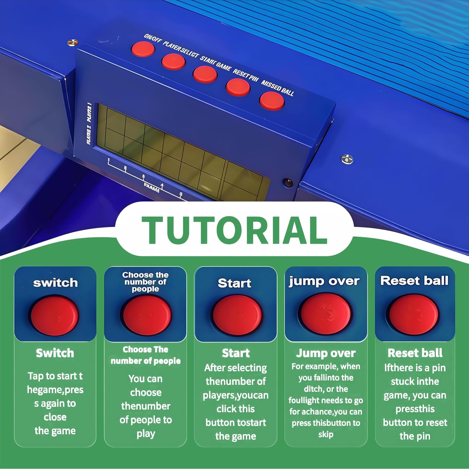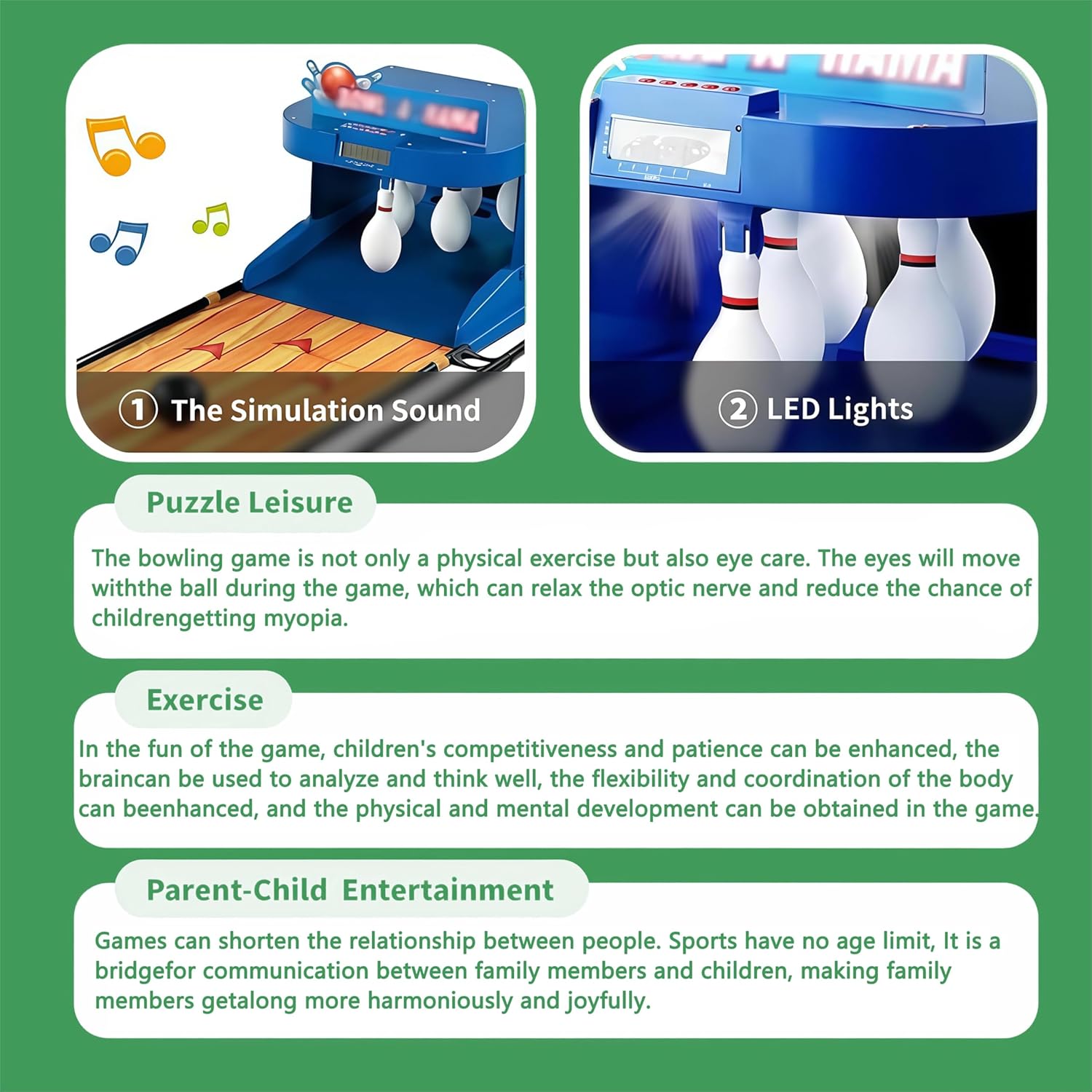 ● Il set da bowling è dotato di 6 birilli in plastica e 2 palle da bowling. I birilli e le palle da bowling sono realizzati in plastica di alta qualità, atossica e sicura per i bambini. ● Durante il gioco, il segnapunti elettronico a LED registrerà automaticamente il punteggio e condividerà il divertimento della competizione. Una o due persone possono interagire con il gioco contemporaneamente. L'obiettivo è abbattere il maggior numero possibile di birilli. ● La palla si resetterà automaticamente quando colpisce la bottiglia dopo averla lanciata nella mano, ed emetterà un suono simulato di reset per rendere il gioco più realistico e pratico. ● Un set da bowling elettrico portatile di grandi dimensioni adatto all'uso domestico, che consente di impostare il gioco in modo rapido e semplice. Hanno fatto un buon lavoro nel simulare il peso relativo della palla e la superficie era sufficientemente liscia. Può essere piegato e riposto quando non in uso e gli angoli non occupano spazio. ● Il bowling è divertente, interessante, competitivo e richiede abilità. I giochi possono avvicinare le persone. È un ponte di comunicazione tra la famiglia e i bambini, rendendo la famiglia più armoniosa e gioiosa.