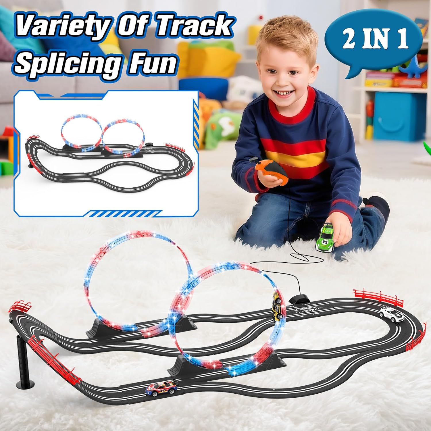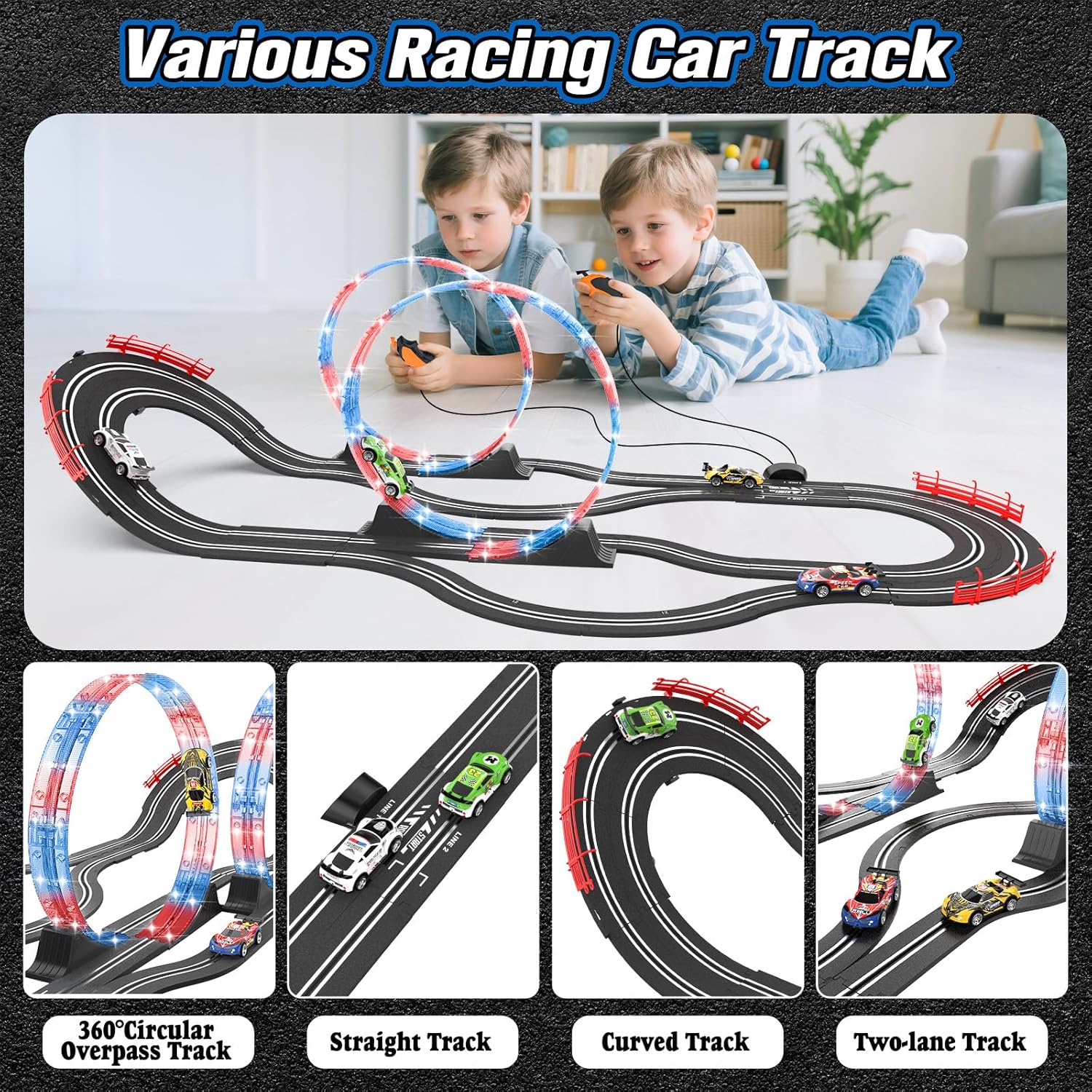 Due volte il divertimento per due giocatori: progettato per piloti doppi (età 8-12), il set include quattro slot car e due telecomandi resistenti. Perfetto per legami familiari o competizioni amichevoli, offre un'alternativa pratica ai videogiochi. Esperienza di corsa e controllo ad alta velocità: l'auto in scala 1:43 può raggiungere 300-370 mph in modalità elettrica, ripristinando il vero senso di potenza da corsa. Si adatta alle scene familiari e all'aperto, lascia che i bambini giochino a corse sportive sempre e ovunque.
