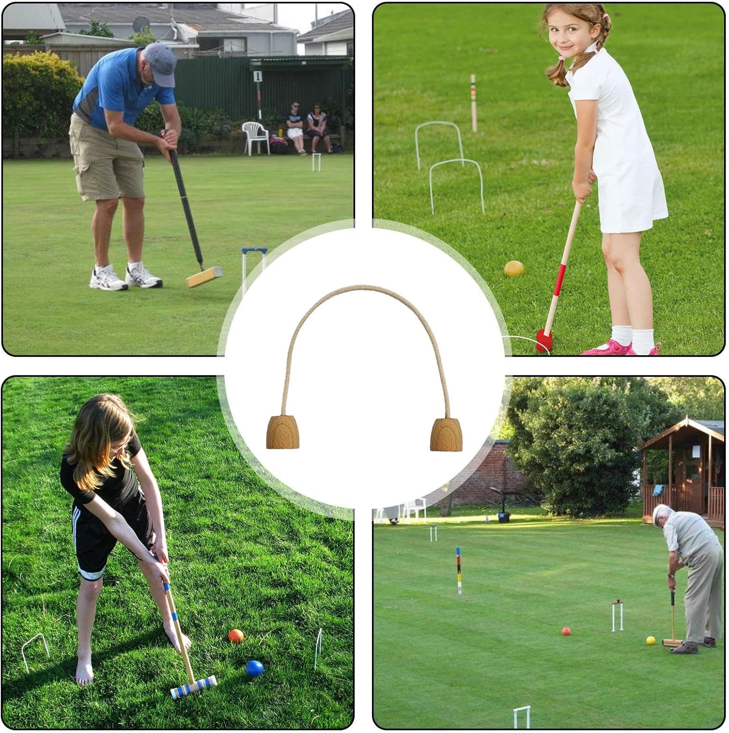 Stabilità imbattibile: non facile da scivolare grazie al design stabile della base in legno, anche i nostri wicket da croquet non sono facili da scaricare. Il suo metallo di alta qualità garantisce una durata affidabile fornendo stesso un gioco su qualsiasi superficie. Durata imbattibile: questi wicket da croquet sono realizzati con una corda di cotone affidabile e resistente all'usura, garantendo che mantengano la forma e il colore per giochi senza sosta. Ampia applicabilità: questi wicket per croquet offrono divertimento ed eccitazione illimitati, adatti per occasioni all'aperto in un'ampia gamma di applicazioni come giocare a croquet sull' nel giardino, cortile e altro ancora. Soddisfa le esigenze quotidiane: approfitta di una quantità sufficiente dei nostri wicket da croquet con 5 pezzi durevoli. Puoi sostituirli comodamente in qualsiasi momento con la corda di cotone inclusa. Miglioramento delle abilità: migliora le tue abilità nel croquet con questi robusti wicket da croquet in metallo bianco. per praticare il gioco del croquet su prato e migliorare le tue abilità di battuta.