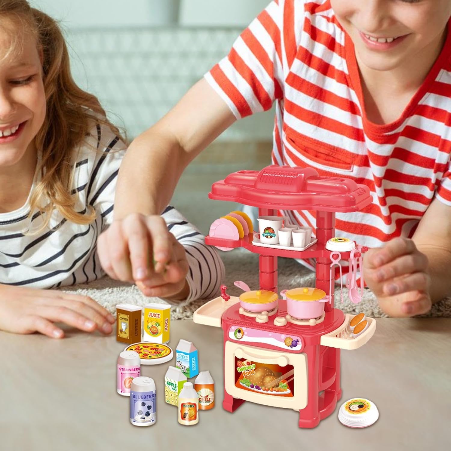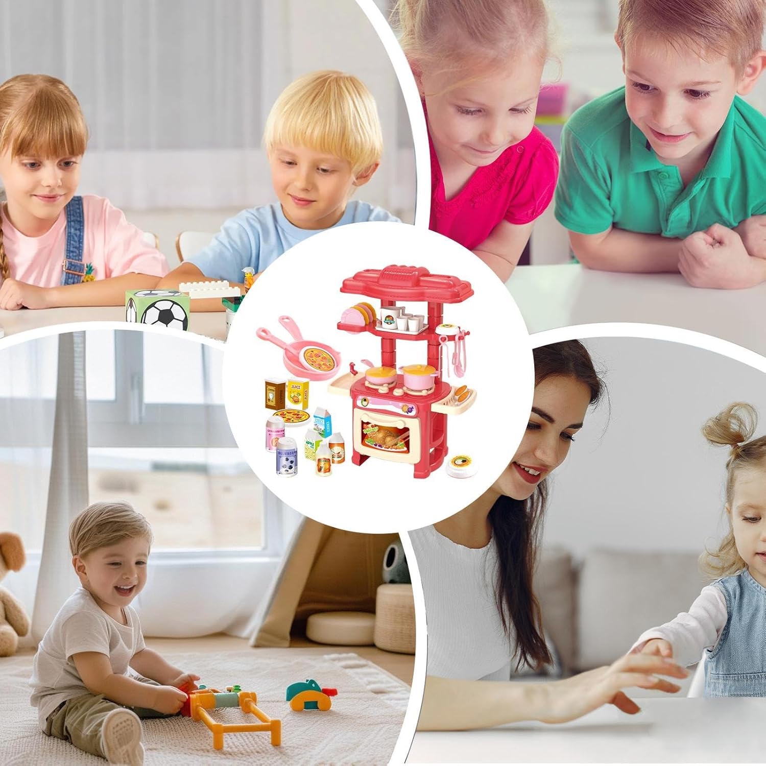 Piccolo kit di giocattoli da cucina: scatena l'immaginazione e la creatività con questo piccolo set da cucina. Include non solo la stufa della cucina principale e giocattoli alimentari immaginari, ma anche una varietà di accessori da cucina, stoviglie, adesivi e più spazio sul piano di lavoro per godersi di più il divertimento. Uso a lungo termine: realizzato in materiale PVC, questo set da cucina resiste all'entusiasmo dei bambini, assicurando che rimanga stabile, resistente e conservi i suoi colori vivaci senza sbiadire o rompersi facilmente. Facile installazione: imposta il tuo piccolo set da cucina in pochissimo tempo, incoraggiando i bambini a sviluppare abilità pratiche mentre tutta la famiglia lo assembla in pochi semplici passaggi. Giocattoli educativi per bambini: questo piccolo set di cucina consente ai bambini di partecipare a una varietà di giochi di ruolo, risvegliando la loro immaginazione e dando loro ore di divertimento. Inoltre, il processo di assemblaggio offre un'eccellente opportunità per lo sviluppo di abilità pratiche, rendendolo un giocattolo educativo ideale. Regalo unico: potenzia l'immaginazione del tuo bambino con l'adorabile design di questo piccolo set da cucina. Offri ai tuoi amici e familiari come regalo creativo perfetto e lascia loro sviluppare la loro creatività culinaria.