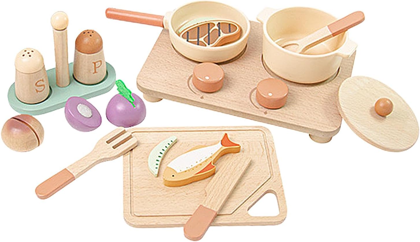 【Istruzione】: il set di giocattoli da cucina simulati aiuta il bambino a comprendere utensili da cucina e le sue capacità cognitive 【Set da gioco da cucina】: giocattoli da cucina finti, inclusi stoviglie e modelli di cibo da cucina, come bistecche, uova, pesce per migliorare l'esperienza di gioco in cucina 【Sviluppo e abilità fini】: Attraverso il set da gioco di giocattoli in legno da cucina, i bambini possono imparare a cucinare, esercitare abilità pratiche e capacità motorie fini 【Gioco di ruolo interattivo】: i bambini possono giocare con il set di cucina finta con la famia o amici, giocare di ruolo, re le abilità sociali e le abilità culinarie di base 【Scelta regalo】: il set di accessori da cucina per bambini è una scelta regalo per bambini, , ragazzi e ragazze