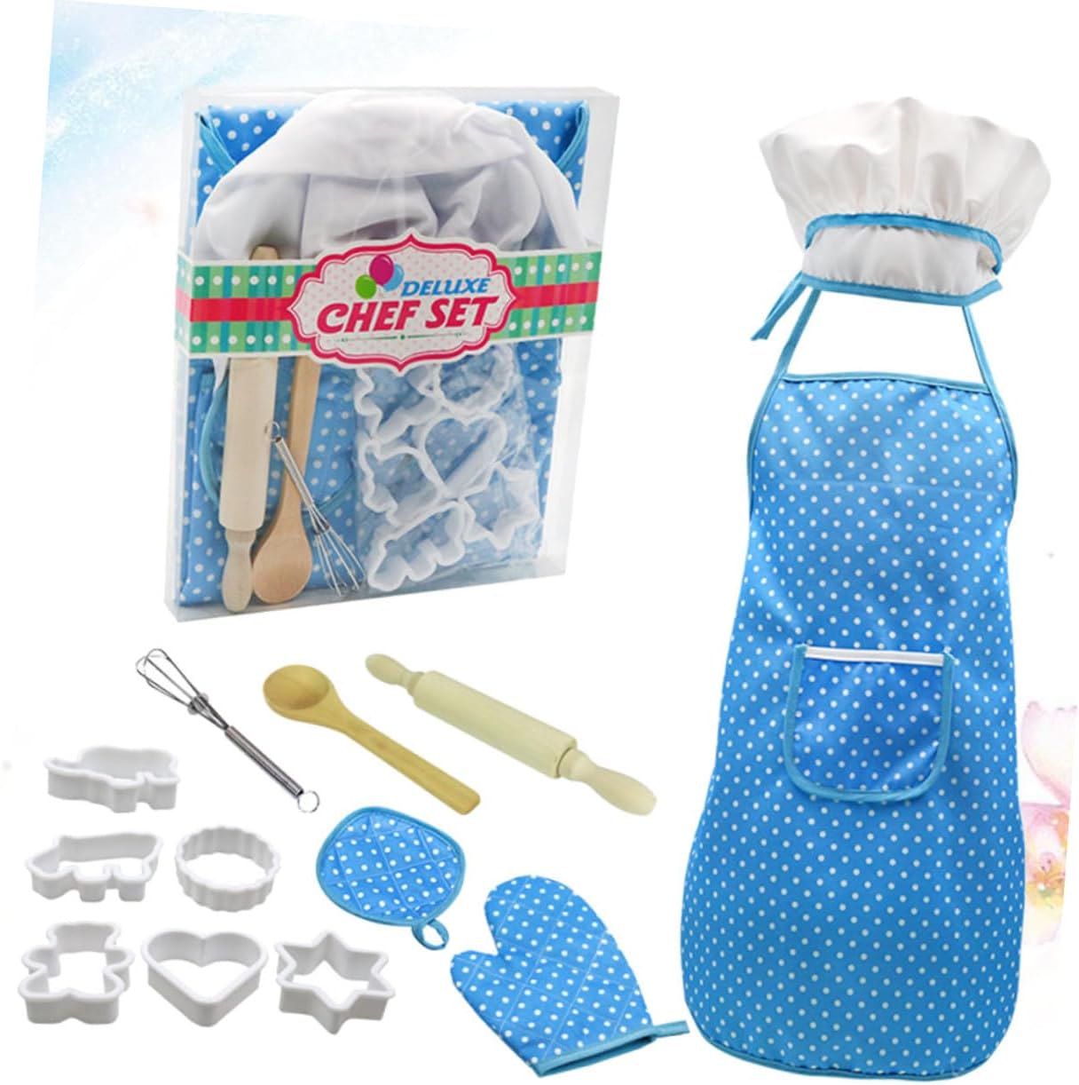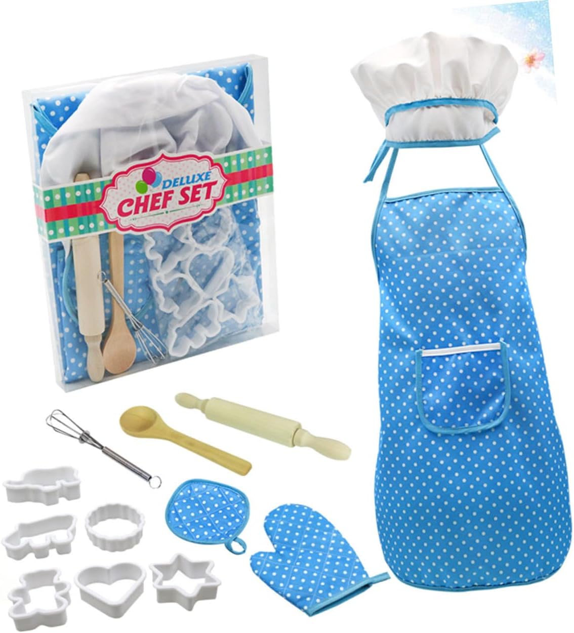 Costume cosplay da chef: realizzato con materiali per un uso sicuro e duraturo, set da cucina per utensili da cucina per: giocattoli educativi promuovono la creatività e il gioco di ruolo e insegnano ai bambini il cibo e la cucina, costume cosplay da chef, giocattoli per bambini: set completo per aspiranti chef, contiene quasi tutto, costume cosplay da chef, giocattoli da cucina: strumenti reali e immaginari includono stampi, grembiuli, guanti, ecc., costume cosplay da chef Puoi mentre aiuti in cucina. L'outfit è dotato di grembiule protettivo indossabile