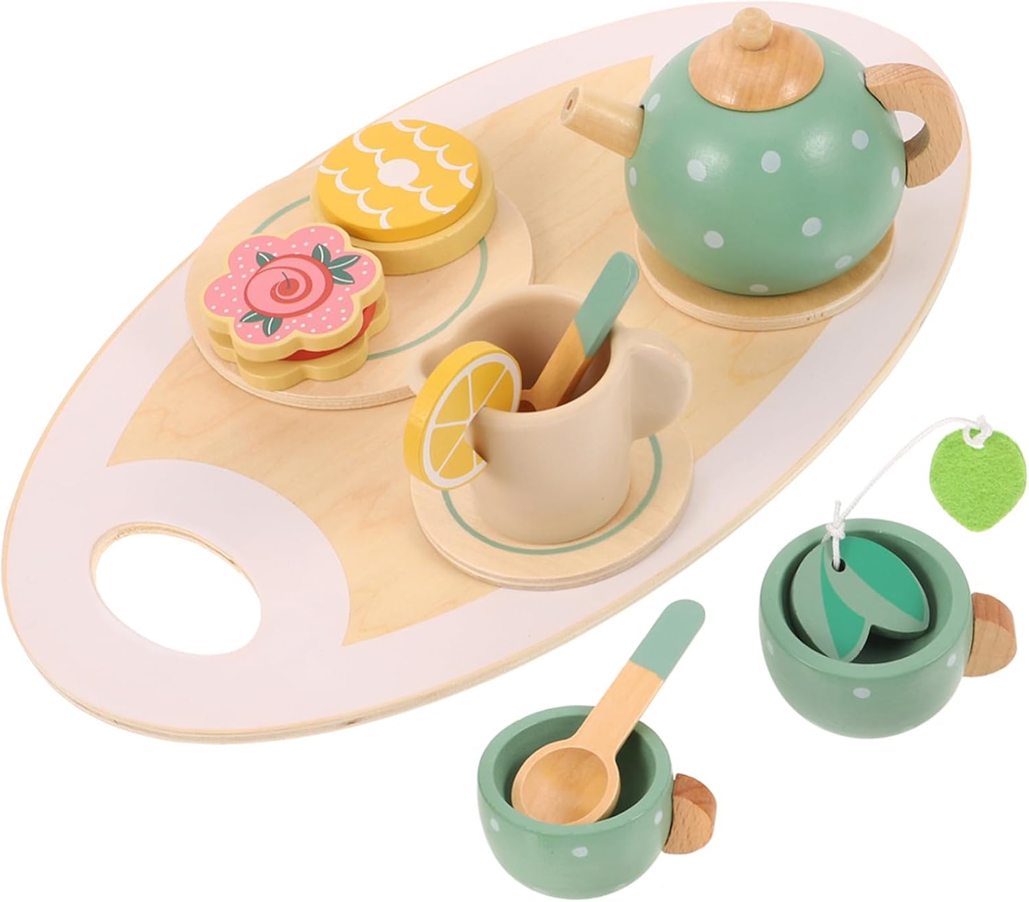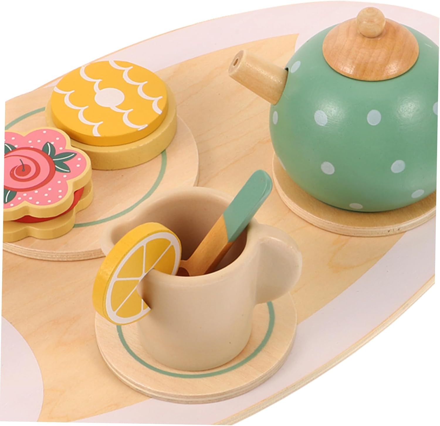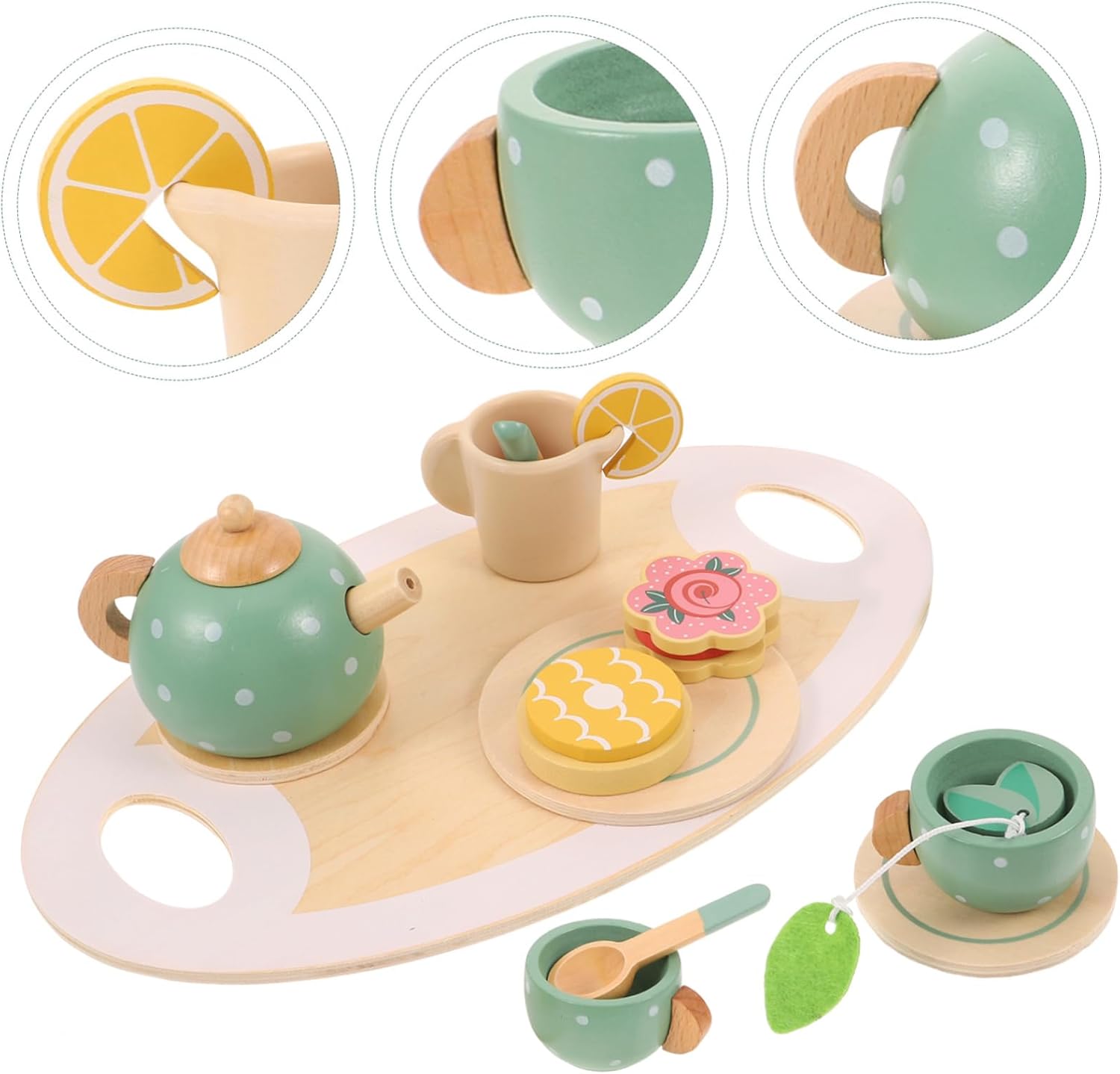 Teiera in legno per bambini piccoli: il set da tè per bambini piccoli non deforma facilmente, superficie liscia senza sbavature, confortevole, ornamenti a forma di casetta giocattolo Set da tè in miniatura: viene fornito con un giocattolo da tè, un vassoio da tè, ecc., accessori e stile adeguati per soddisfare le tue esigenze, decorazioni per la casa in miniatura Set da gioco con teiera: i bambini sono molto interessati a tutti i comportamenti degli adulti, offrono ai bambini una scena di esperienza reale, decorazioni in miniatura Stoviglie in miniatura: il peso leggero rende questo set da tè per bambini facile da trasportare e riporre, consistenza e lavorazione eccellente, giocattoli per bambine Decorazioni in miniatura: questo set da tè è progettato per il gioco di finzione, come un modo per coltivare le capacità cognitive e aumentare l'interazione genitore-figlio, mobili in miniatura