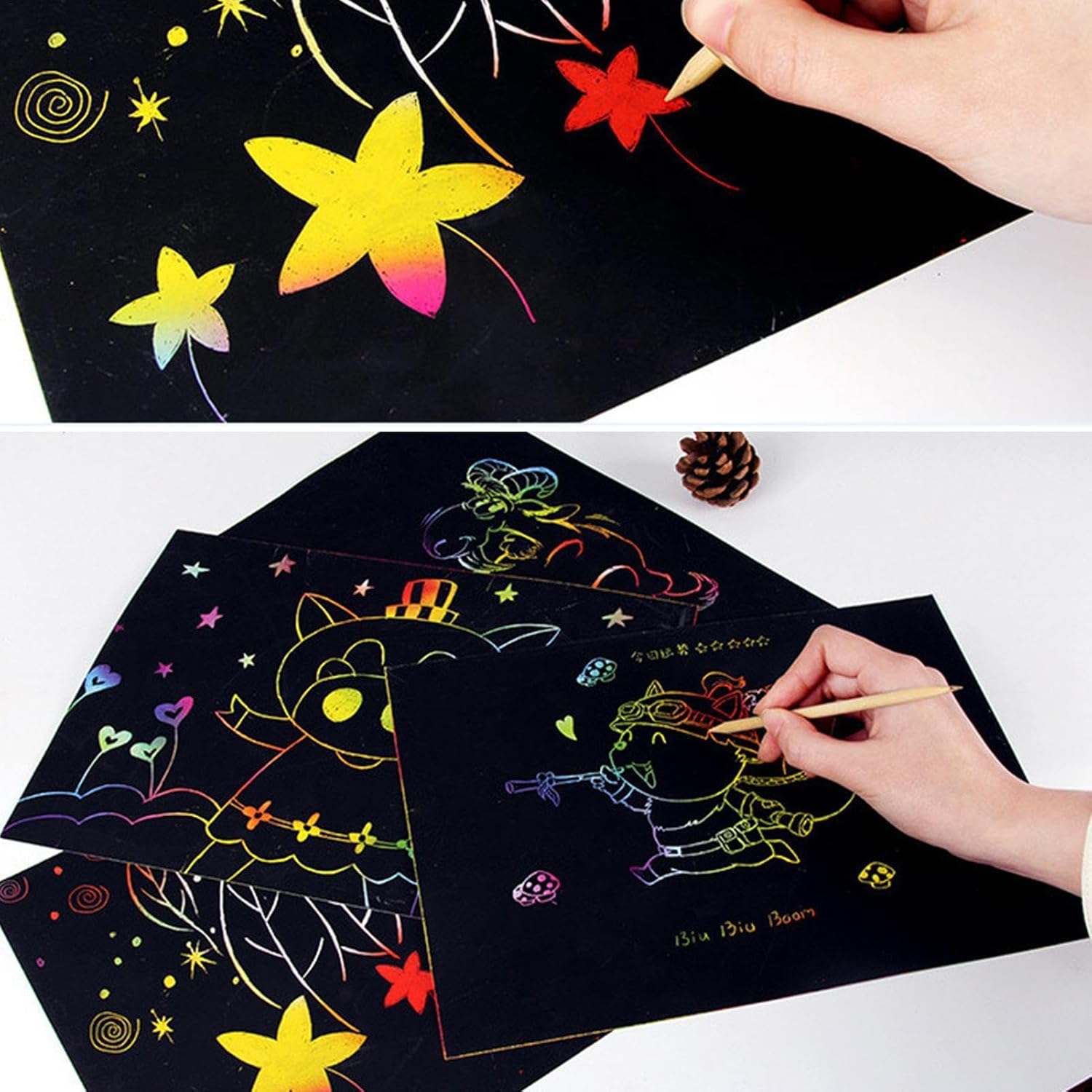 Sicuro e affidabile: crea opere d'arte straordinarie ed ecologiche con questo set d'arte per graffi di carta per graffi, realizzata con carta sicura, inodore e durevole. Ideale per attività creative dei bambini e facili da portare in . Divertimento educativo: migliorare l'attenzione, capacità motorie e la pazienza di tuo figlio con il nostro set d'arte artistico per graffi di graffio. È un'attività divertente ed educativa che sblocca la creatività e l'immaginazione. Migliora la capacità pratica: graffiando il rivestimento nero con lo stilo in legno, il nostro set d'arte artistico di carta gratta e graffio esercita abilità pratiche e migliora la creatività. È un modo divertente per sviluppare sottili capacità motorie e migliorare la destrezza delle dita. Scatena creatività: dipinto di nero sopra, rivela sfondo arcobaleno colorato di seguito e, con lo stilo incluso, il set di arte graffiati di carta può goderti di creare dipinti fai -da -te che sono stesso divertenti e sbalorditivi! Migliora i legami familiari: questo set d'arte per graffi crea vicinanza tra genitori e bambini mentre crei un bellissimo set d'arte per graffi di carta artistica . Migliora la comunicazione emotiva e favoriscono connessioni migliori a casa.
