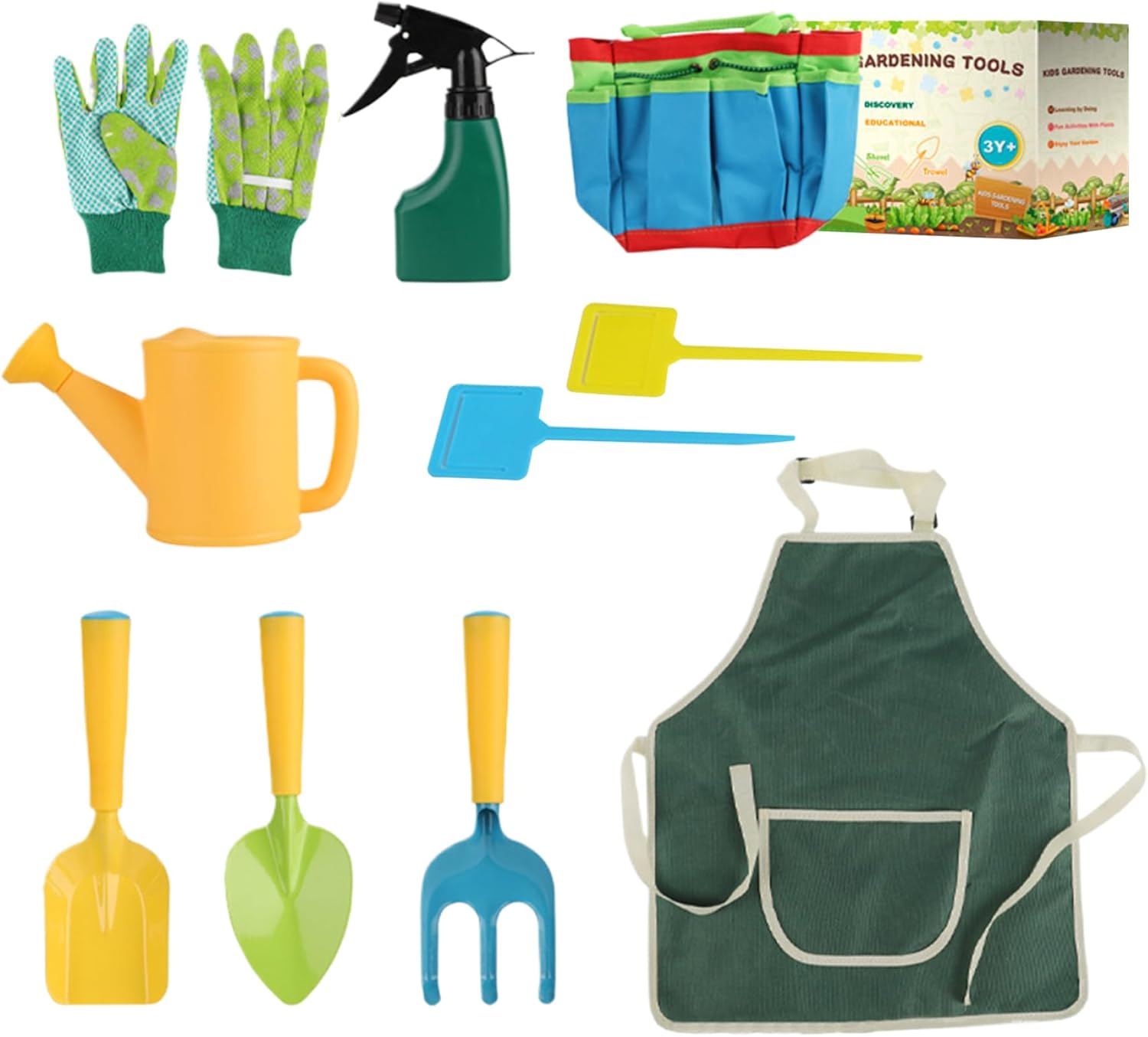 Valore educativo: questo set da giardinaggio per i più piccoli funge da strumento educativo, insegnando ai bambini a piantare e prendersi cura dei giardini, instillando un senso di responsabilità e realizzazione. Fornisce ai bambini l'opportunità di conoscere il mondo naturale e il processo di crescita delle piante, favorendo una connessione più profonda con la natura. Regalo perfetto: ideale per i bambini che amano la natura, questo strumento da giardinaggio per bambini è un regalo perfetto per ogni occasione. Incoraggia le attività all'aperto e offre preziose opportunità ai bambini di imparare a fare giardinaggio, promuovere l'amore per la natura e instillare un senso di gestione ambientale fin dalla tenera età. Qualità e sicurezza: realizzati in PP, ferro e tessuto di qualità, questi strumenti non sono solo durevoli ma anche inodori, resistenti alla ruggine e presentano bordi arrotondati per evitare graffi. L'utilizzo di materiali sicuri e di qualità garantisce un'esperienza di giardinaggio affidabile e protetta per i bambini, dando ai genitori tranquillità. Set completo: questo set da giardinaggio fornisce un ricco assortimento di strumenti, tra cui 3 pezzi di fango per attrezzi, 12 pezzi di etichette per piante (colore casuale), 1 pezzo di borsa degli attrezzi, 1 paio di guanti, 1 pezzo di grembiule, 1 pezzo di spruzzatore d'acqua, 1 pezzo di annaffiatoio, per soddisfare varie esigenze di semina, consentendo ai bambini di provare la gioia del giardinaggio pratico, compresi compiti come la coltivazione del terreno, la semina, ecc. Compatto ed ergonomico: progettato con dimensioni ridotte adatte alle mani dei bambini, gli strumenti sono ergonomici e facili da impugnare, garantendo una maneggevolezza confortevole per i giovani giardinieri. Le dimensioni e la forma degli attrezzi li rendono perfettamente adatti alla destrezza e alla forza dei bambini, permettendo loro di partecipare attivamente alle attività di giardinaggio.