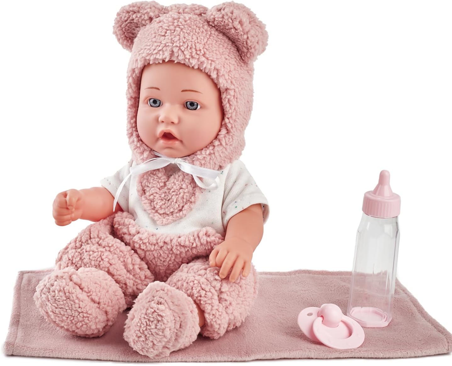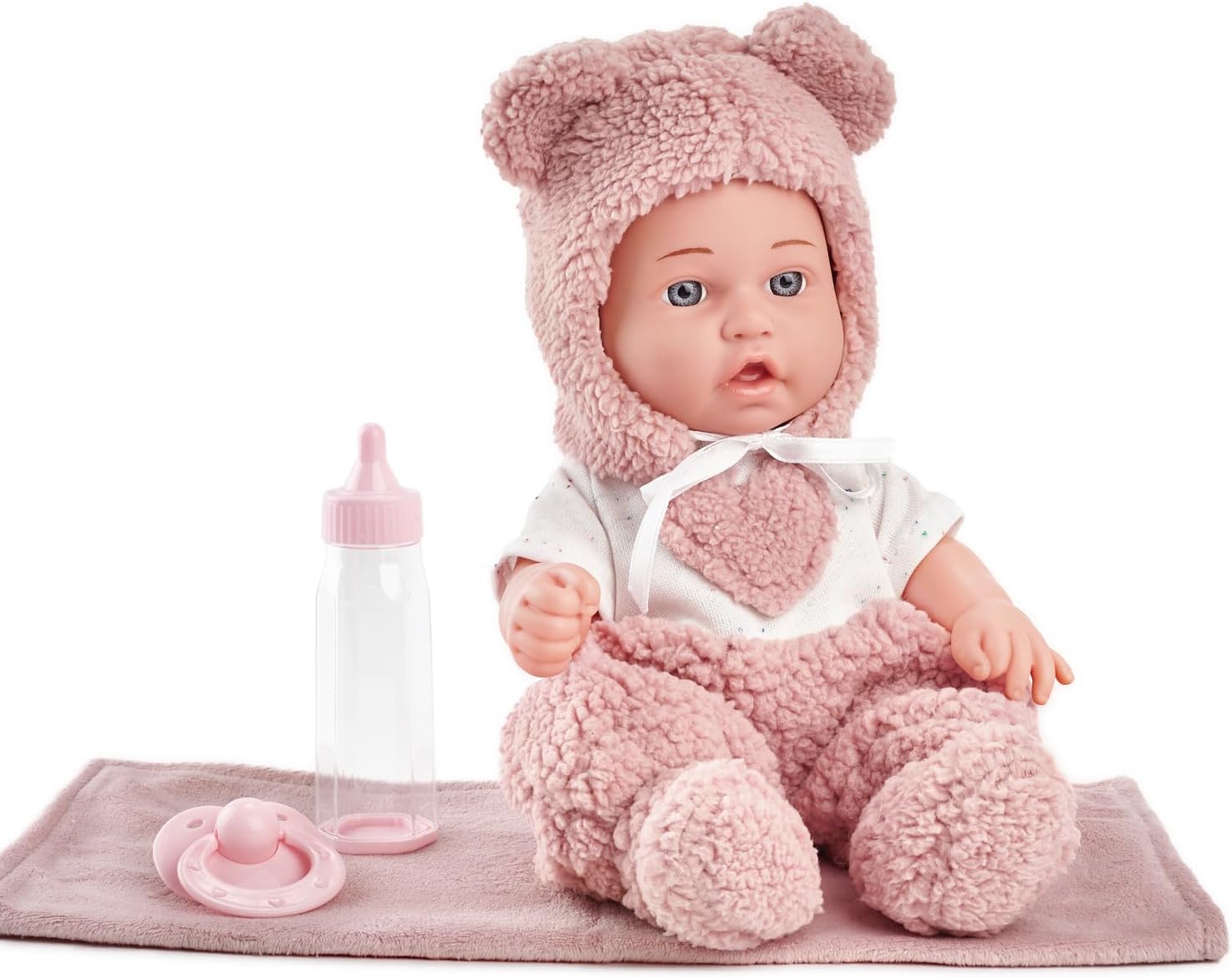 Ideale per le manine dei più piccoli: la bambola e gli accessori sono dimensionati per i bambini e ogni pezzo aiuta i più piccoli a sviluppare le capacità motorie fini mentre si esercitano ad afferrare, tenere e usare i giocattoli da soli. Dettagli adorabili: questo set di bambole include un ciuccio, un biberon e una morbida copertina, mentre la bambola indossa un berretto rosa peloso e vestiti adatti ai bambini, delicati e morbidi sulla pelle dei più piccoli, che la rendono perfetta come prima bambola per i bambini. Apprendimento prescolare: quando i bambini si prendono cura delle bambole, ad esempio dando loro da mangiare e mettendole a dormire, sviluppano empatia, immaginazione, senso di responsabilità e abilità sociali. Una piacevole sorpresa per le bambine: con la sua confezione raffinata e gli accessori completi, questo set di bambole è perfetto come regalo per le bambine dai 3 anni in su a Natale, per i compleanni o altre occasioni speciali. Soddisfazione: eDollable crea sorrisi e divertimento! Non esitate a contattarci per qualsiasi domanda.