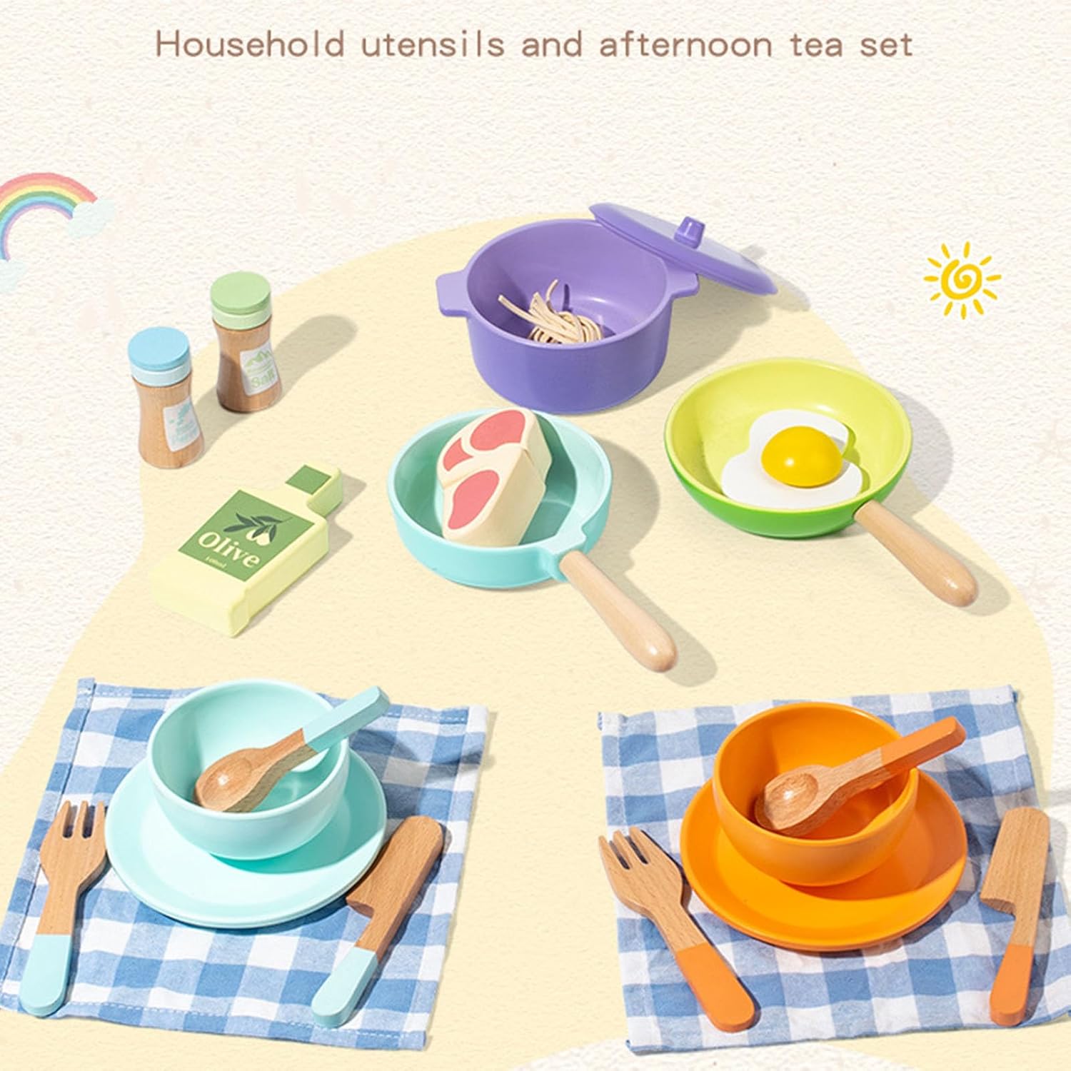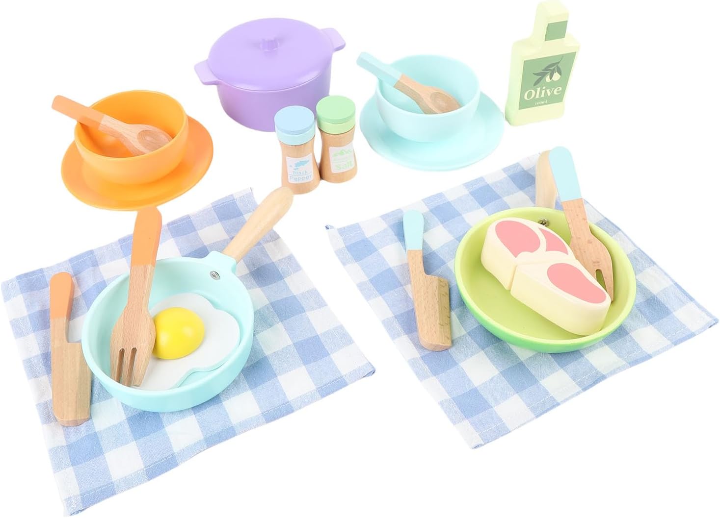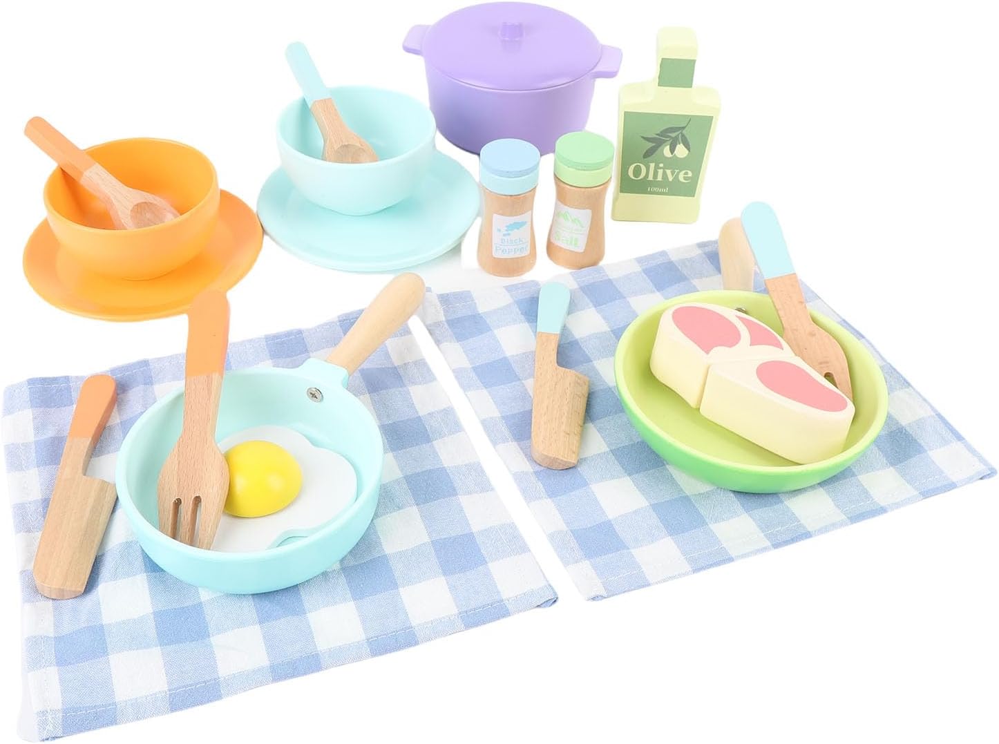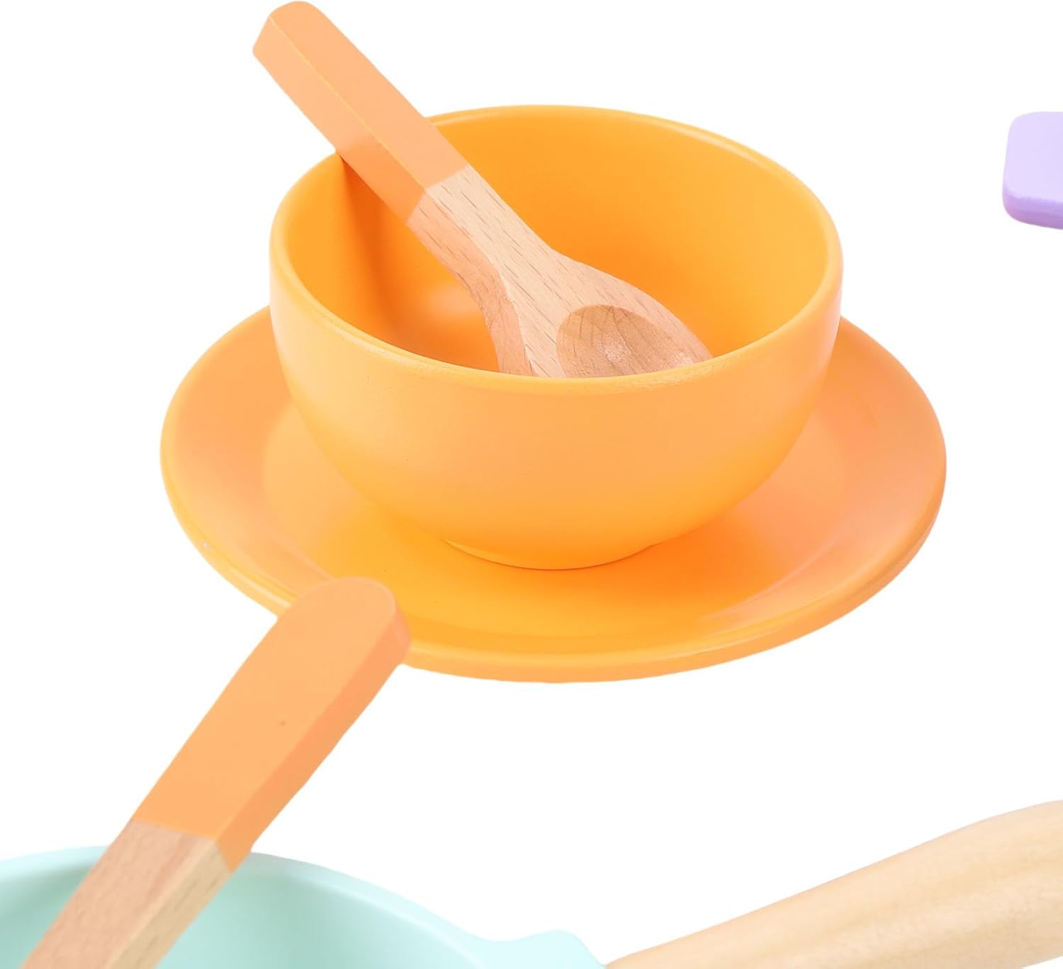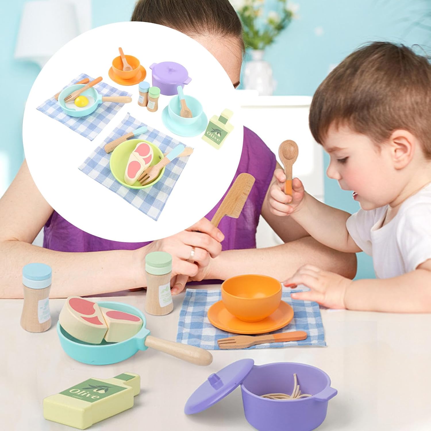 [Materiale di alta qualità] Set da cucina in legno con giocattoli di cottura a 15 pezzi realizzati con bassiani durevoli e materiali morbidi di cotone, garantendo un divertimento di lunga durata per i bambini [Giocattoli educativi] incoraggiano la creatività e lo sviluppo delle competenze pratiche attraverso le attività della cucina che giocano a ruolo, promuovendo lo sviluppo cognitivo e motorio nei bambini [Varied Play Options] Dispone di pentole da zuppa, padelle, ciotole, piatti, condimenti e strumenti di cottura per scenari di gioco fantasiosi, perfetti per piccoli chef di 3+ [Design sicuro e confortevole] Progettato per mani piccole con bordi lisci e pezzi leggeri, offrendo un'esperienza di gioco e confortevole per i bambini [Promozione delle abilità sociali] Ottimo per il gioco interattivo, promuovendo le abilità sociali e il legame genitore-figlio durante scenari di cucina fantasiosi, promuovendo la comunicazione e il lavoro di squadra