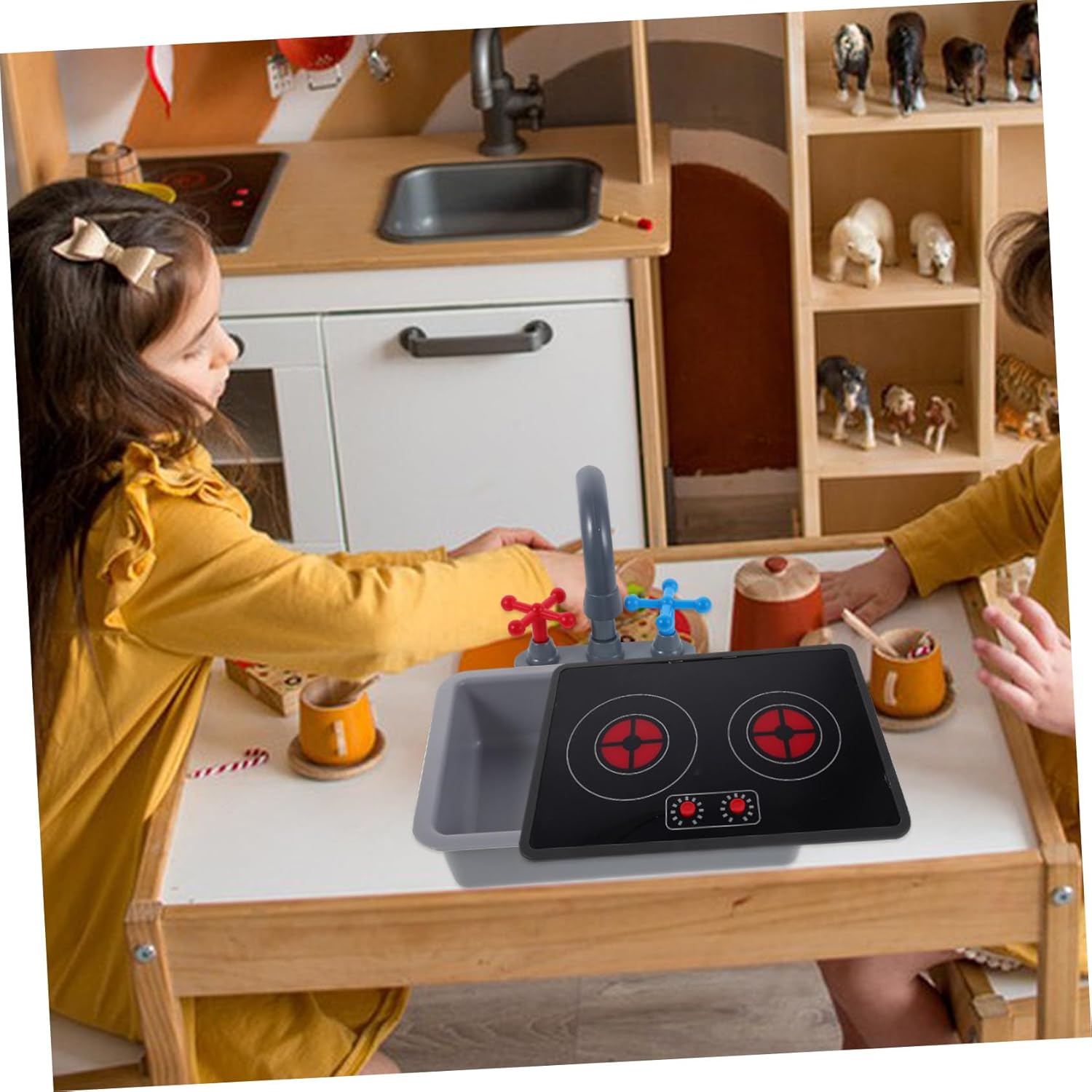 Dimensioni adatte ai bambini: progettato per le mani dei più piccoli, questo set di giocattoli da cucina è facile da usare e aiuta i bambini a migliorare la coordinazione occhio-mano e le capacità motorie. È uno per la cucina giocattolo e uno per gli elettrodomestici da cucina. Promuove l'interazione sociale: questo set di giocattoli è adatto ai giochi di gruppo o alla coesione familiare e favorisce la comunicazione e il divertimento condiviso tra bambini e genitori. Giocattolo per giochi di ruolo, giocattolo da cucina. Effetti sonori e luminosi interattivi: fornisce effetti sonori e luminosi realistici e un'atmosfera di gioco coinvolgente che aiuta i bambini a riconoscere i cambiamenti sensoriali e promuove lo sviluppo cognitivo. giocattoli da cucina per, lavello da cucina e materiali sicuri: realizzati con materiali sicuri per i bambini che ne garantiscono l'uso e i genitori durante l'uso, accessori da cucina da gioco, elettrodomestici da cucina da gioco Sicuro e facile da usare: questo set da gioco è appositamente progettato per. È compatto, leggero e facile da usare, garantendo sicurezza e divertimento per i giovani utenti