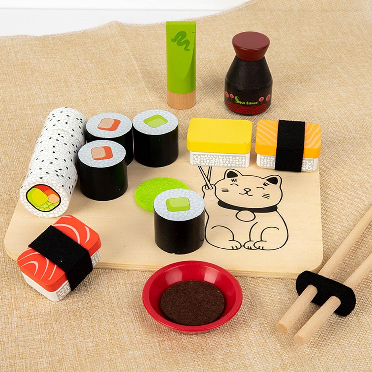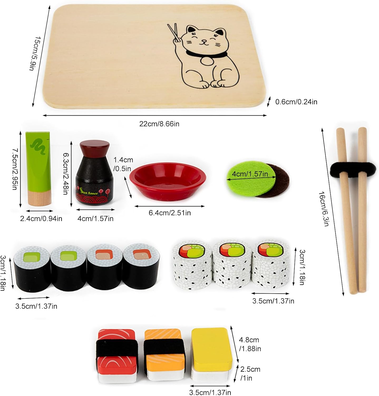 Sicurezza assicurata: realizzata in un grande legno naturale, tutte le parti vantano angoli arrotondati e una vernice liscia per proteggere la pelle delicata; La vernice a base d'acqua garantisce la sicurezza ed è inodore, conforme agli standard mondiali dei giocattoli Fosters Esplorazione culinaria: con forme di sushi al salmone, e altro ancora, questo set di giochi di sushi presenta loro alla cucina giapponese, ispirandoli ad esplorare nuovi sapori e culture attraverso un gioco fantasioso Fosters Lavoro di squadra e interazione: viene fornito con piatti simulati come bottiglie di salsa di soia e bacchette, creando una perfetta configurazione di ristorazione del sushi che promuove la socializzazione e rafforza il legame tra genitori e Sviluppa capacità cognitive: ispira loro ad esercitare le loro belle abilità motorie e coordinazione occhio-mano attraverso compiti di assemblaggio di sushi e giochi abbinati ai colori, con conseguente avventura educativa che esplorano il riconoscimento del colore, la classificazione delle forme e altri concetti di apprendimento precoce fondamentale Perfetto come presente: il carismatico set di giochi di sushi presenta l'accattivante design del packaging, una pratica organizzazione integrata, rendendolo un ottimo regalo per ogni occasione