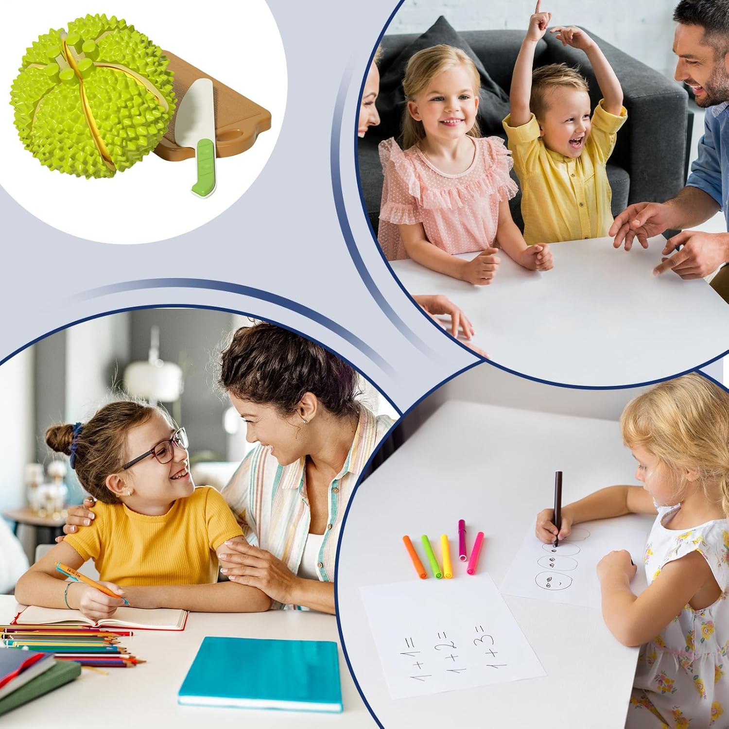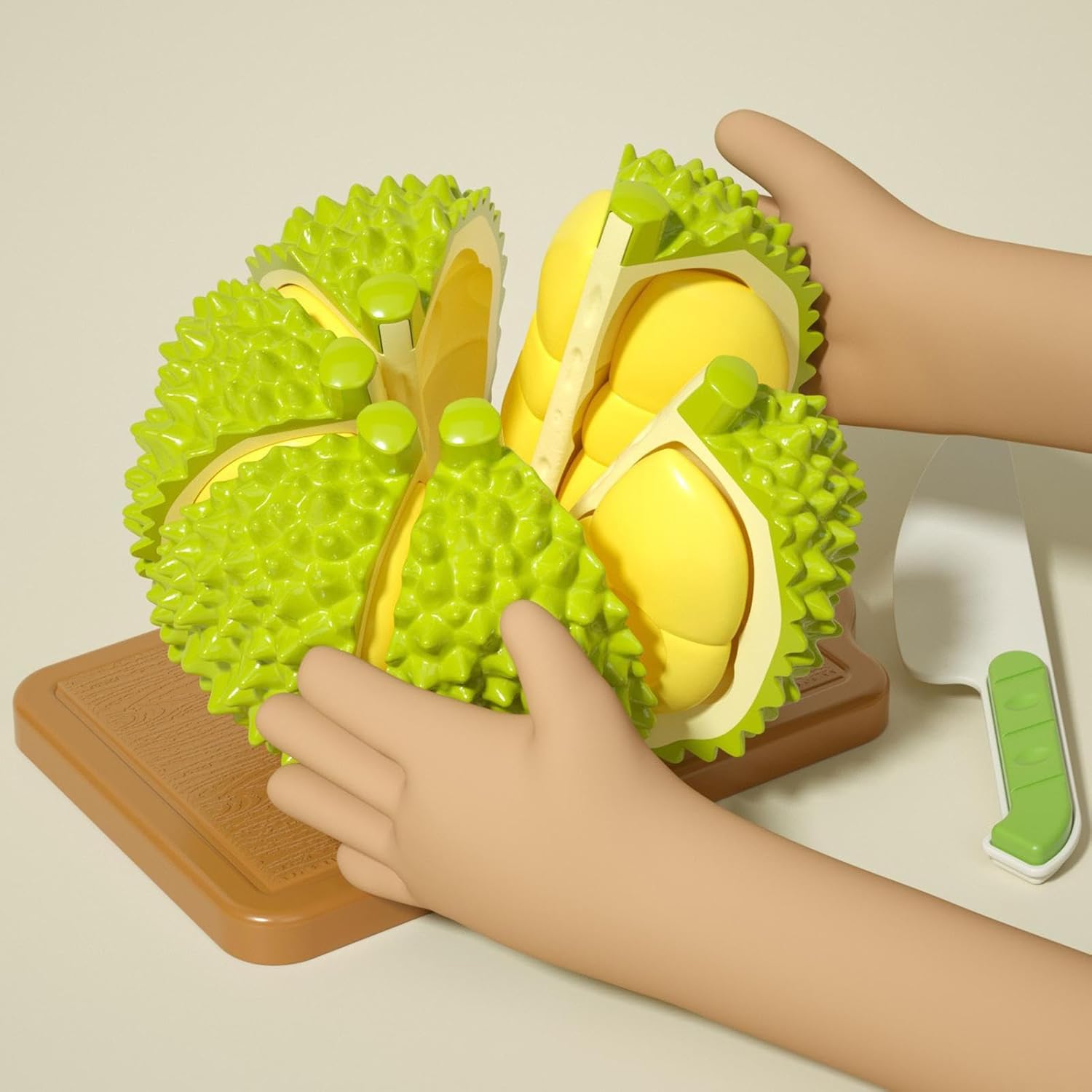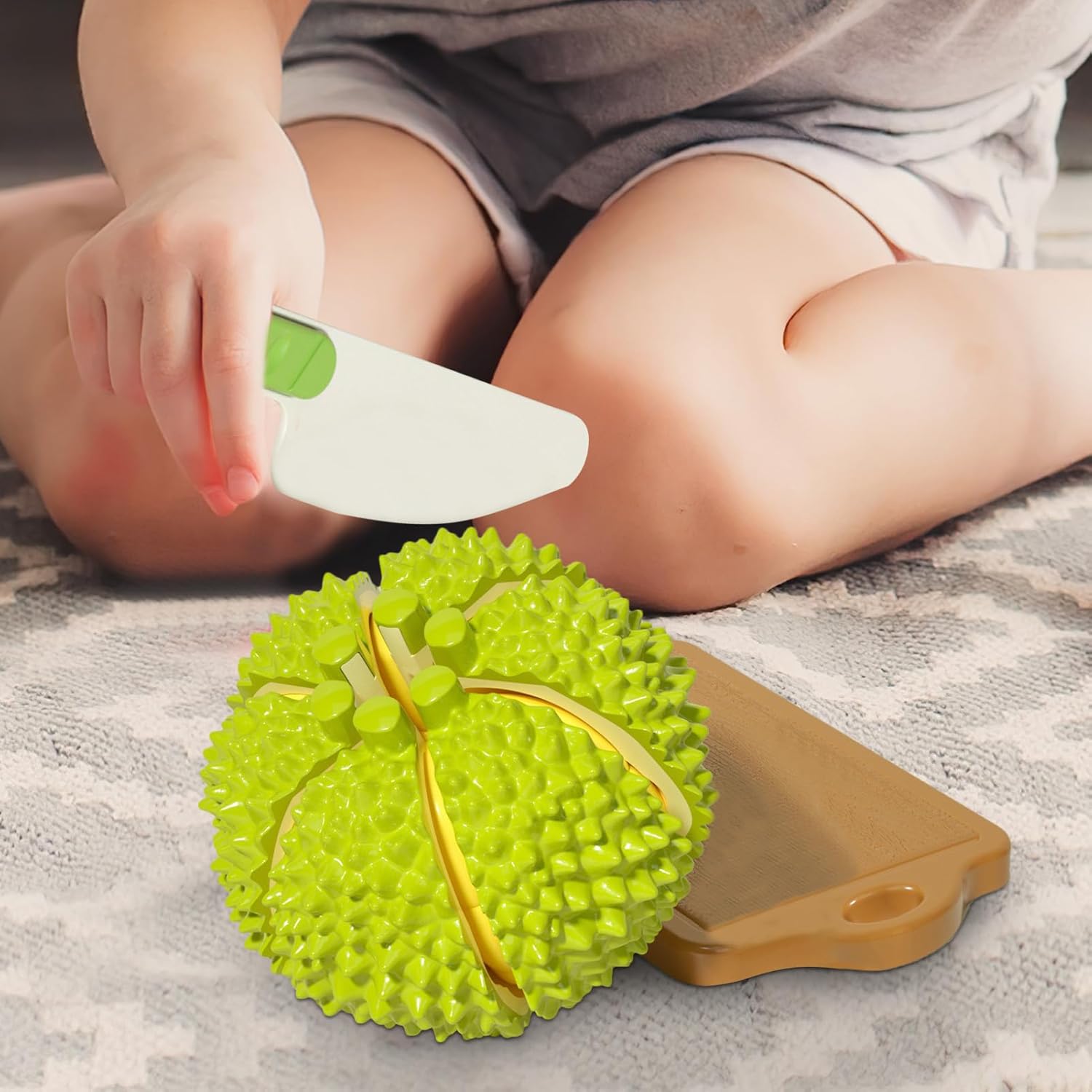 Design leggero: grazie alle sue dimensioni leggere e al design ergonomico, il nostro giocattolo durian è perfetto per le mani dei bambini, consentendo ai bambini di tenerlo in mano e di giocarci senza sforzo e comodamente. Design alla moda: goditi l'esperienza di taglio unica con un giocattolo durian realistico progettato per aumentare il divertimento del taglio della frutta. Giocattolo Educativo: Il giocattolo Durian è un interessante giocattolo educativo che facilita la crescita sensoriale dei bambini e promuove la loro destrezza manuale attraverso un gioco stimolante e interattivo. Gioco interattivo: il giocattolo durian tagliabile può essere diviso in 12 parti, il che offre varietà durante il gioco con suoni di taglio simulati. Con ogni pezzo risveglia creatività e performance. Materiale di alta qualità: realizzato con materiali PP sicuri, innocui ed ecologici, questo giocattolo Durian promette una buona durata per un divertimento duraturo.
