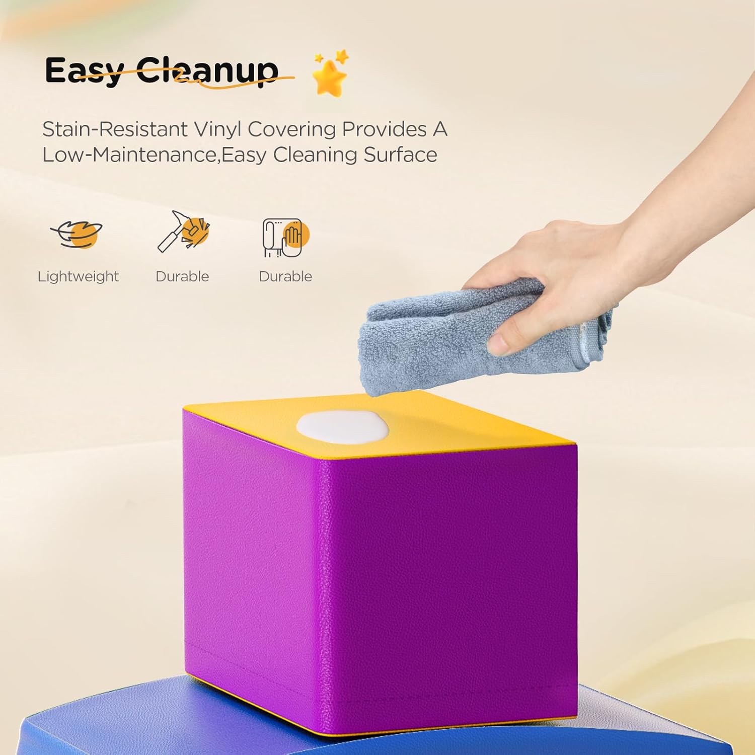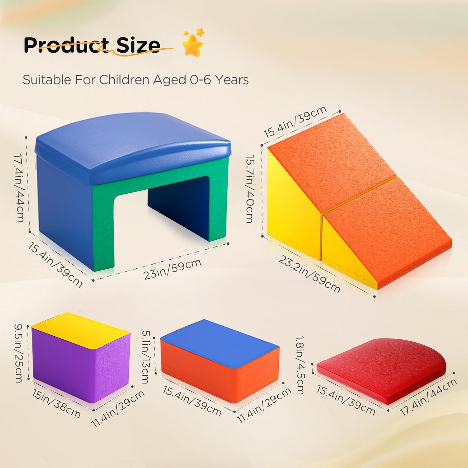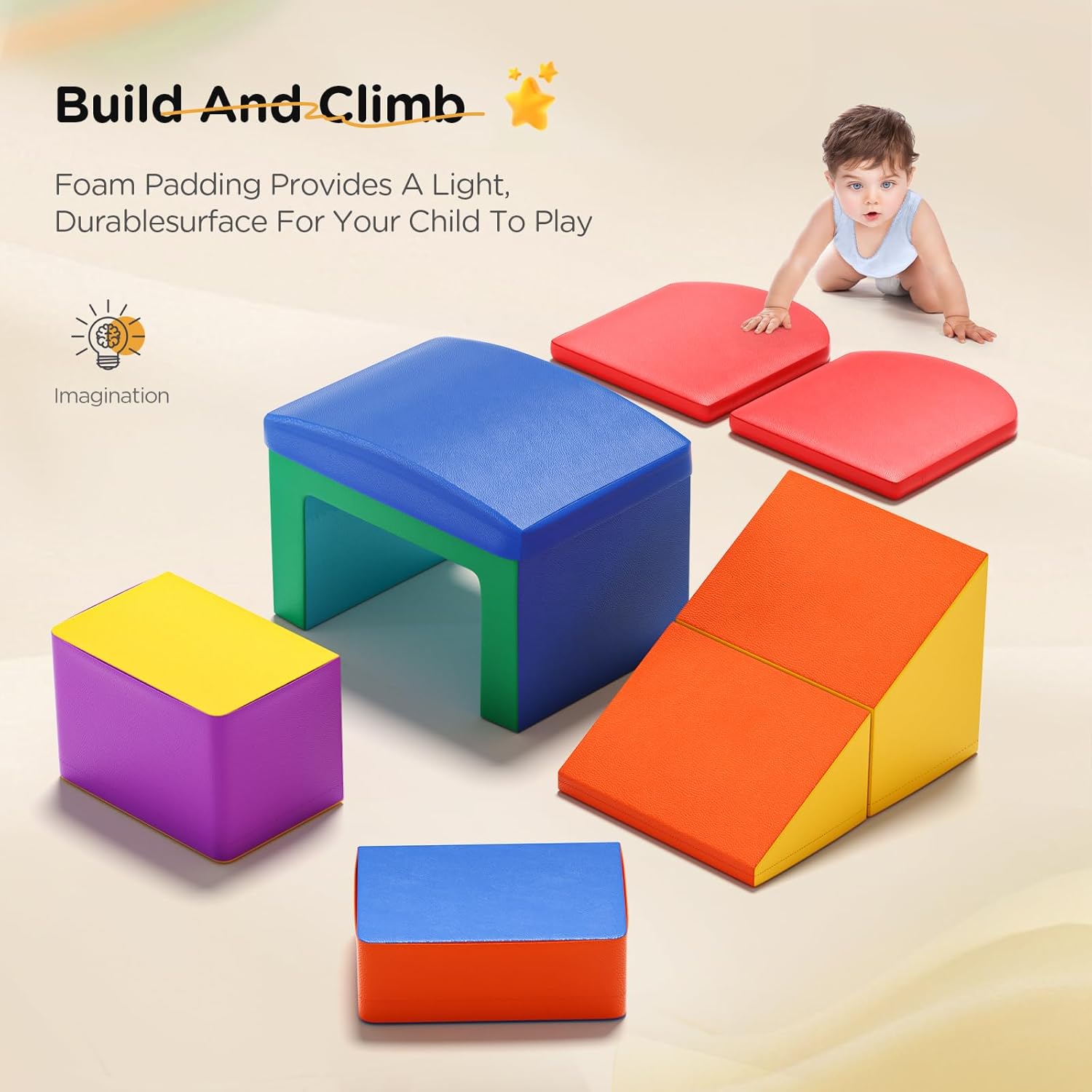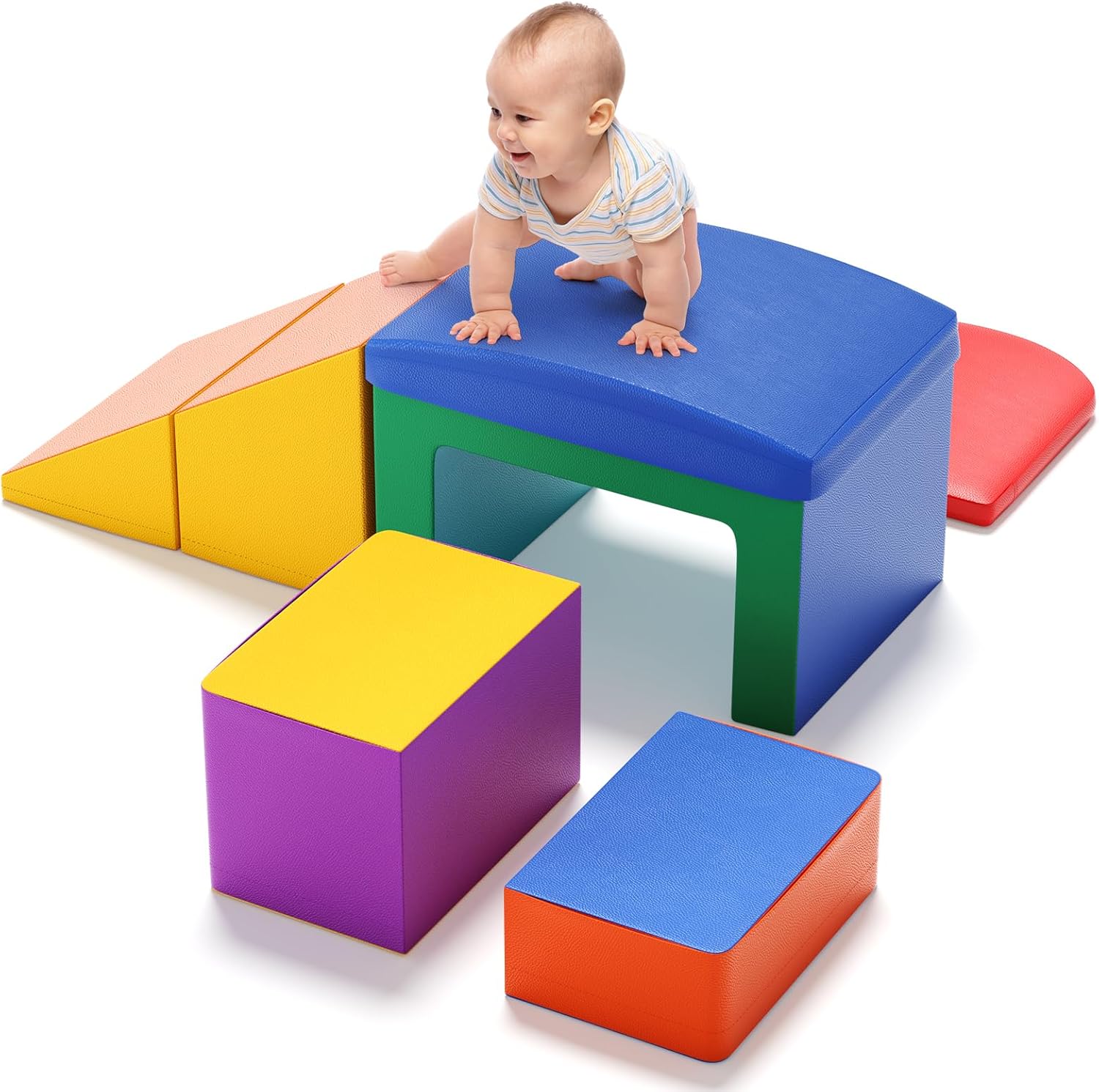 Infinite ore di divertimento I nostri blocchi di schiuma con colori vivaci sono progettati per intrattenere i tuoi bambini per ore e sviluppare abilità di riconoscimento. I tuoi piccoli possono arrampicarsi, gattonare e cadere sul set da gioco per bambini per migliorare le abilità sportive e avventure. Percorso di gattonamento fai da te I blocchi per i bambini sono dotati di 5 diverse forme per il tuo bambino per creare il proprio percorso di gattonamento. Questa funzione incoraggia la creatività dei bambini e le capacità di risoluzione dei problemi fornendo un'esperienza di gioco divertente e stimolante. Massima sicurezza e comfort I nostri giocattoli striscianti sono realizzati in cotone perlato ad alta densità che sono resistenti e non facili da deformare. La copertura in pelle PU ispessita è impermeabile e resistente alle crepe, atossica e inodore, delicata sulla pelle e antiscivolo, fornendo una protezione extra e comfort per il tuo bambino. Facile montaggio e smontaggio I giocattoli da arrampicata per bambini possono essere collegati saldamente con nastro a gancio e anello, in modo da poterli facilmente (smontare) assemblarli e riporli. Essi guidano i bambini a creare e godere di un intero divertimento di nuove combinazioni. Nota: pulire con acqua e sapone neutro. Portatile e leggero Le nostre attrezzature da gioco morbide sono di medie dimensioni e abbastanza leggere per i bambini per muoversi e poi giocare all'interno e all'esterno. L'aspetto attraente cattura l'attenzione dei bambini e li immerge nel mondo dei mattoncini.