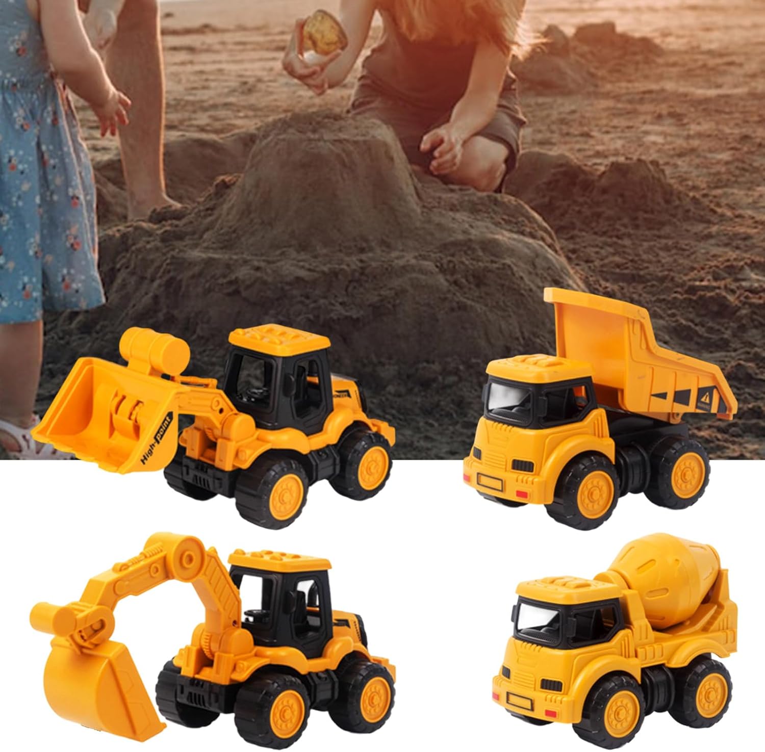 Compagno perfetto per Beach Adventure, scavi o giochi sensoriali in sandbox con design semplice da indossare per un divertimento portatile Set di giocattoli per auto con design in plastica per scavare, spingere e trascinare l'ambiente esterno senza bisogno di batterie Fantastico giocattolo di sviluppo per bambini di 3+ sul miglioramento delle capacità motorie e del gioco fantasioso durante il legame familiare o l'attività prescolare Ogni veicolo ha una funzione tecnica simulatioin con ruota texture e parte mobile. Utilizzare plastica ABS per esplorazioni sicure infanzia Il vivace veicolo con codice colore stimola il riconoscimento dei colori e supporta l'apprendimento di STEM attraverso le mani sui giochi di ruolo con repliche realistiche del veicolo da costruzione